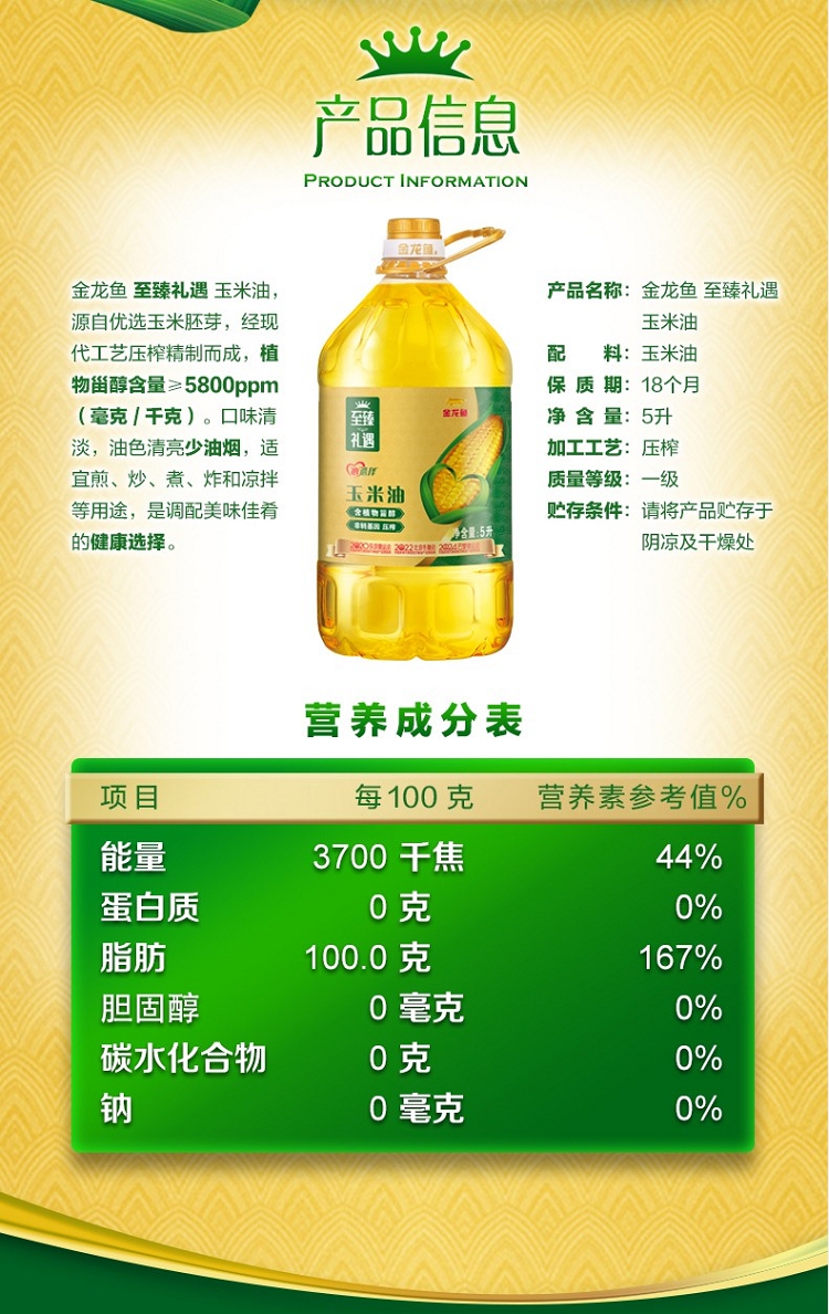 金龙鱼 至臻玉米油 5L/桶