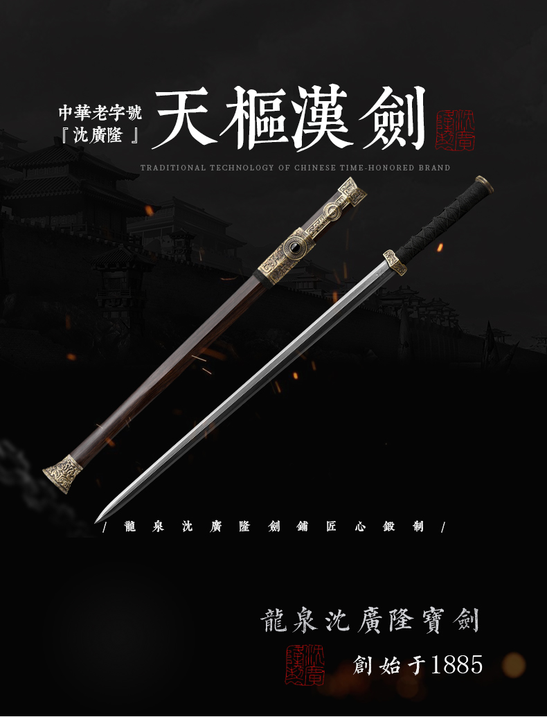 - 龙泉沈广隆剑舖创始于1885年(清光绪)位于浙江省龙泉市,是当地唯一一家“子承父业”一脉相承的中华老字号宝剑生产企业,是国家级非物质文化遗产龙泉宝剑项目保护单位,并以“天下第一剑”闻名于海内外....