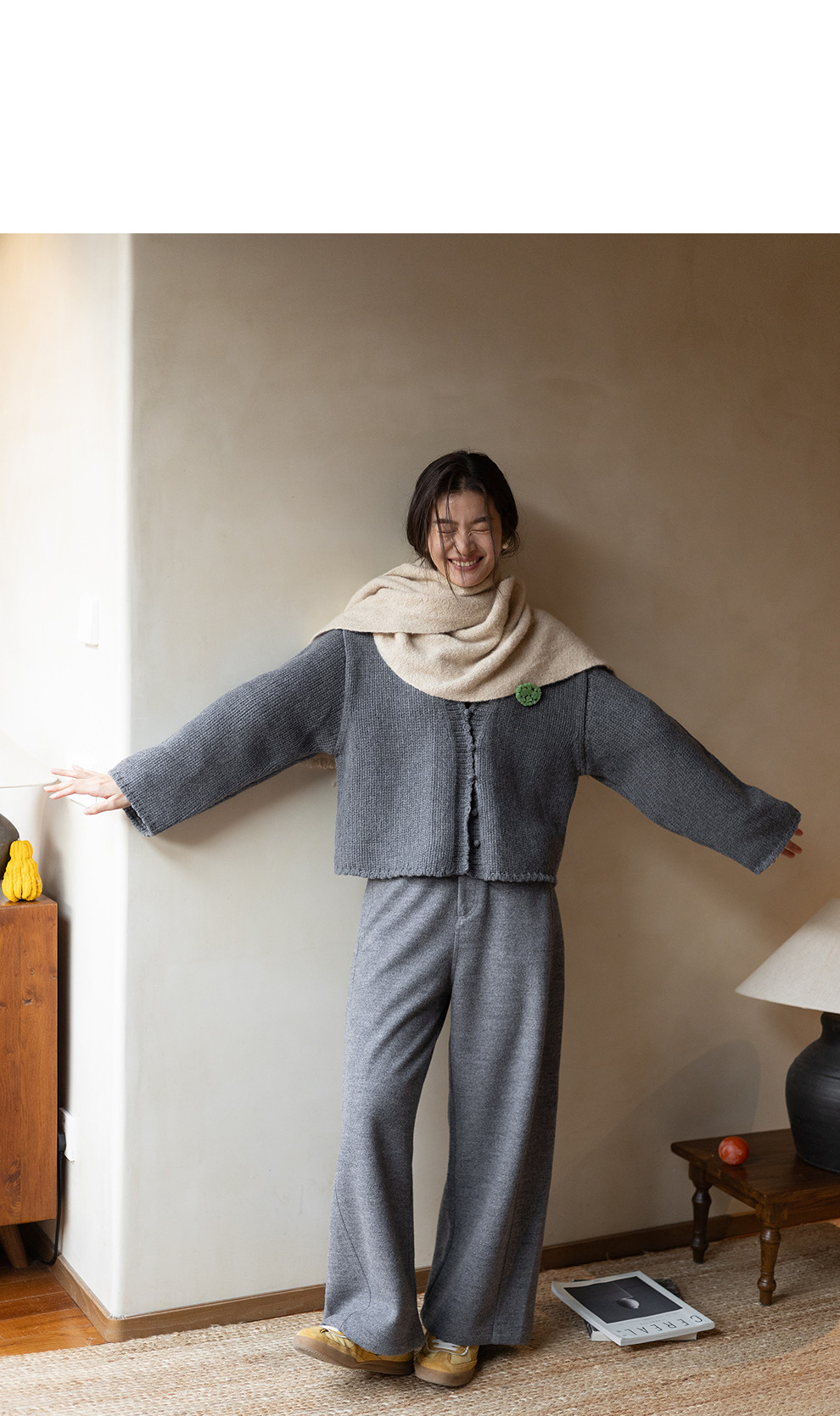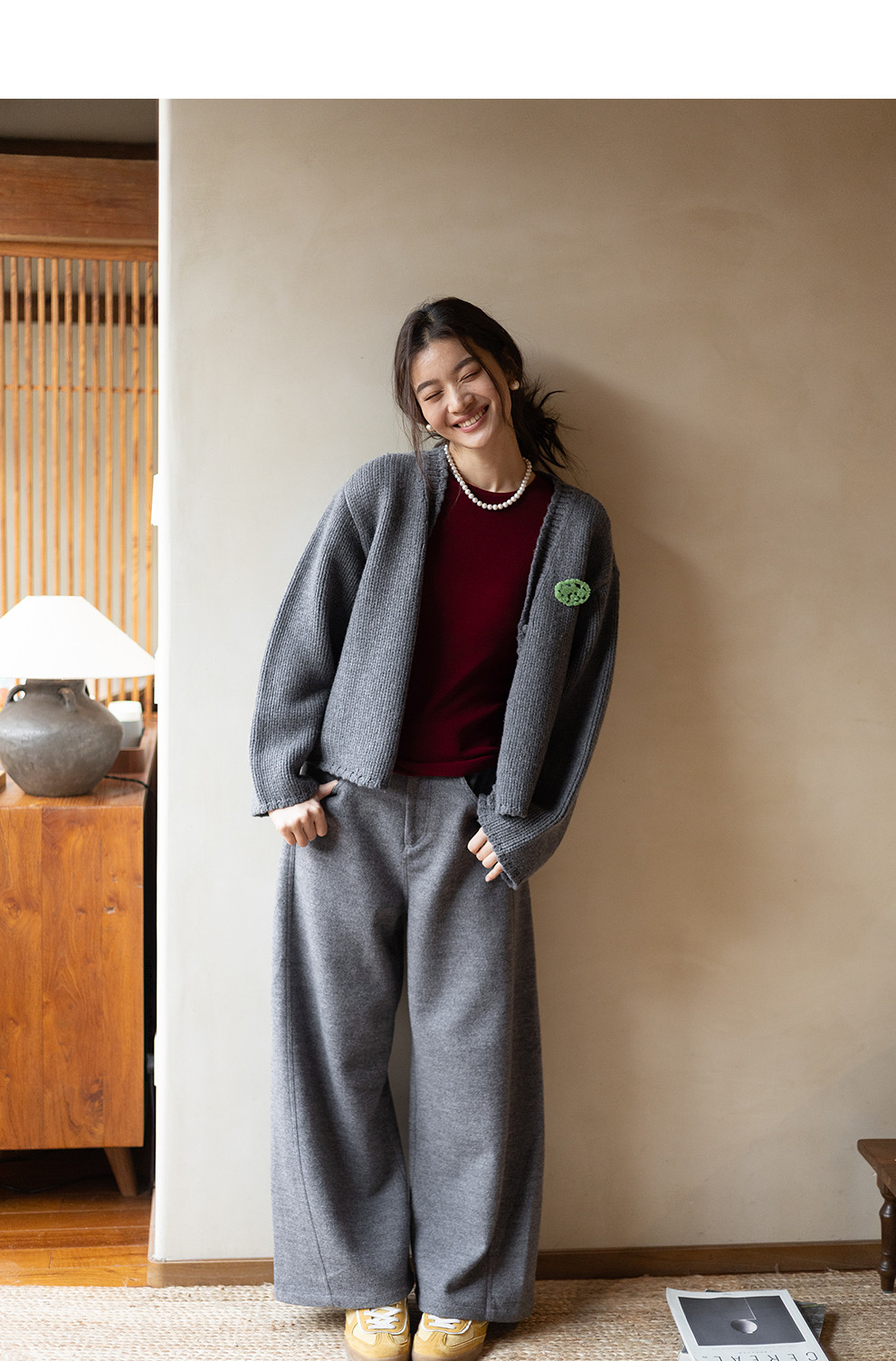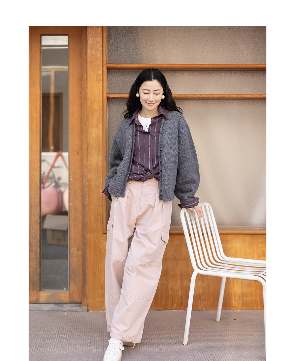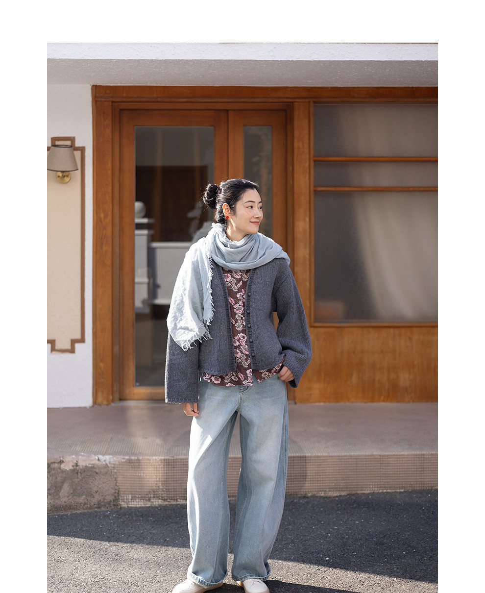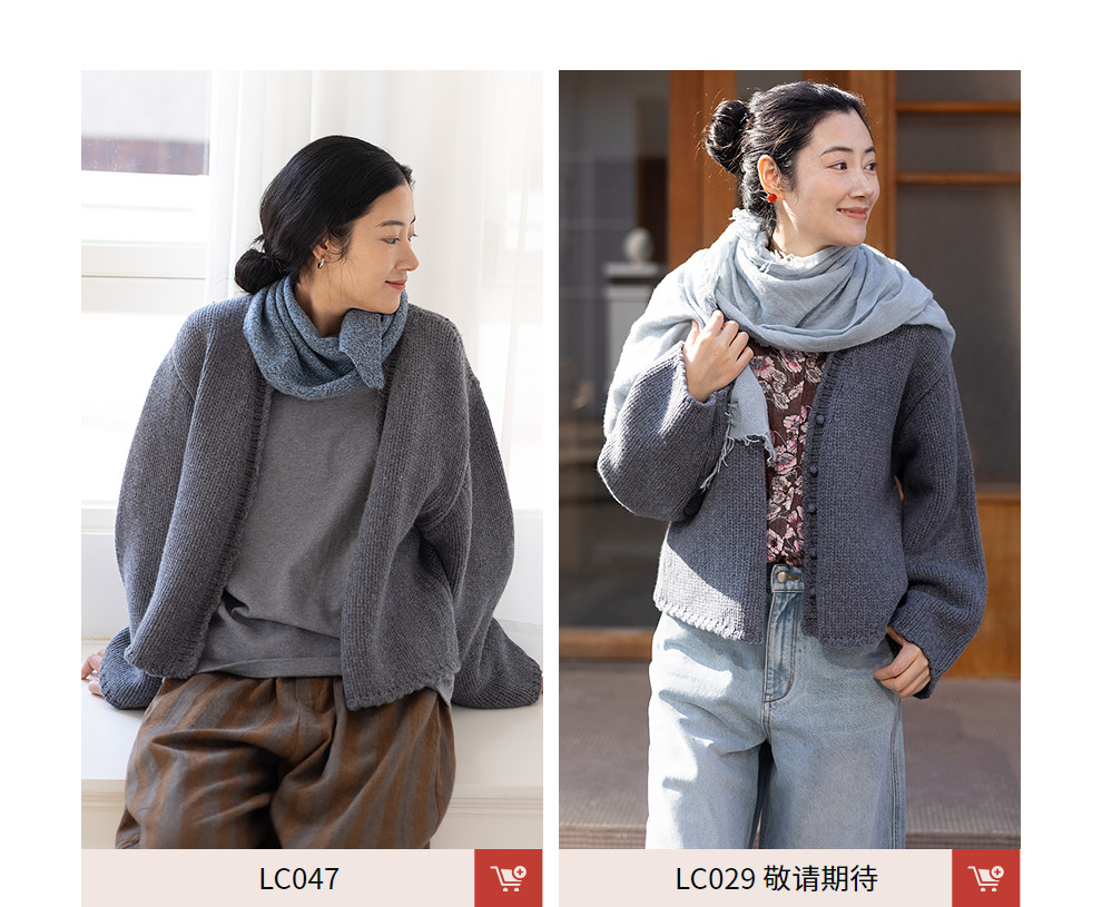 绽放067朵/100%美利奴羊毛衫重磅粗针设计感开襟毛针织衫新款开衫