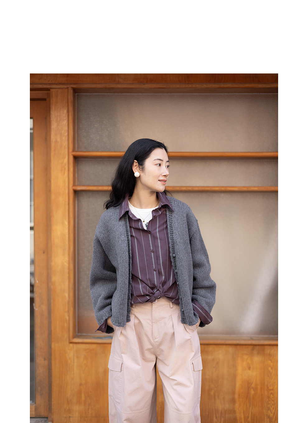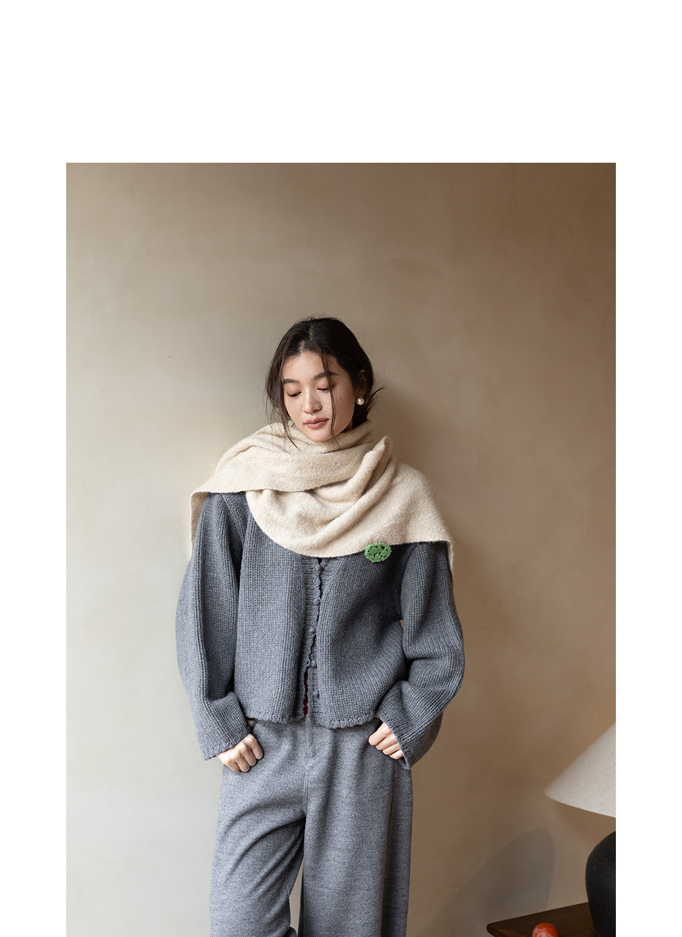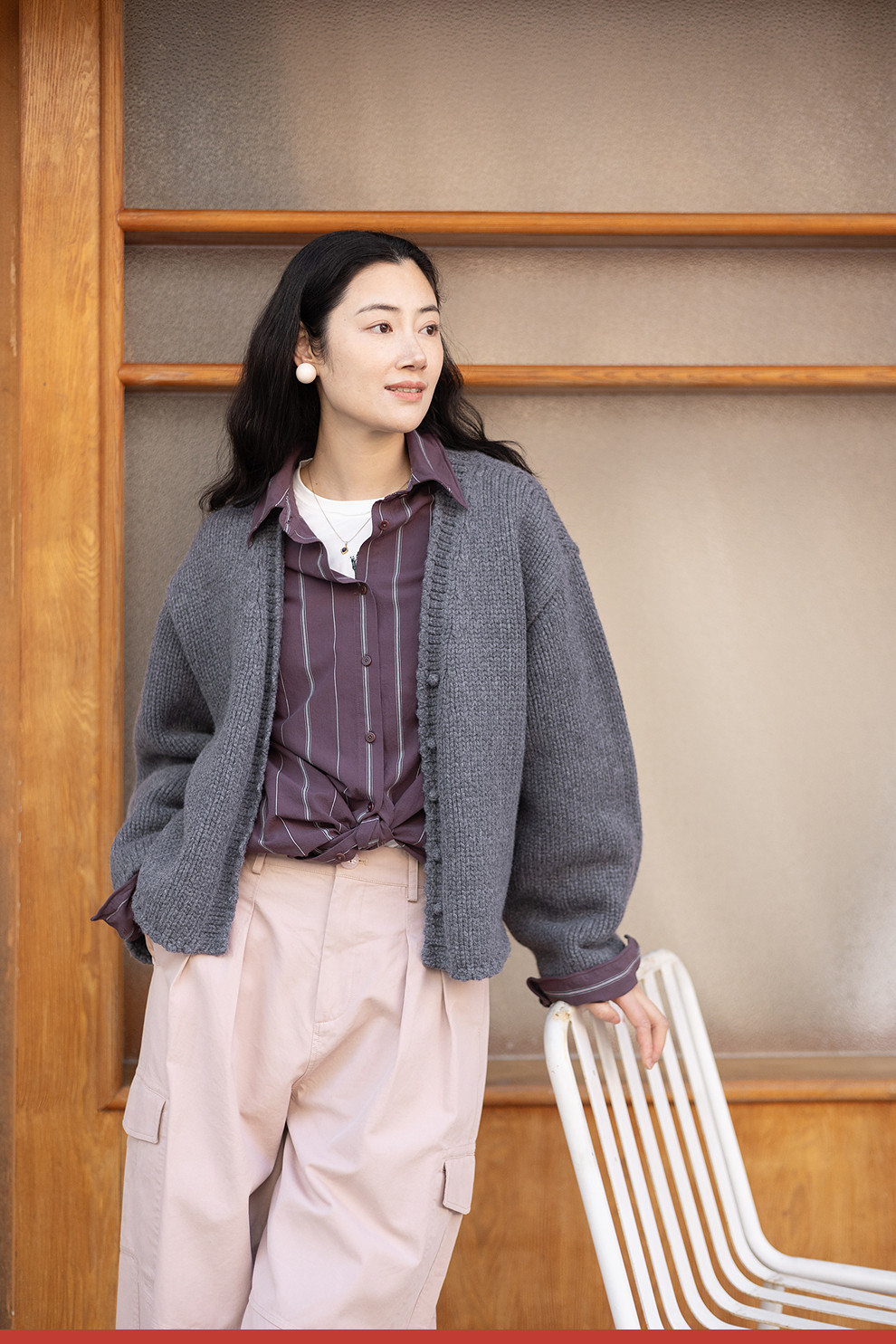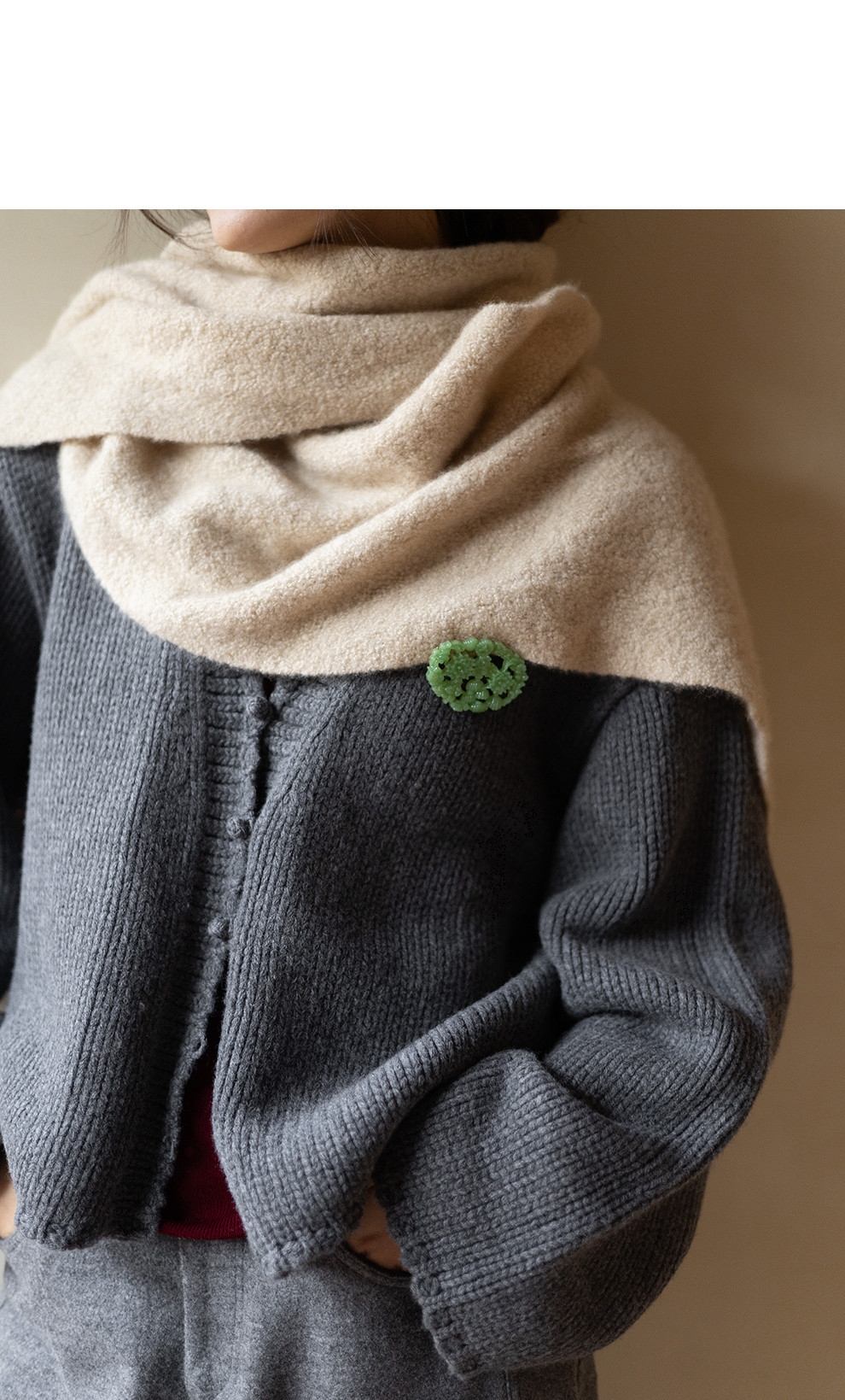 绽放067朵/100%美利奴羊毛衫重磅粗针设计感开襟毛针织衫新款开衫