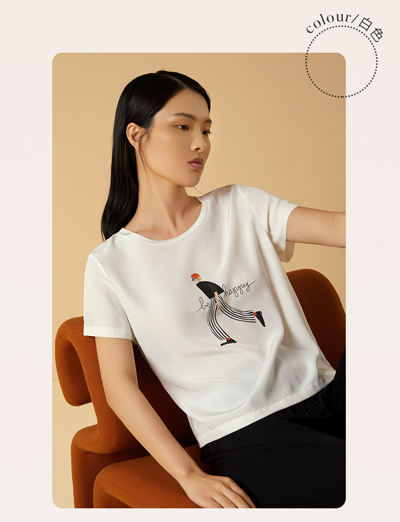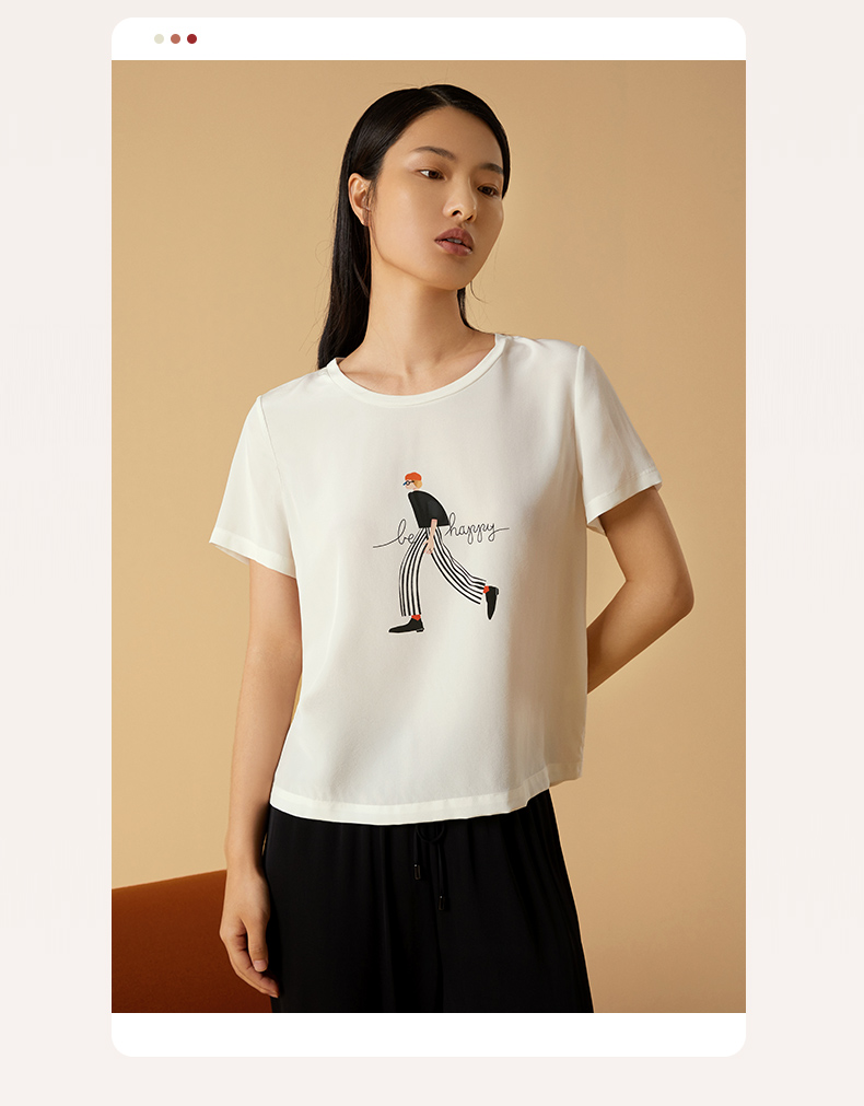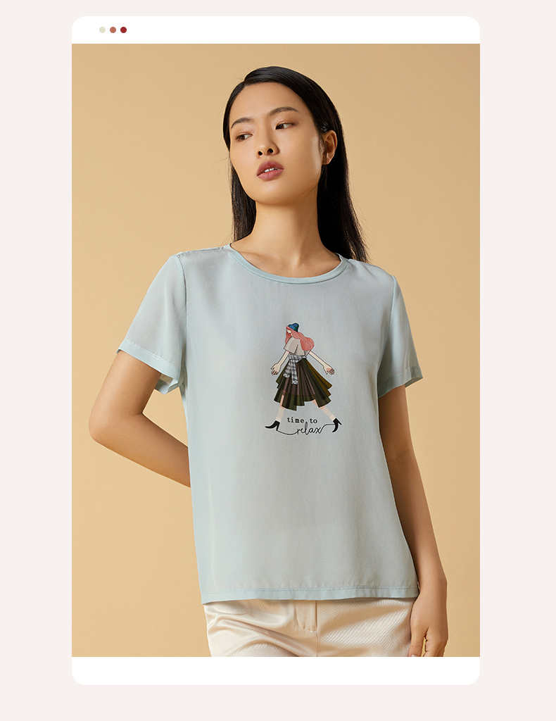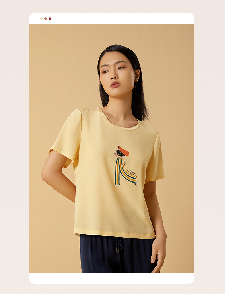 金三塔100%桑蚕丝水洗双绉不易皱的真丝女士时尚印花短袖T恤新品 YZFCA702