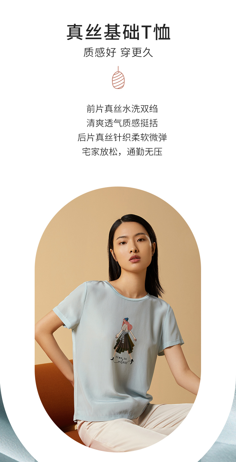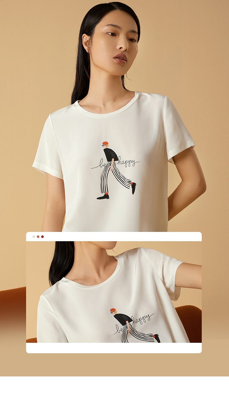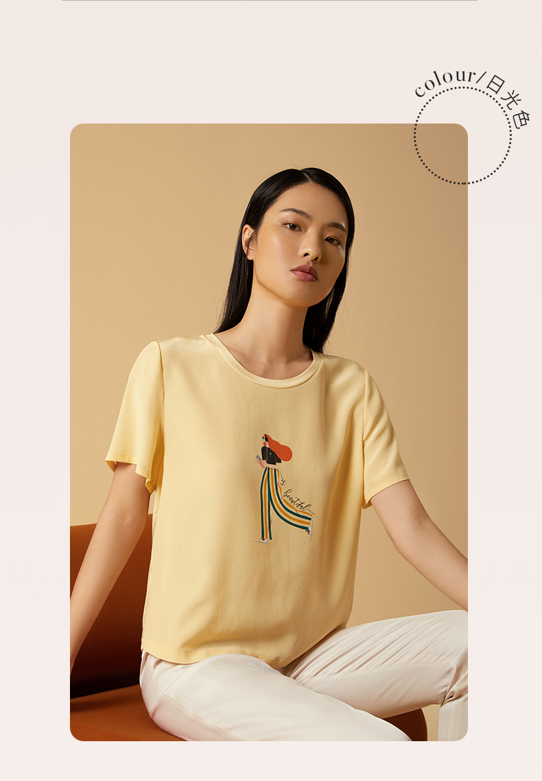 金三塔100%桑蚕丝水洗双绉不易皱的真丝女士时尚印花短袖T恤新品 YZFCA702