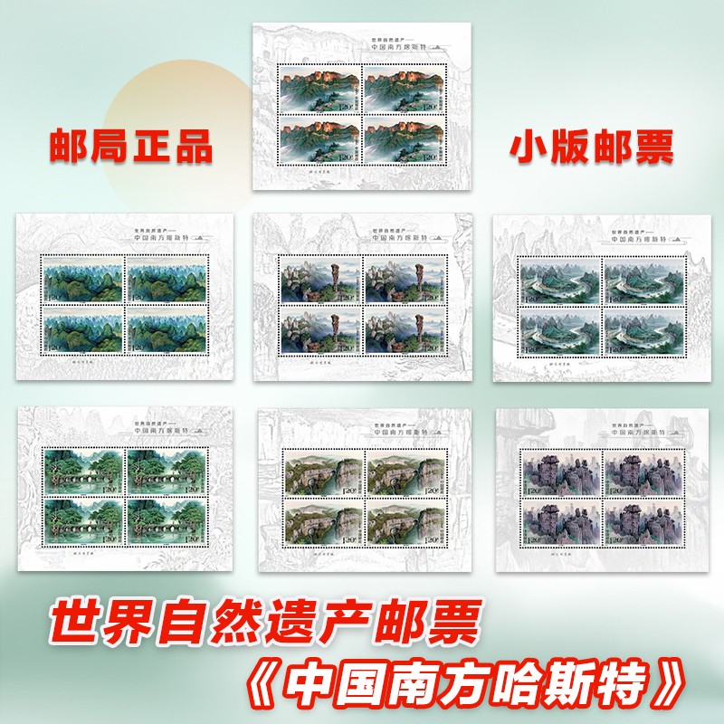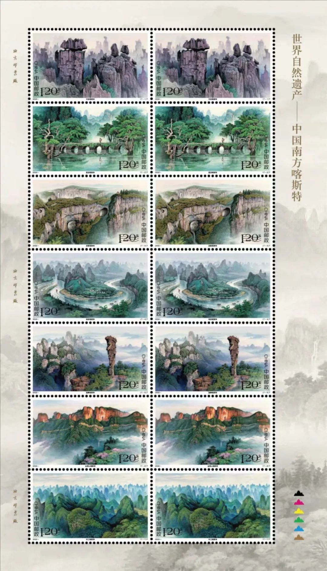 中国邮政定于2022年4月28日发行《世界自然遗产-中国南方喀斯特》特种邮票一套7枚,名称分别为:石林喀斯特;荔波喀斯特;武隆喀斯特;桂林喀斯特;施秉喀斯特;金佛山喀斯特;环江喀斯特。