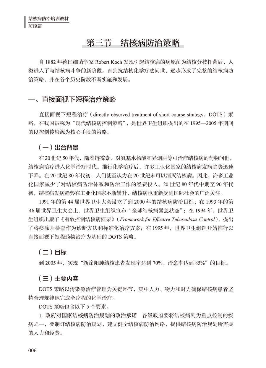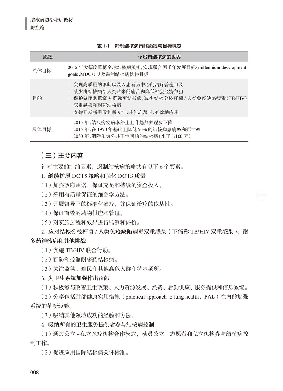 我国是全球30个结核病高负担国家之一,结核病负担位居全球第二,因此结核病防治仍然是我国公共卫生面临的重要问题之一,结核病疫情形势依然严峻,要实现WHO提出的2035年终止全球结核病流行的目标,仍然需要我们付出百倍的努力,因此有必要结合新的形势,制订培训教材,确保结核病防控工作能够顺利开展。本书由十三章组成,包括概述、结核潜伏感染筛查与预防、结核病实验室检查、结核病诊断、结核病治疗、患者管理、患者关怀等,涵盖了目前结核病防治领域所有的工作内容,在每一章中会讲述知识原因以及目前国内外的最新进展,并附知识要点归纳,以及自测题供学员了解掌握水平,具有很好的实用价值。本书作为临床篇和学校篇的姊妹篇,也可以供结核病临床和学校等参考使用,以期共同助力我国结核病防控工作,尽早实现消除结核病流行的目标。