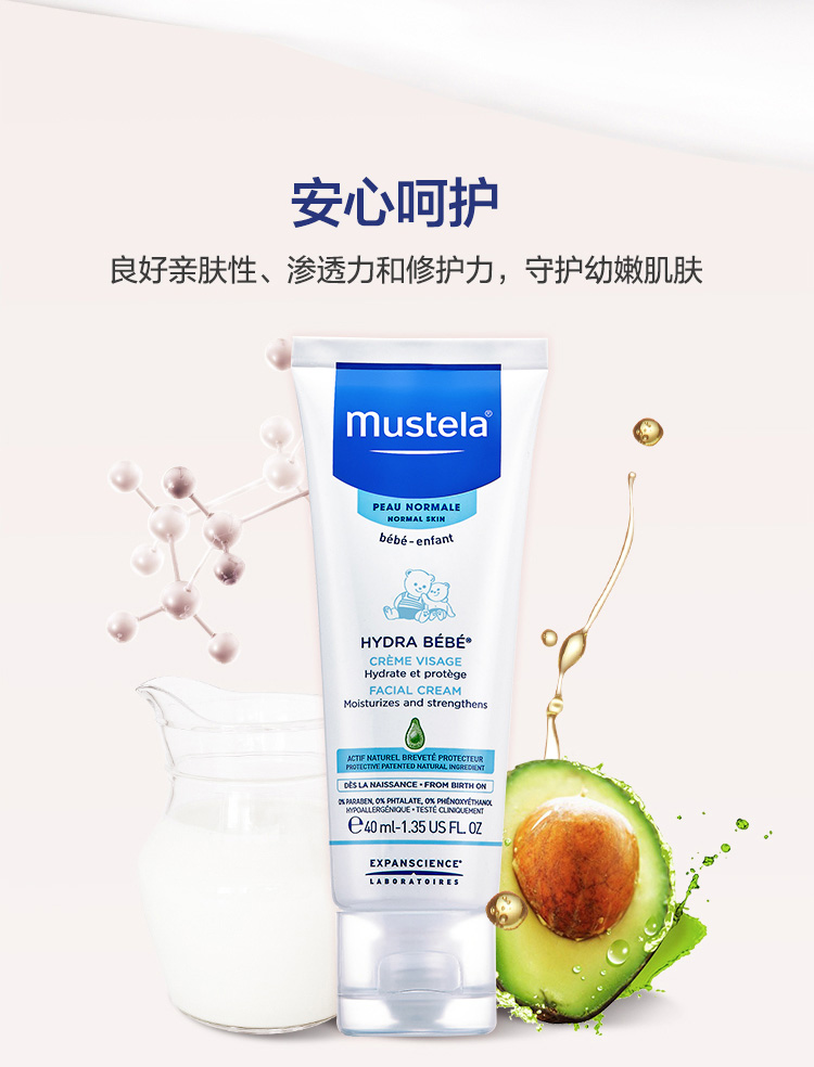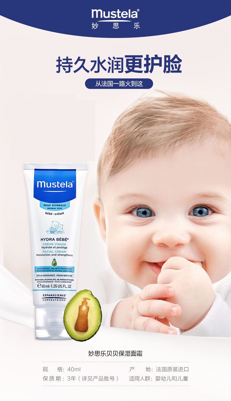 【一般贸易】法国进口Mustela 妙思乐宝宝面霜40ml