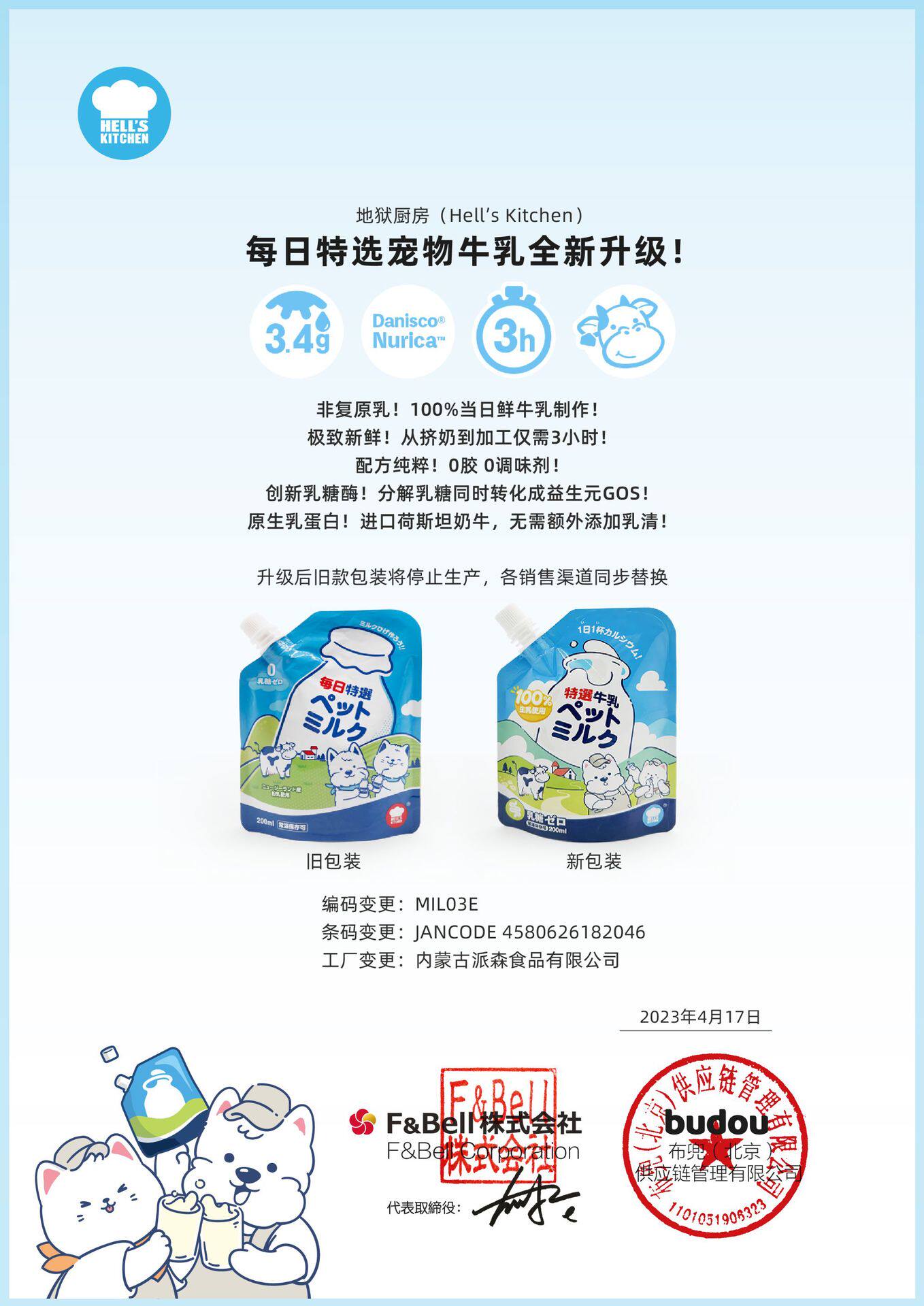 地狱厨房牛奶通用狗狗牛奶专用补钙通用乳糖猫咪奶猫咪零食整箱装