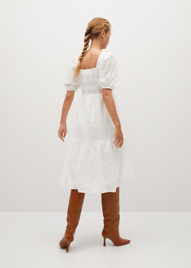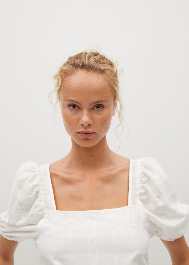 Mango这款纱质泡泡袖连衣裙,尺码全,100%全棉材质,夏天非常舒服哦。