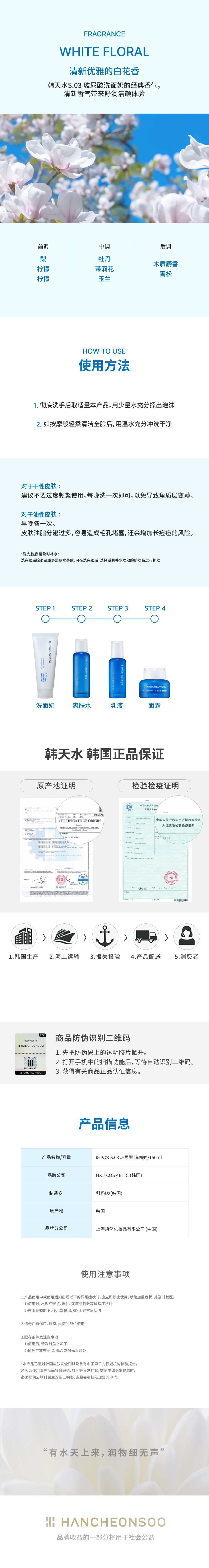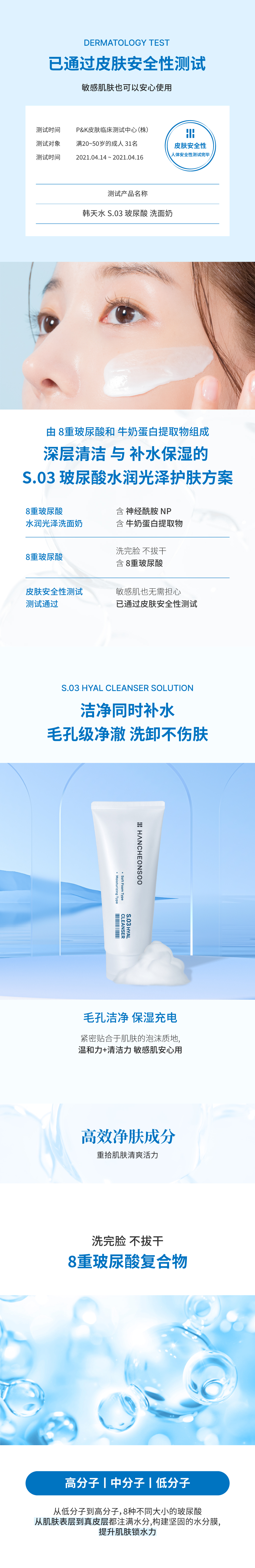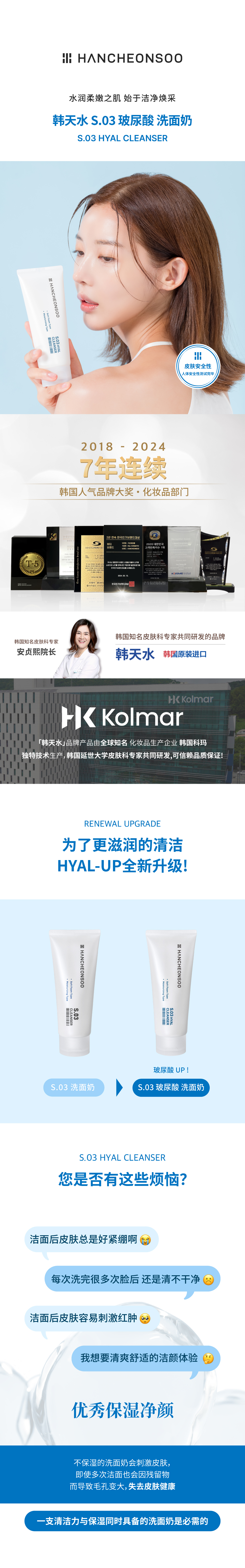 韩天水S03玻尿酸补水保湿洗面奶韩国进口 150ml