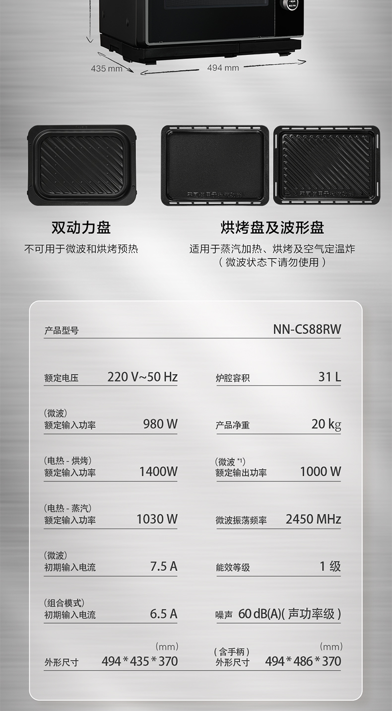 【云粉节】10楼 松下微蒸烤炸一体机万食炉上烤下煮31L大容量家用变频微波炉烤箱【AI热力导航+双动力烘烤】NN-CS308R 吊牌价7999元 活动价7499元