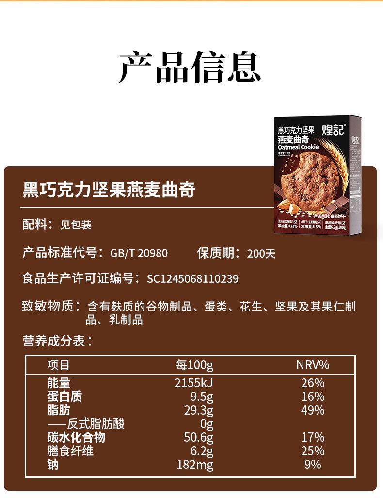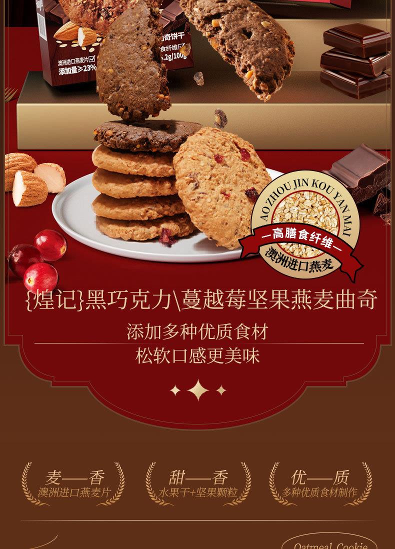 煌记坚果燕麦曲奇饼干105g盒装蔓越莓黑巧克力味下午茶点心糕点