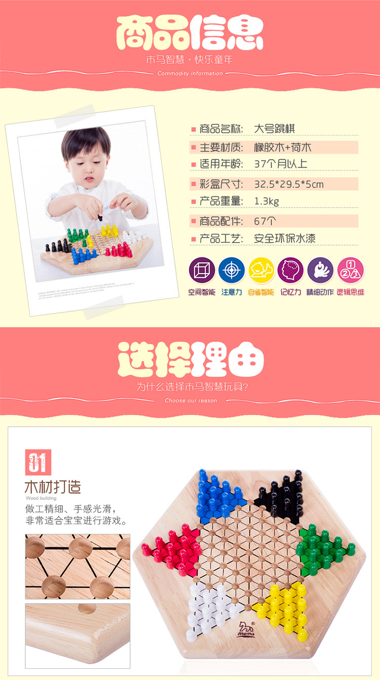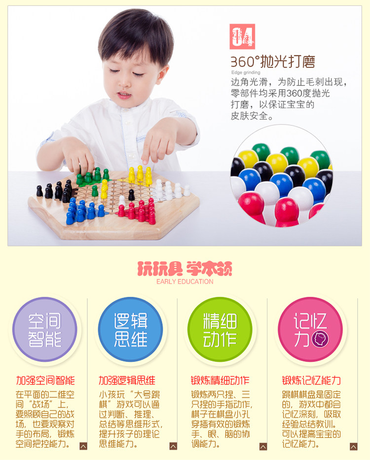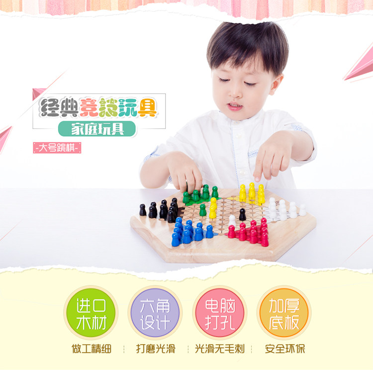 儿童跳棋大人男孩女孩小学生亲子棋类游戏木质大号跳跳棋益智玩具