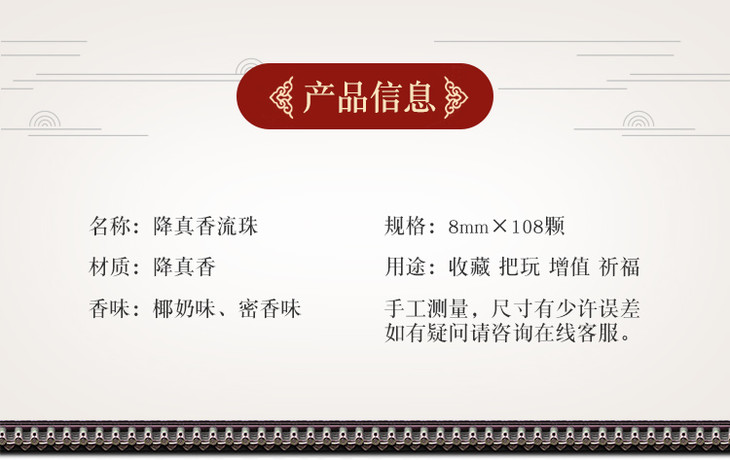 降真香手串,椰香黄油麻丝料,108颗念珠