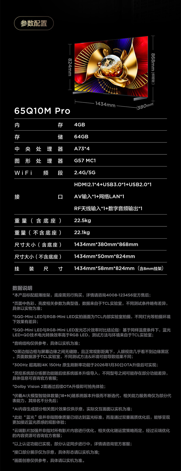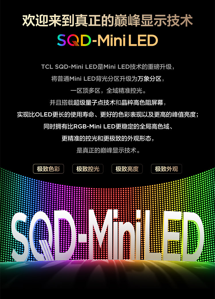TCL电视 65Q10M Pro 65英寸 SQD-Mini LED 100%全局高色域 超级蝶翼华曜屏 万象分区 绚彩XDR 7000nits