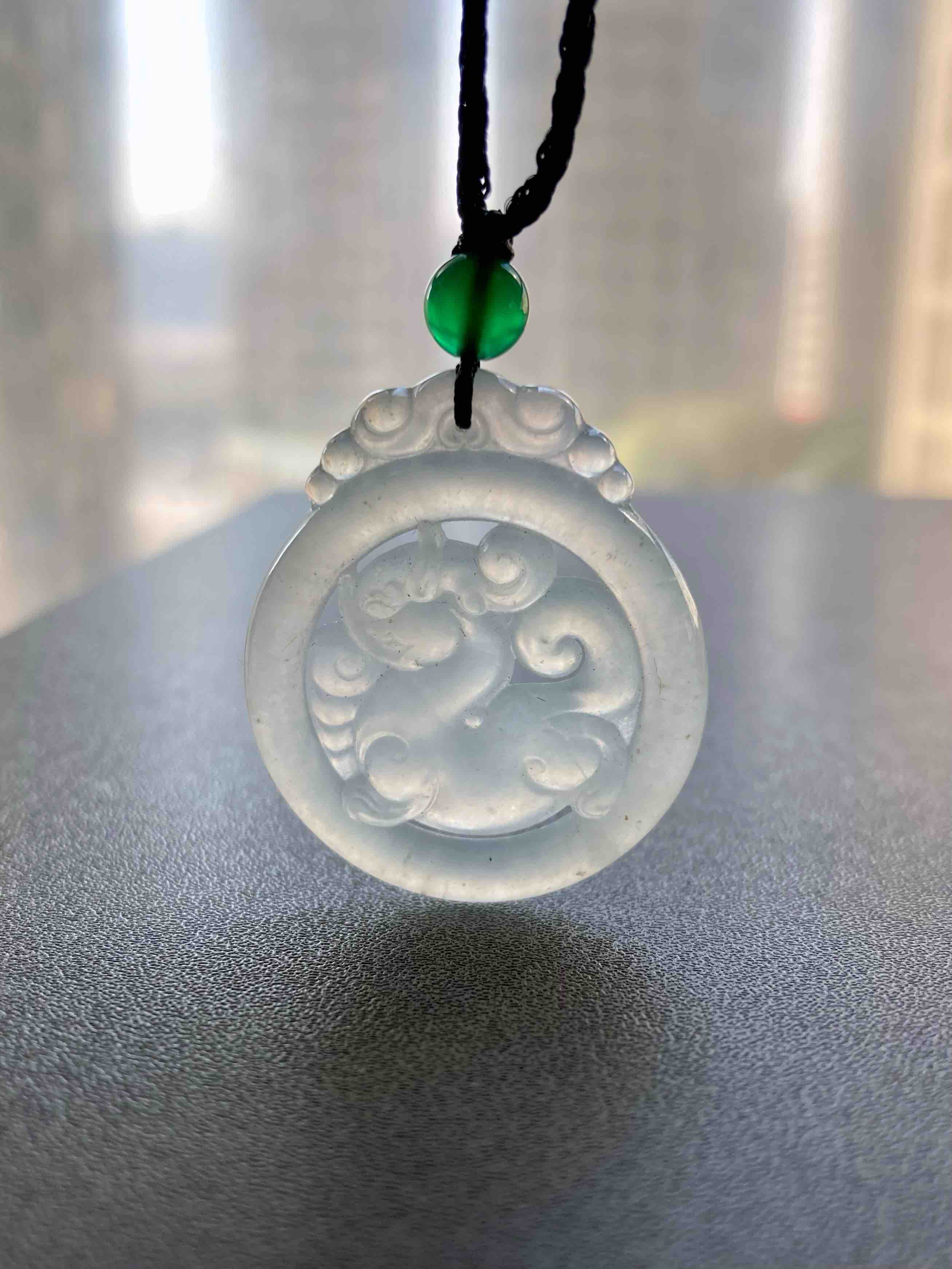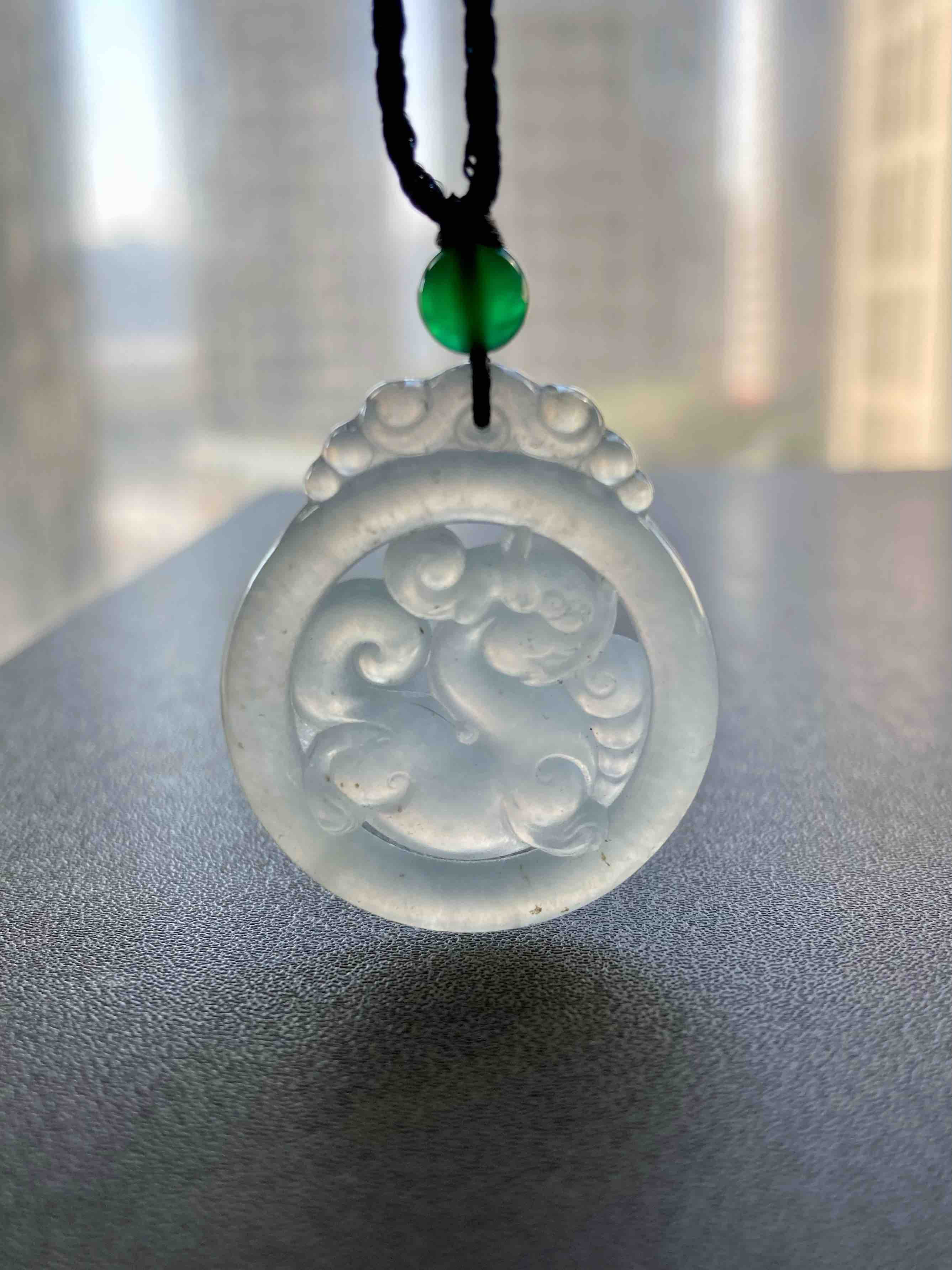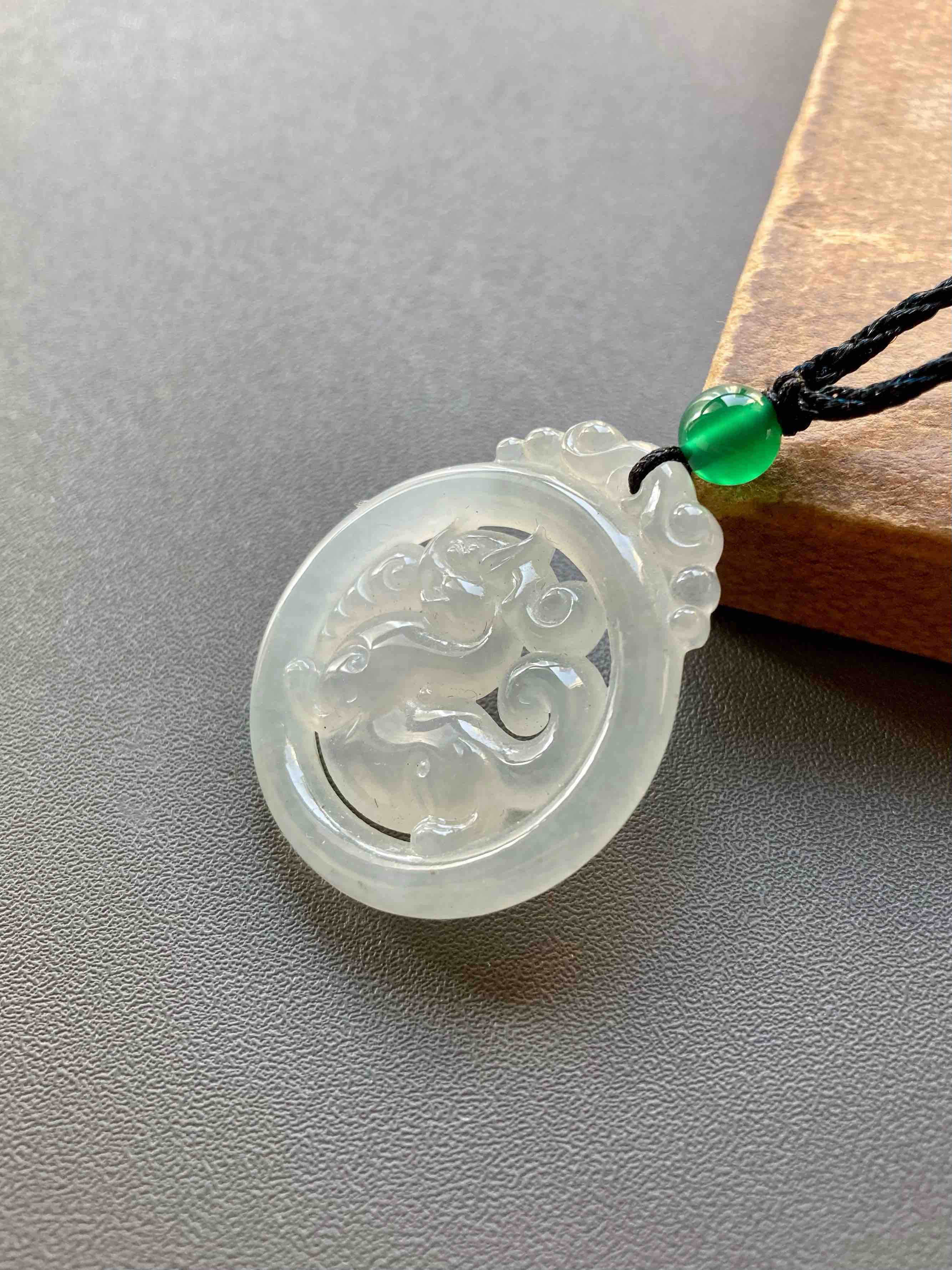 冰种翡翠麒麟,种水棒极了,晶莹剔透,手工镂空雕刻,底部有一些细小的黑点,影响不大,最重要的是三四千的东西我们只要一千多,太划算,麒麟寓意吉祥,助推事业学业,送男士送孩子都特别好,34.5×29.6×5mm