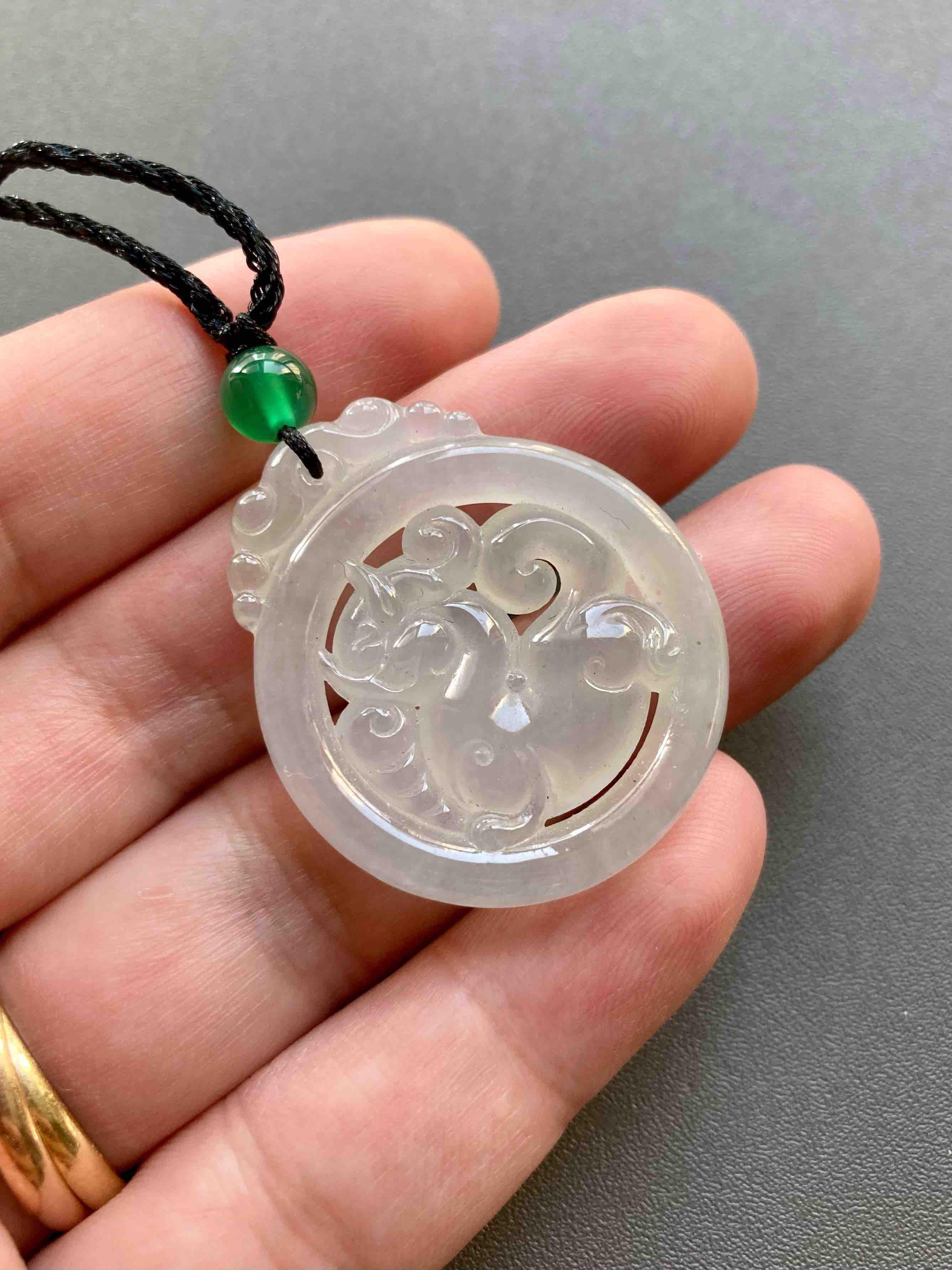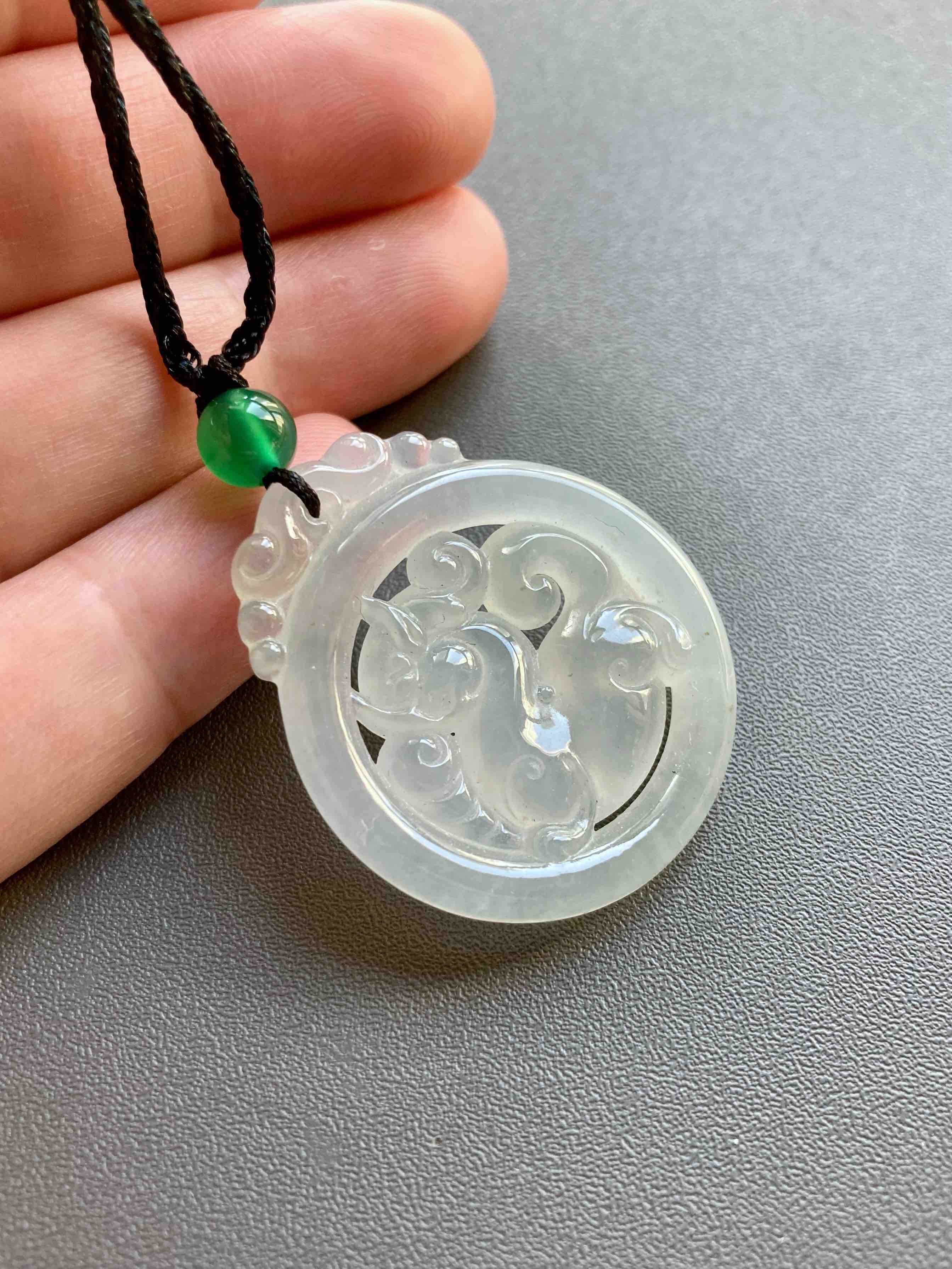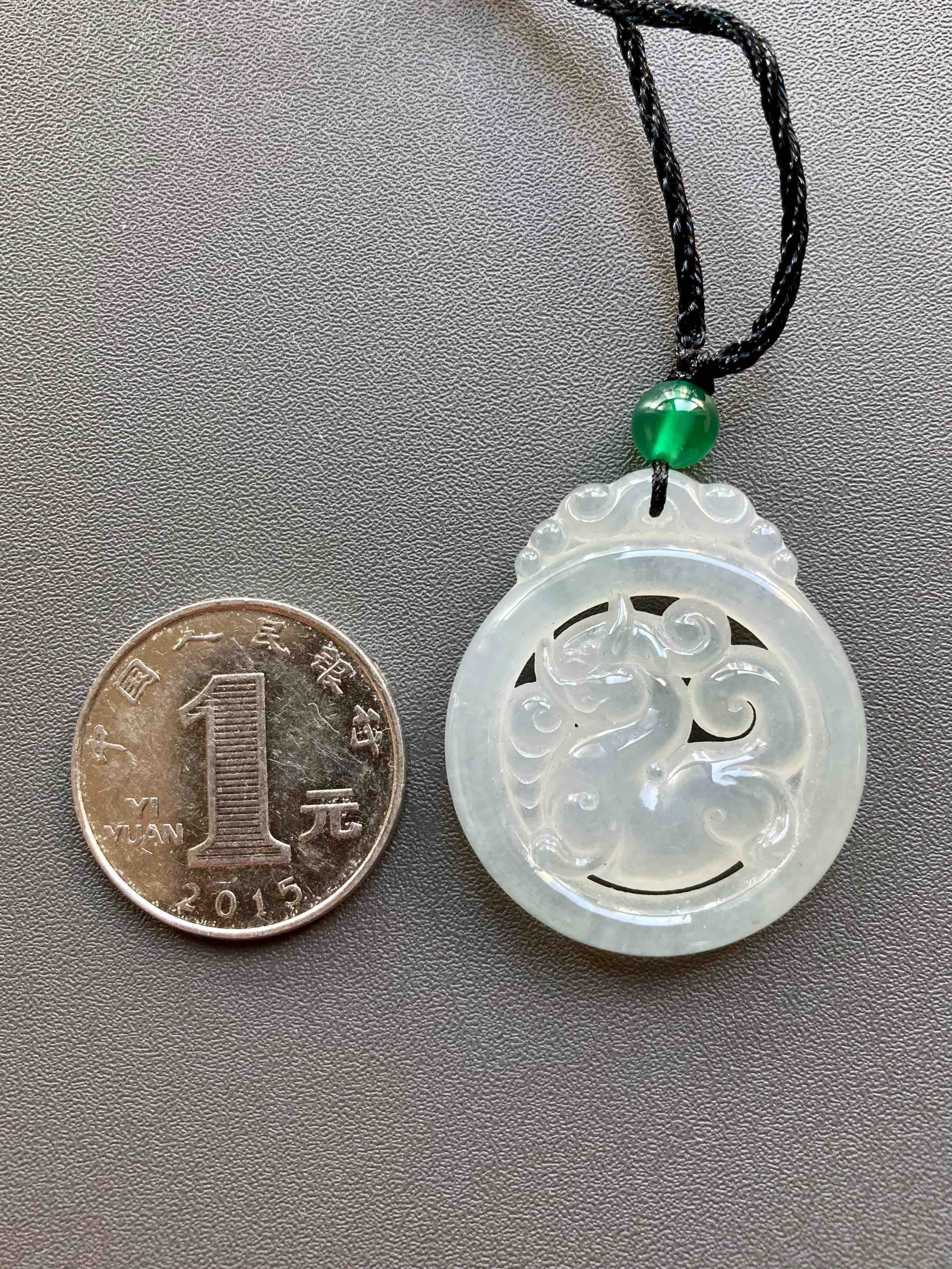 冰种翡翠麒麟,种水棒极了,晶莹剔透,手工镂空雕刻,底部有一些细小的黑点,影响不大,最重要的是三四千的东西我们只要一千多,太划算,麒麟寓意吉祥,助推事业学业,送男士送孩子都特别好,34.5×29.6×5mm