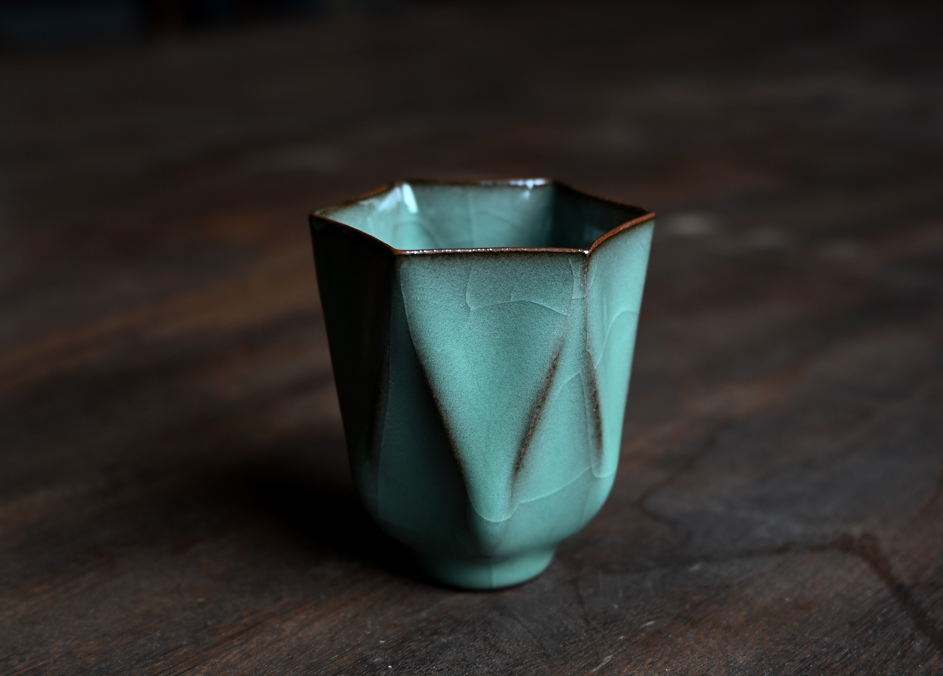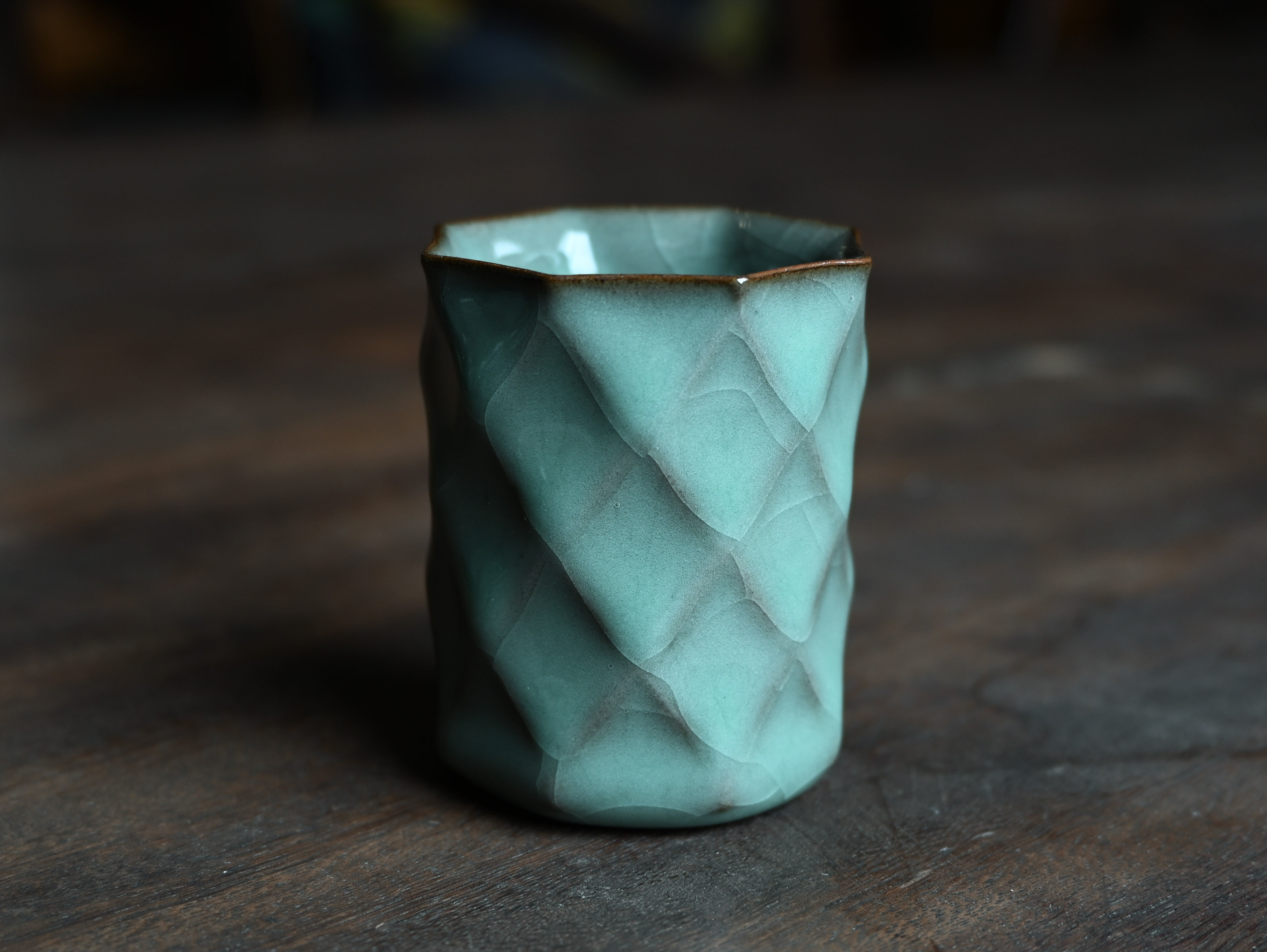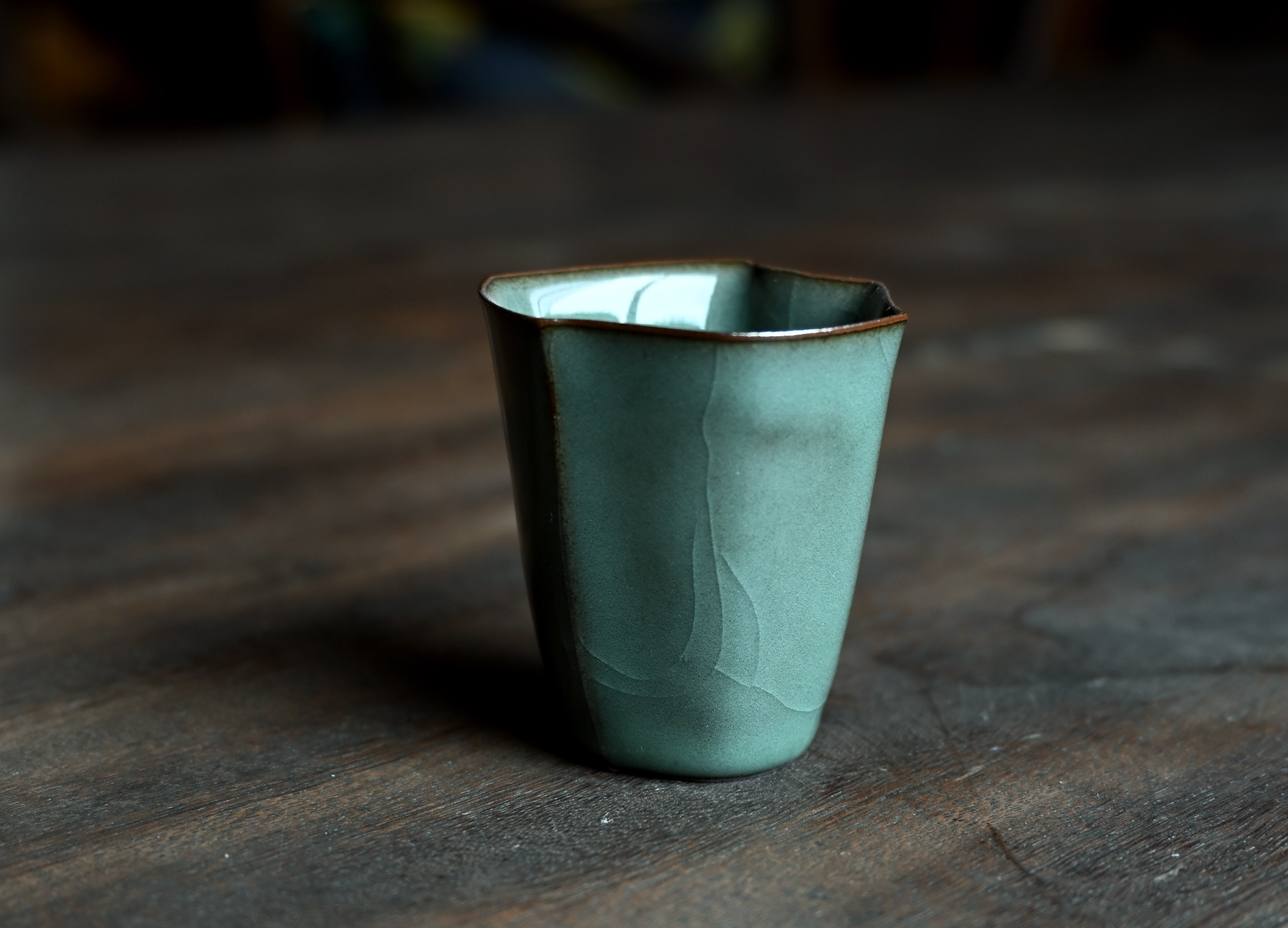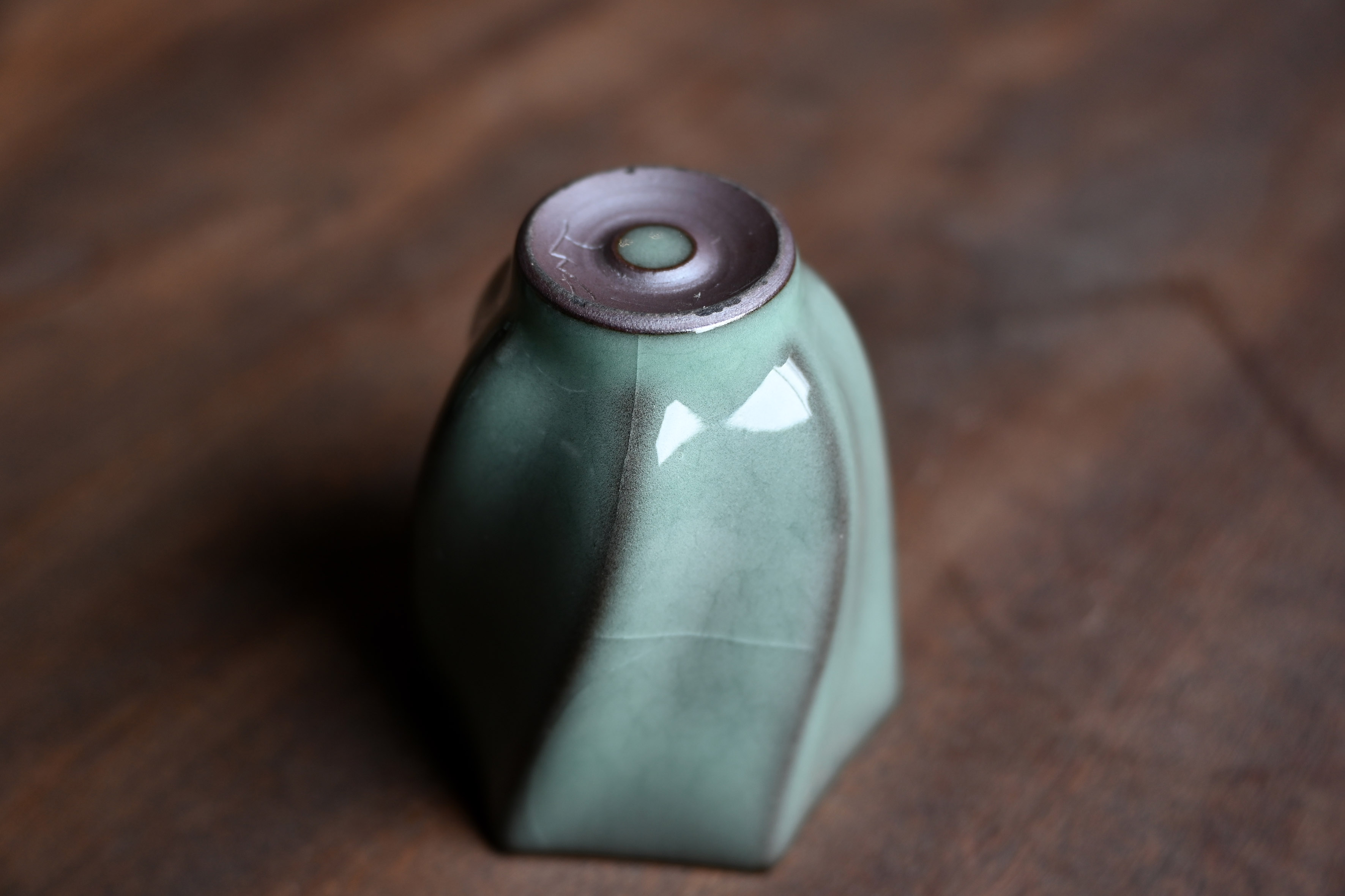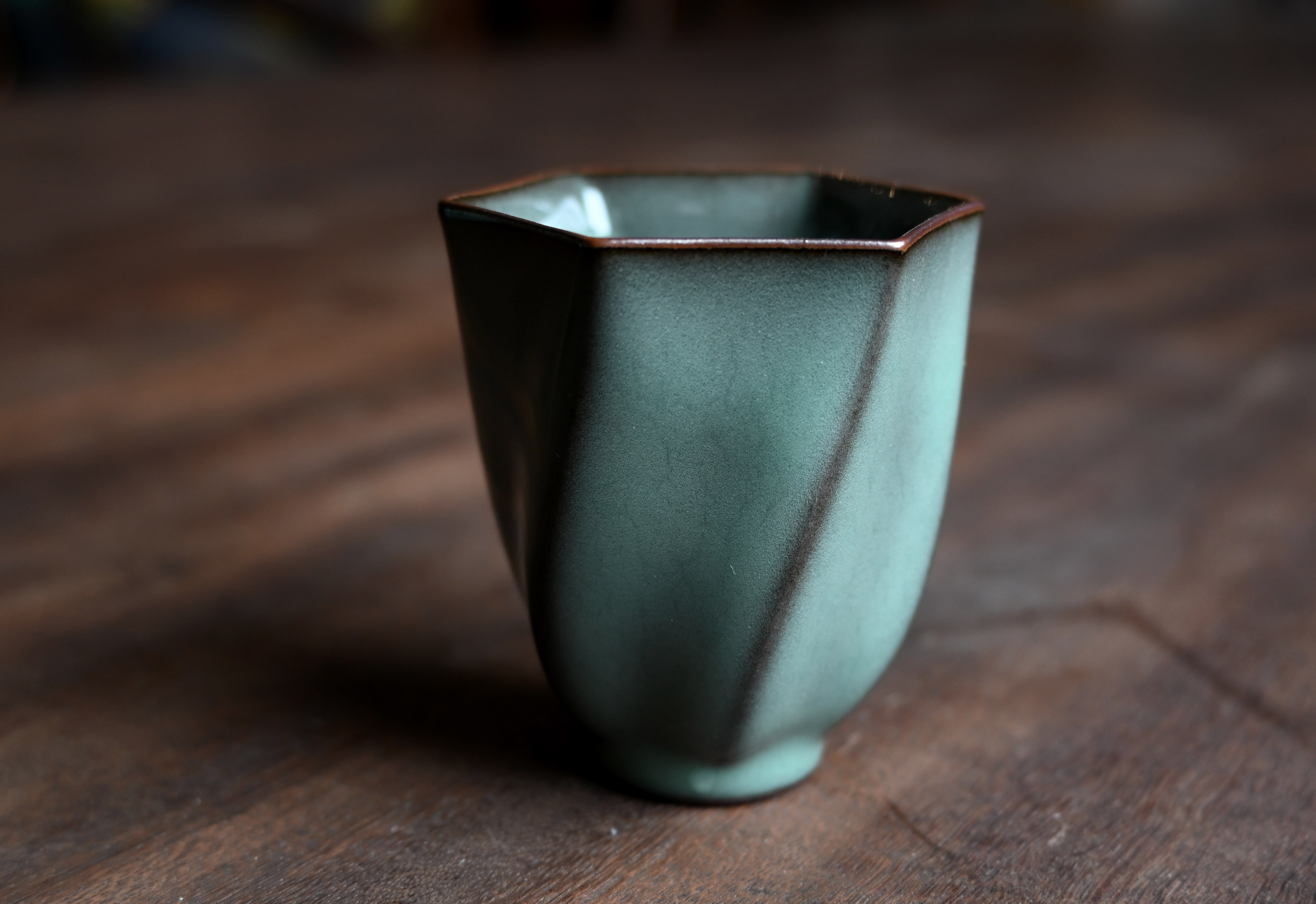 汤忠仁龙泉黑胎青瓷,方形造型特别,与众不同,不落俗套,让人耳目一新。