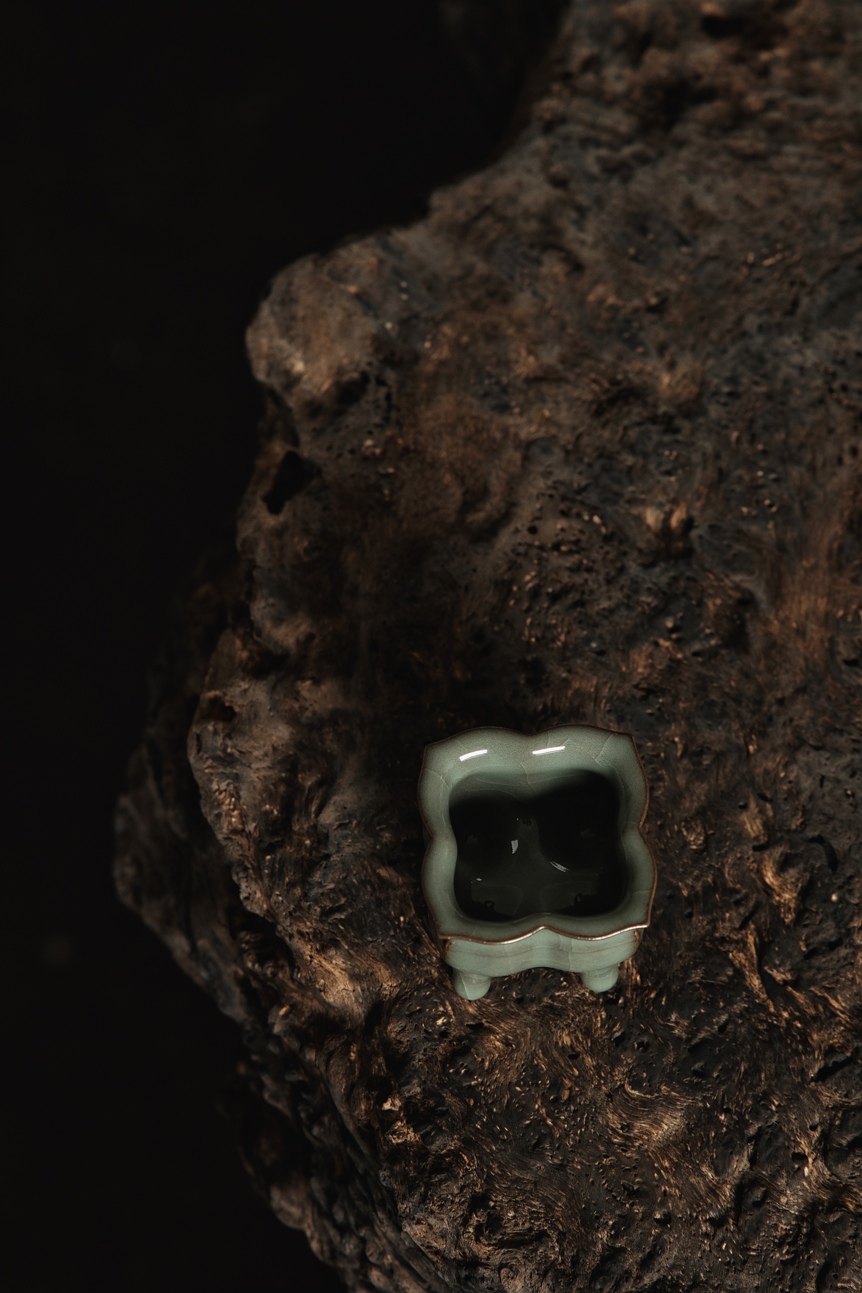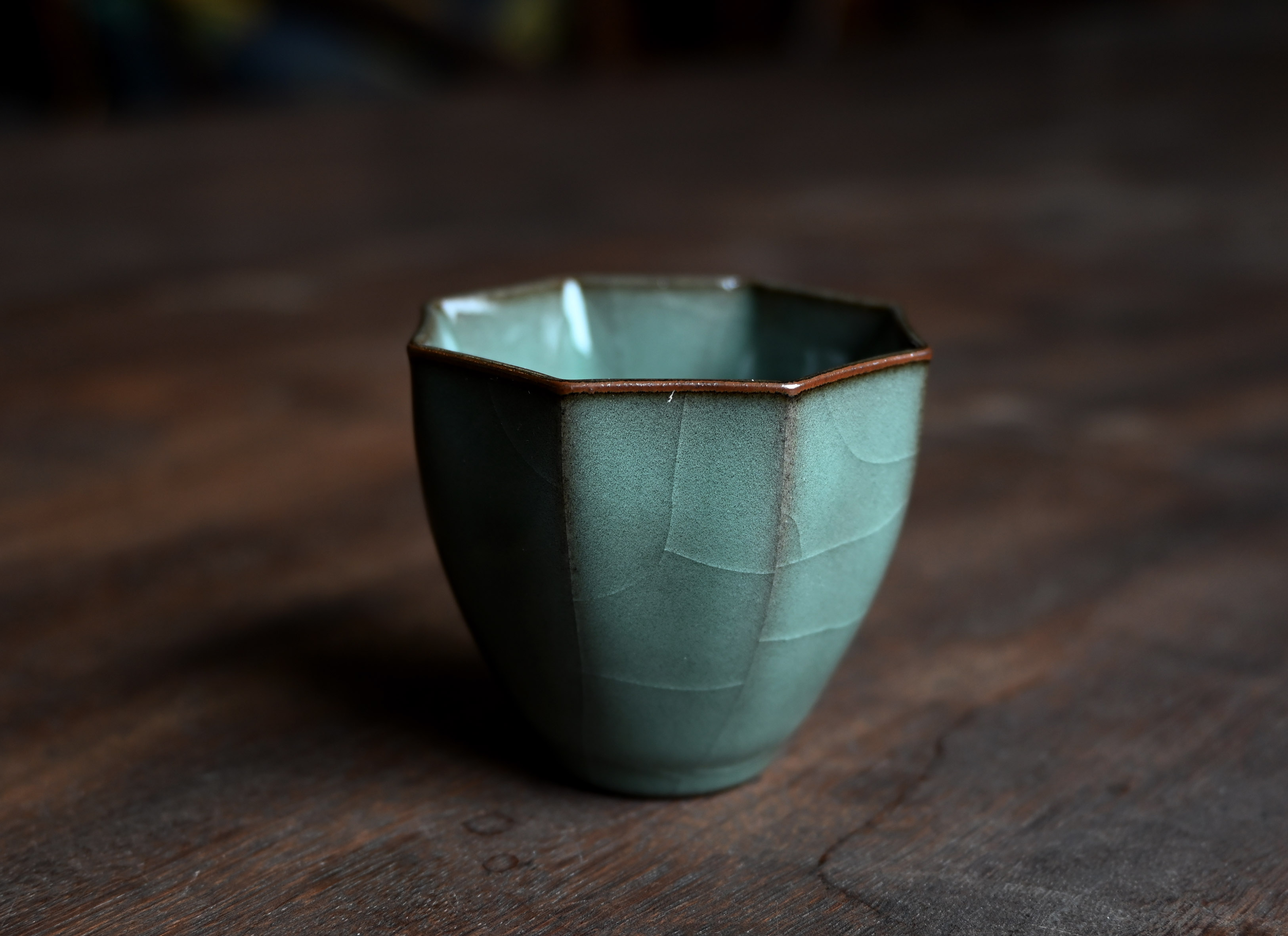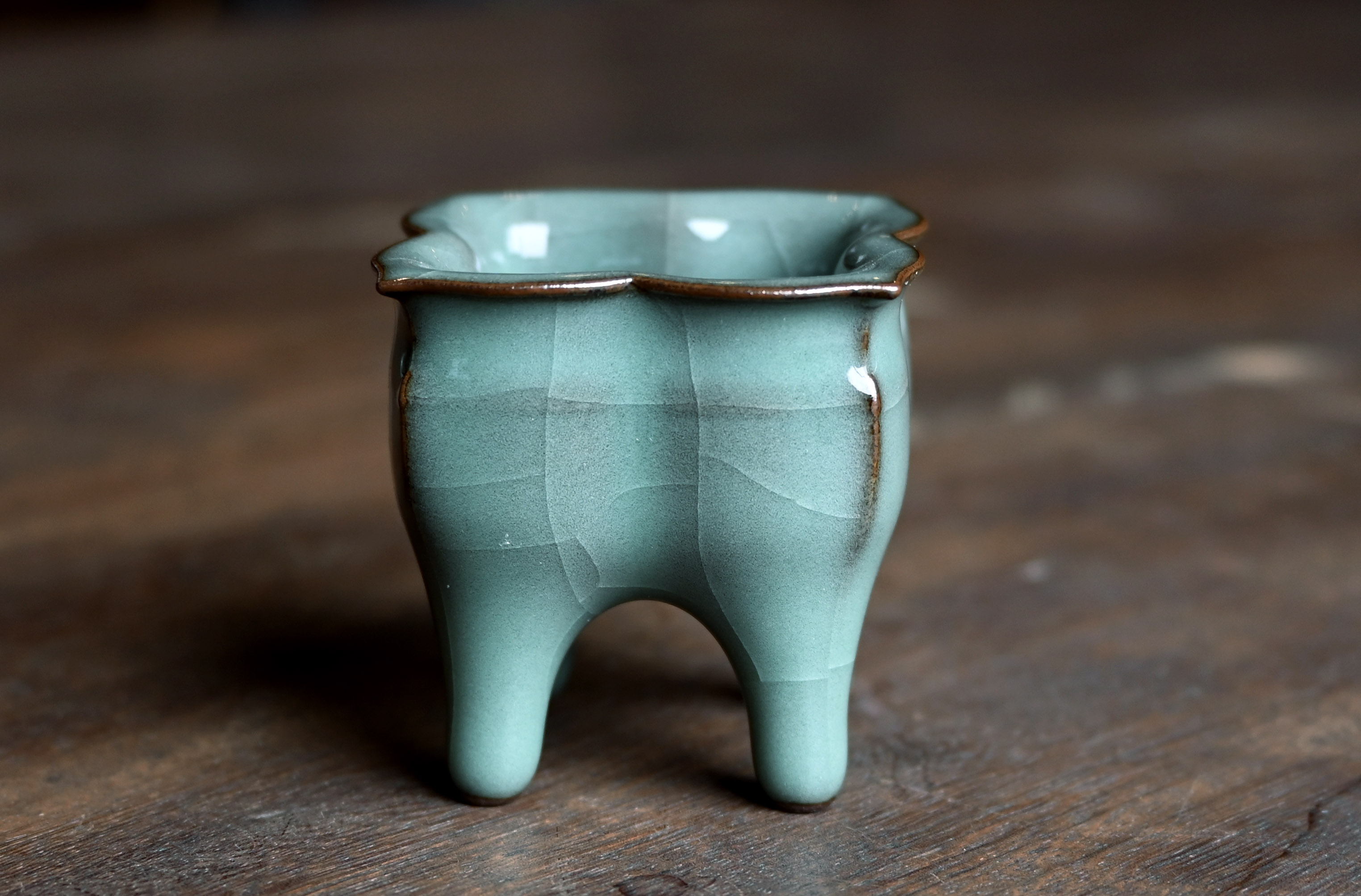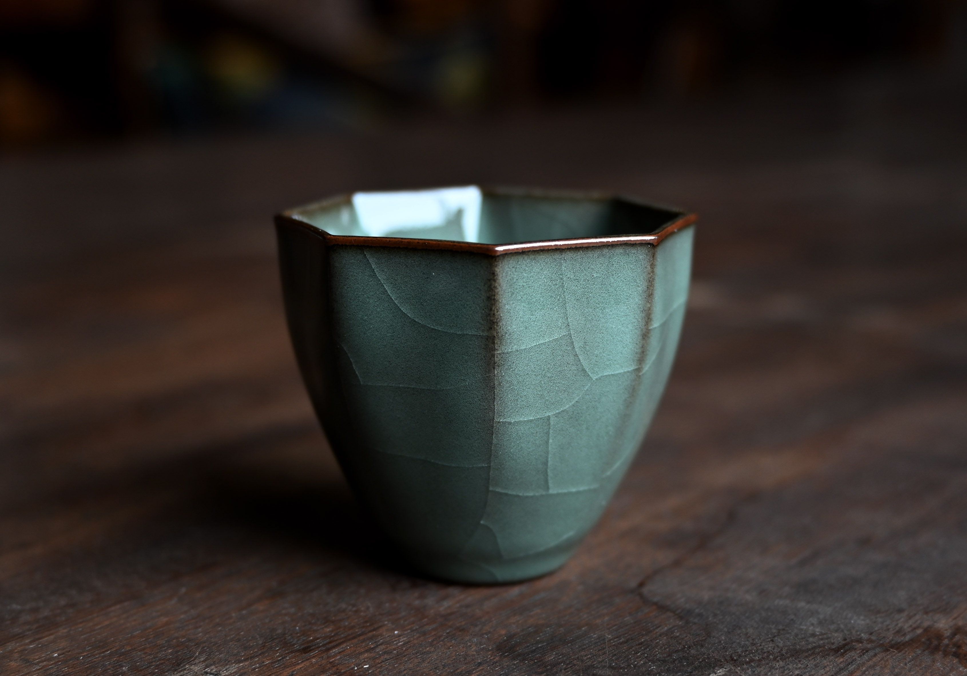 汤忠仁龙泉黑胎青瓷,方形造型特别,与众不同,不落俗套,让人耳目一新。