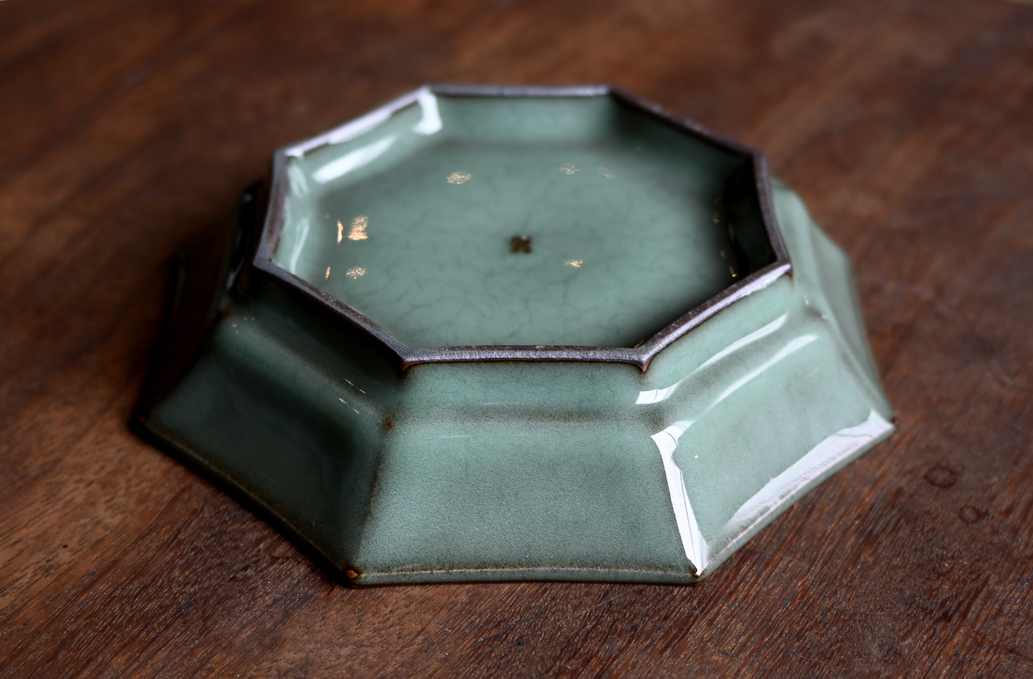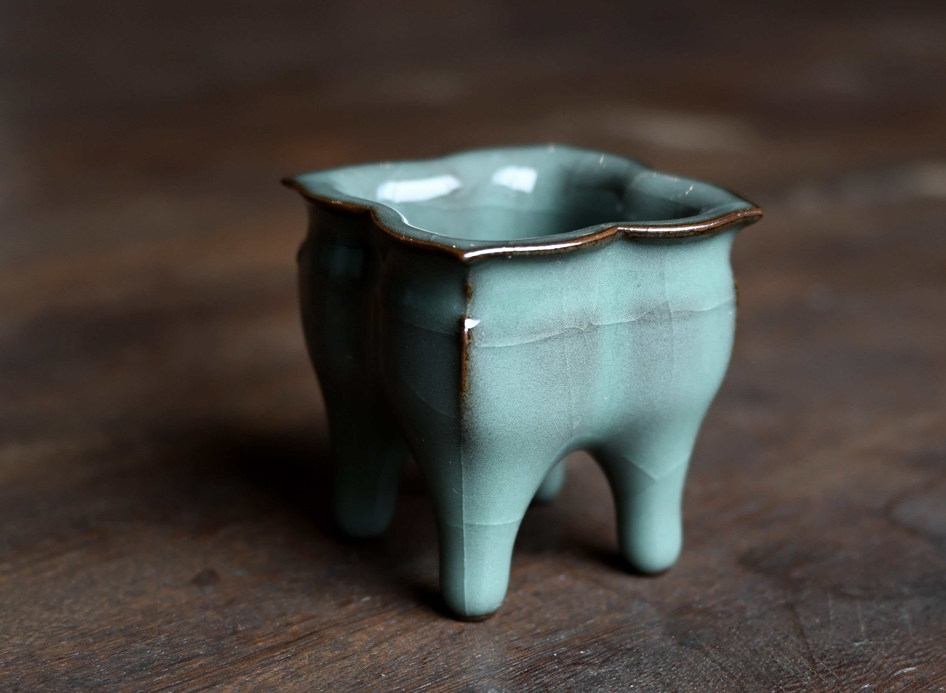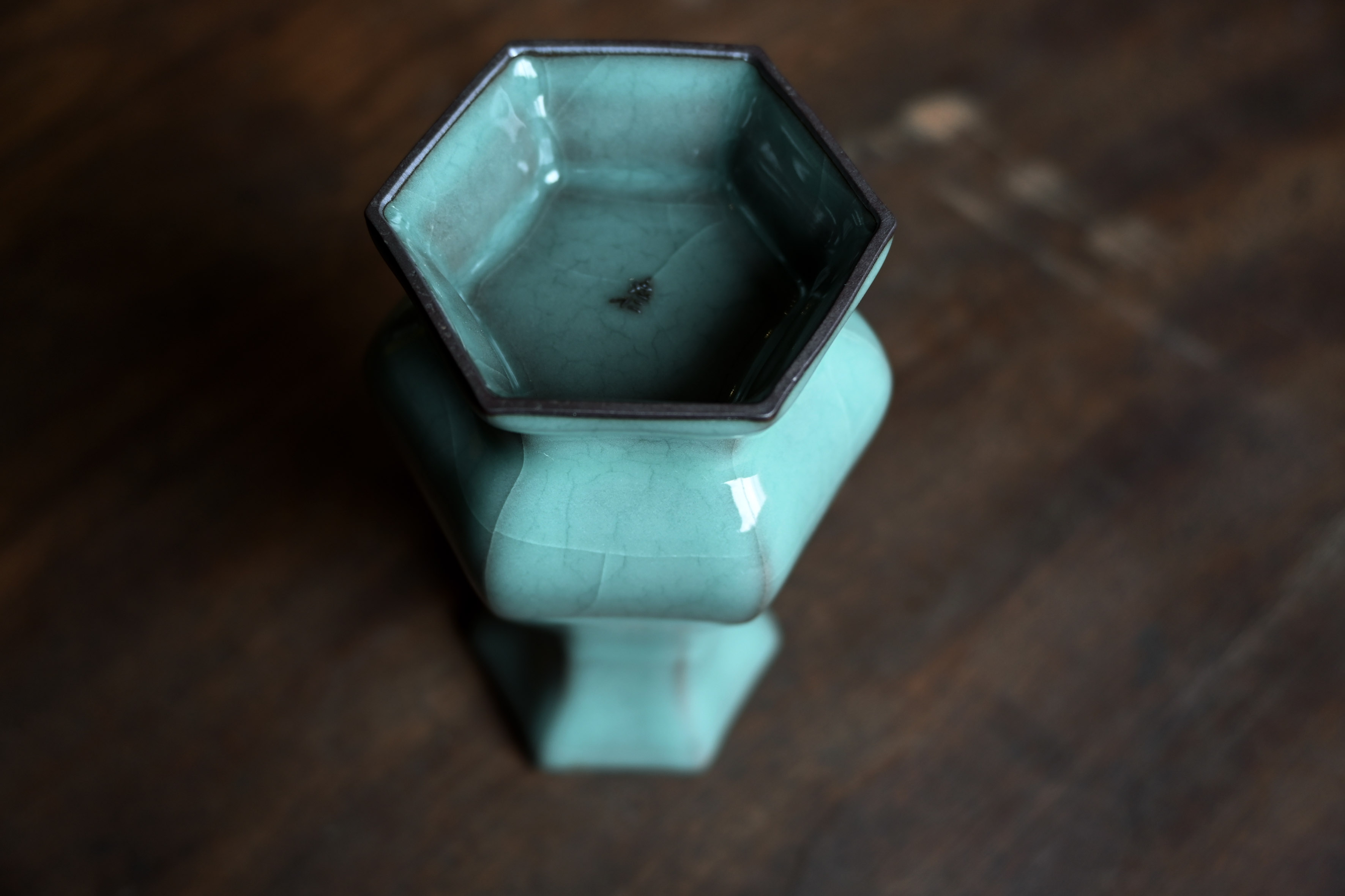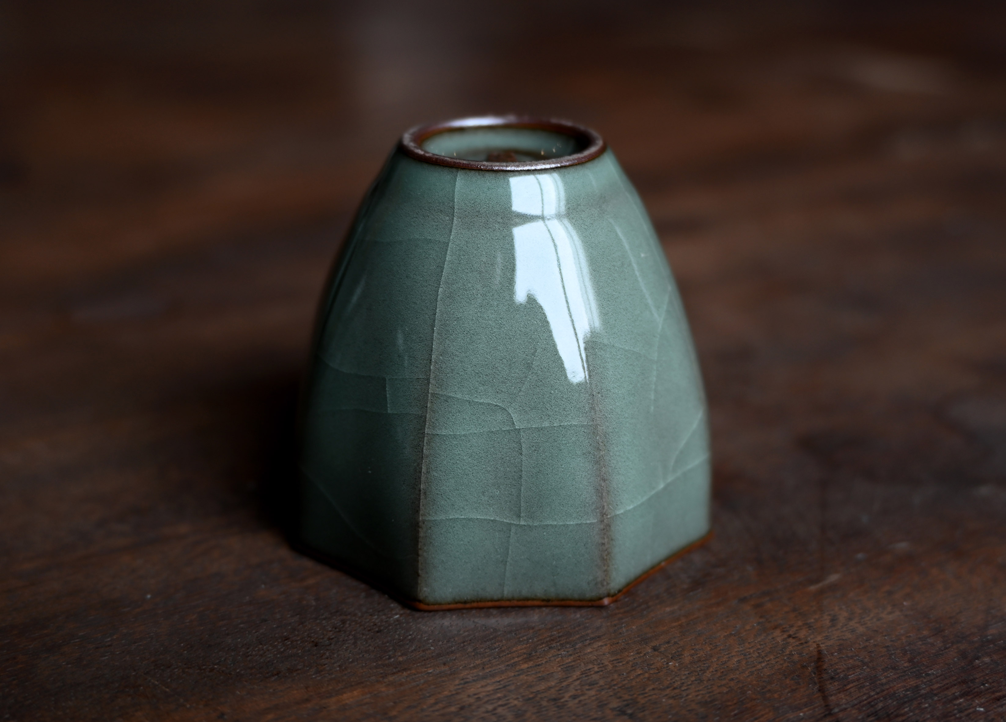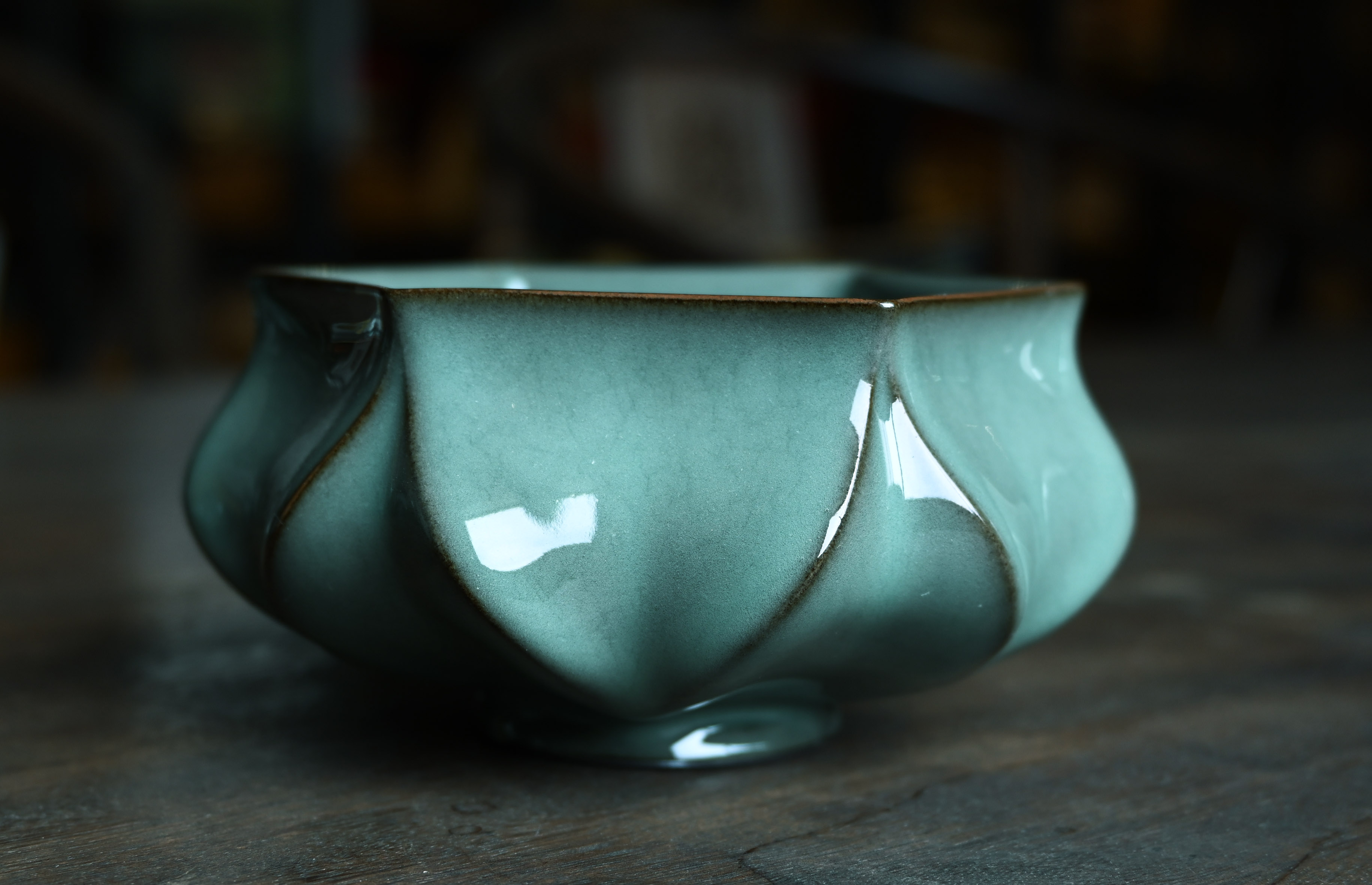 汤忠仁龙泉黑胎青瓷,方形造型特别,与众不同,不落俗套,让人耳目一新。