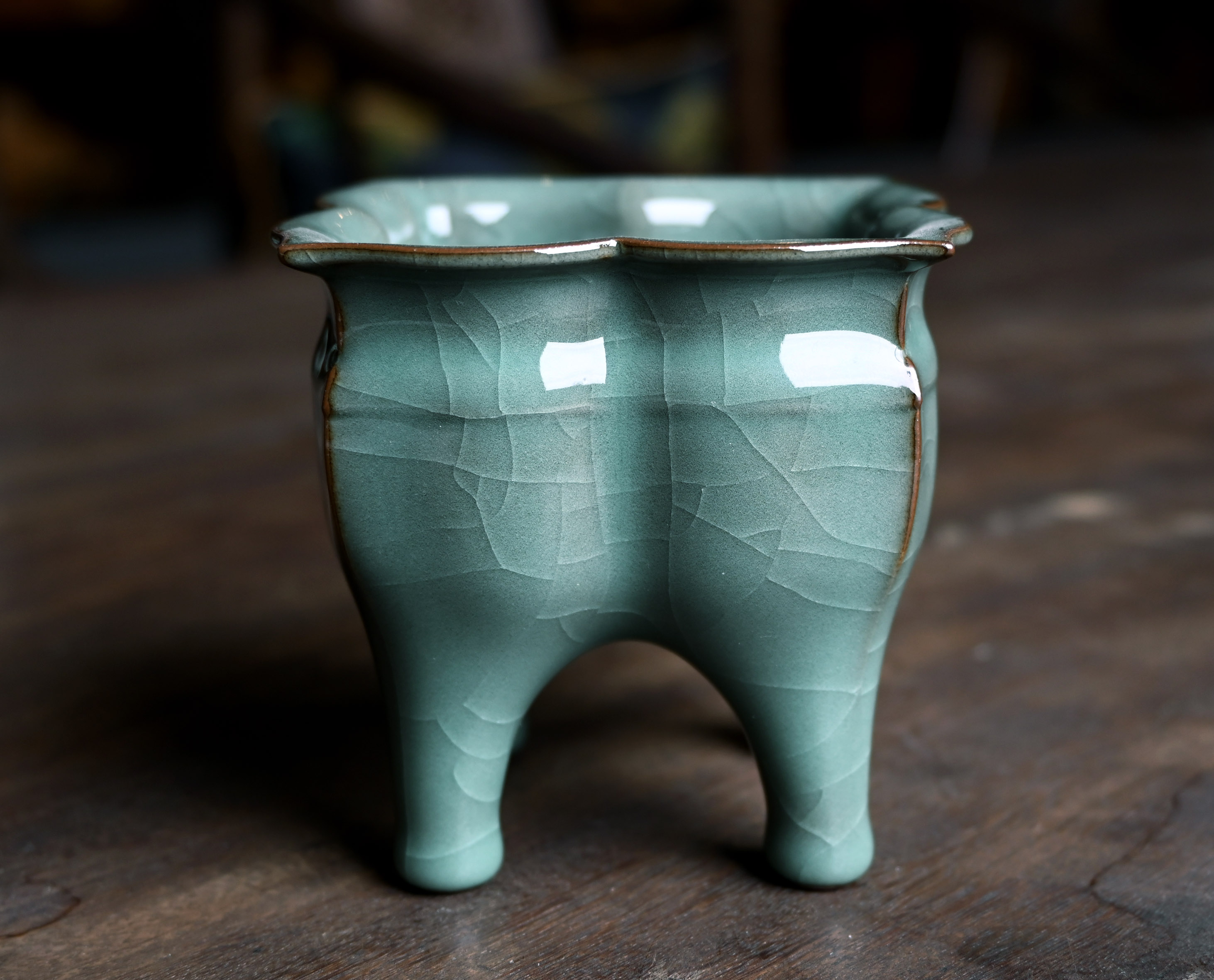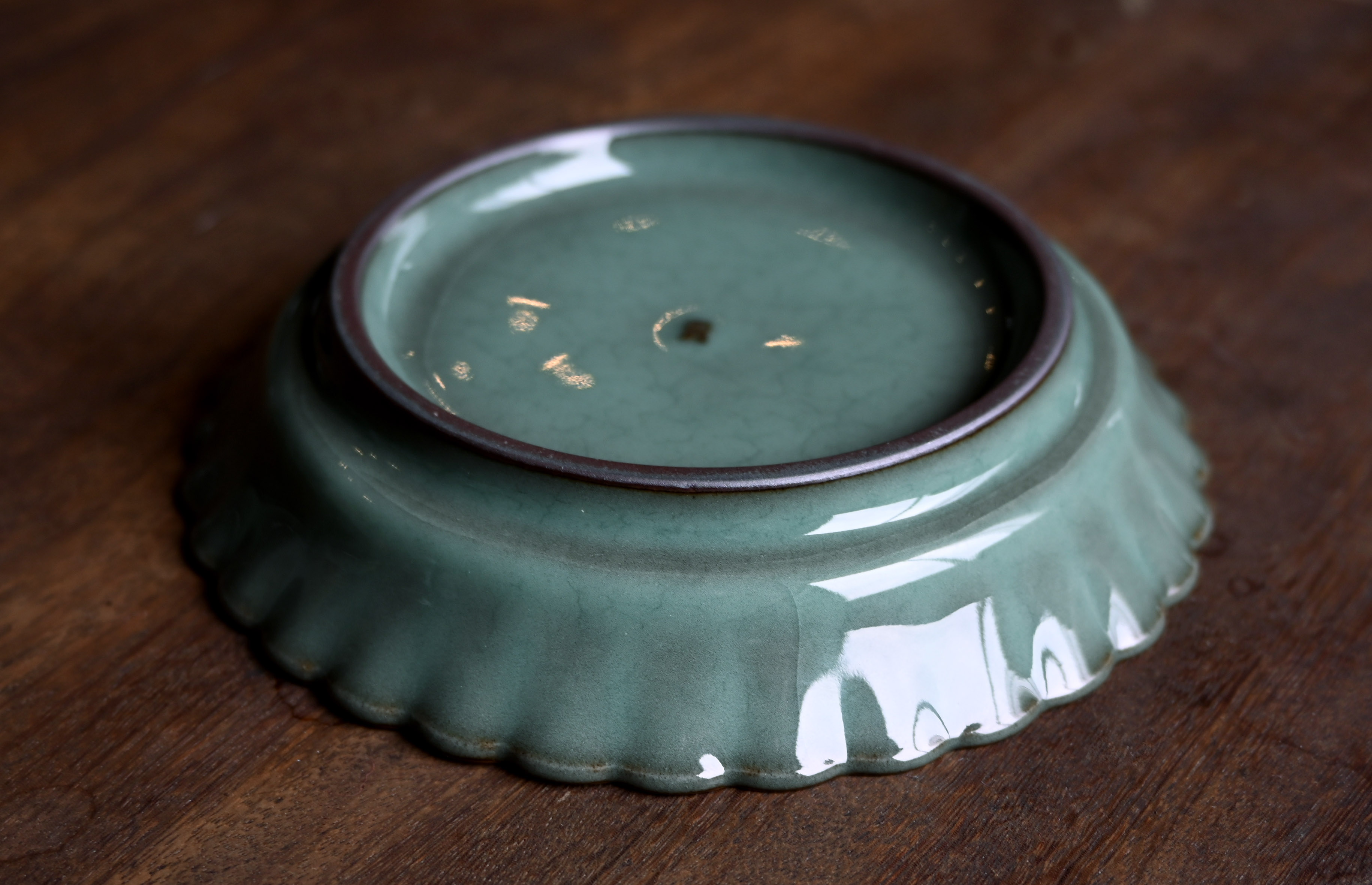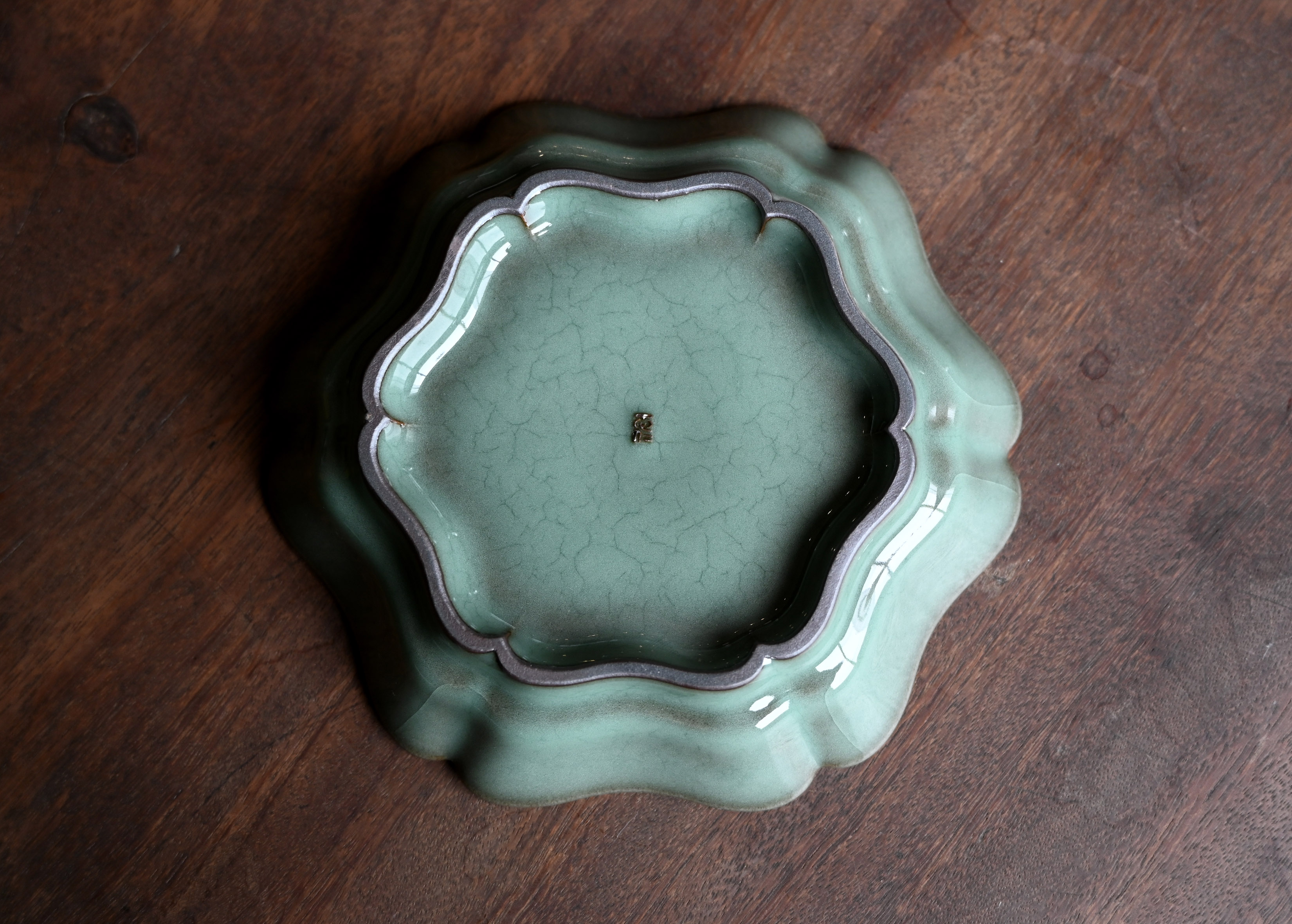 釉色温润如玉,似碧波大海般深邃,越看越深沉。开片优美,各种开片线条天然和谐。