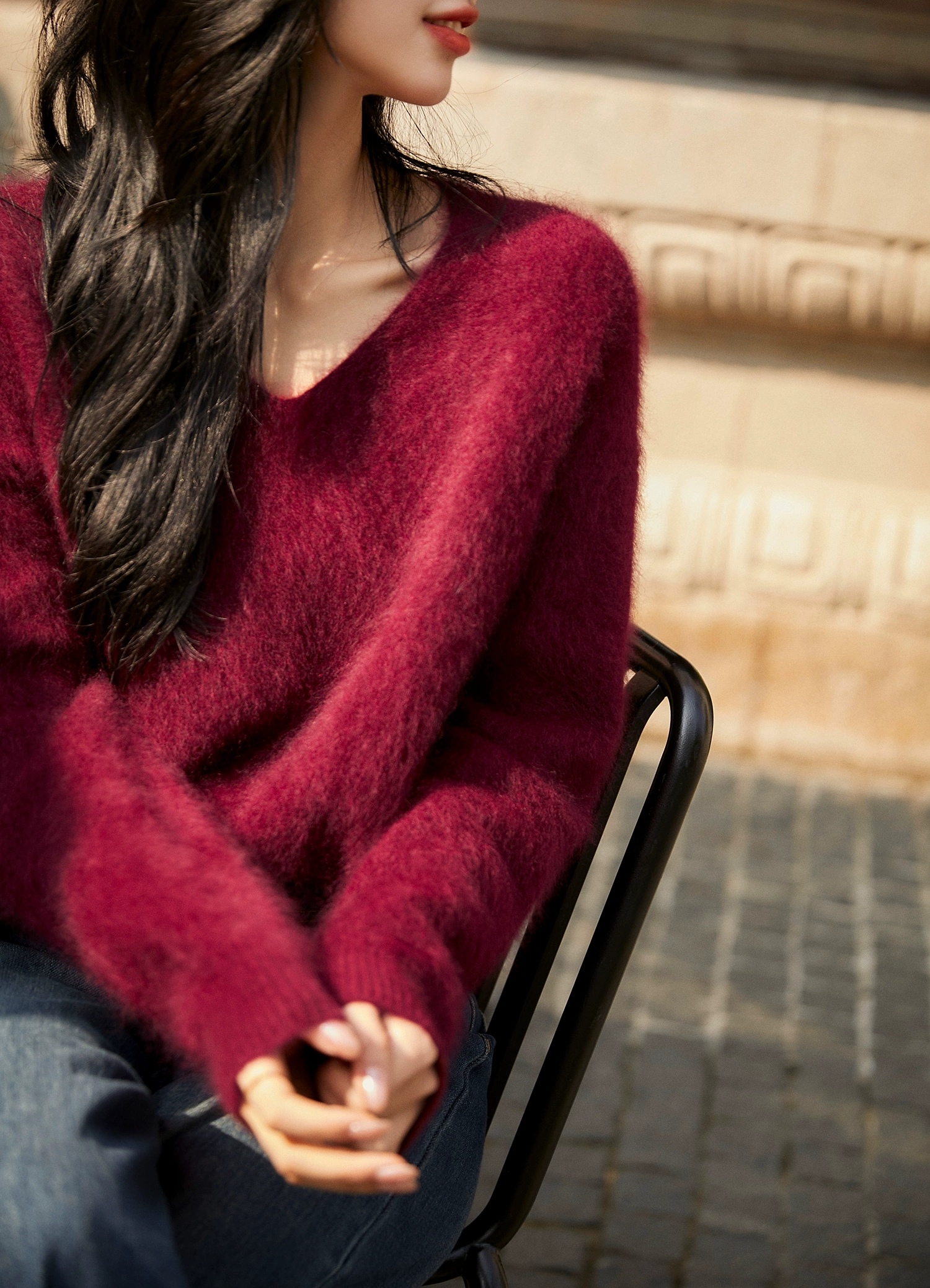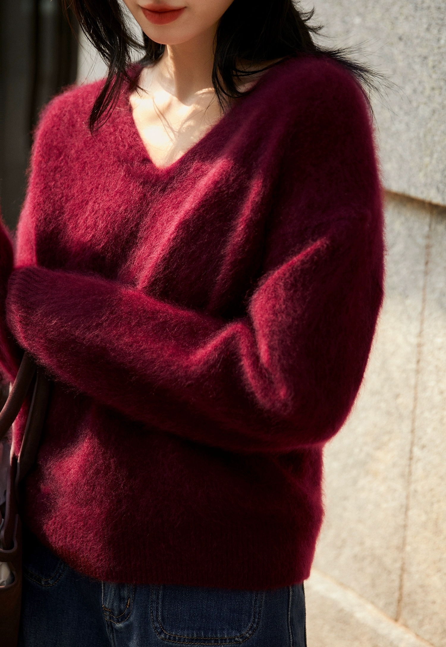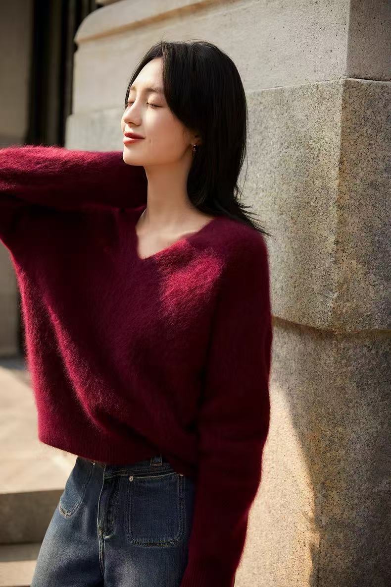 冷艳独特的安哥拉酒红,浓郁浪漫。不雅肤色,会反衬皮肤冷白皮。越穿越软,亲肤不扎。
