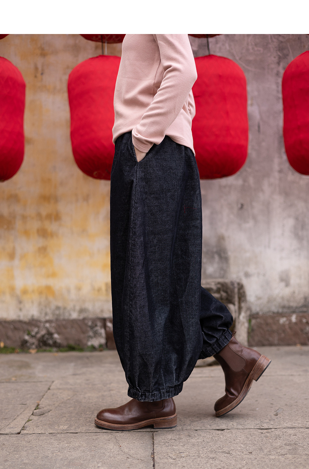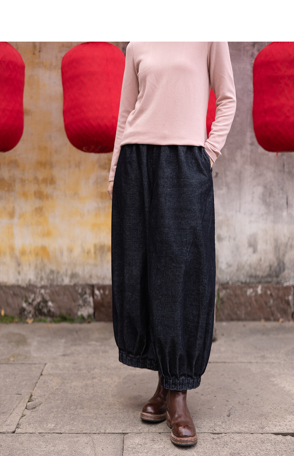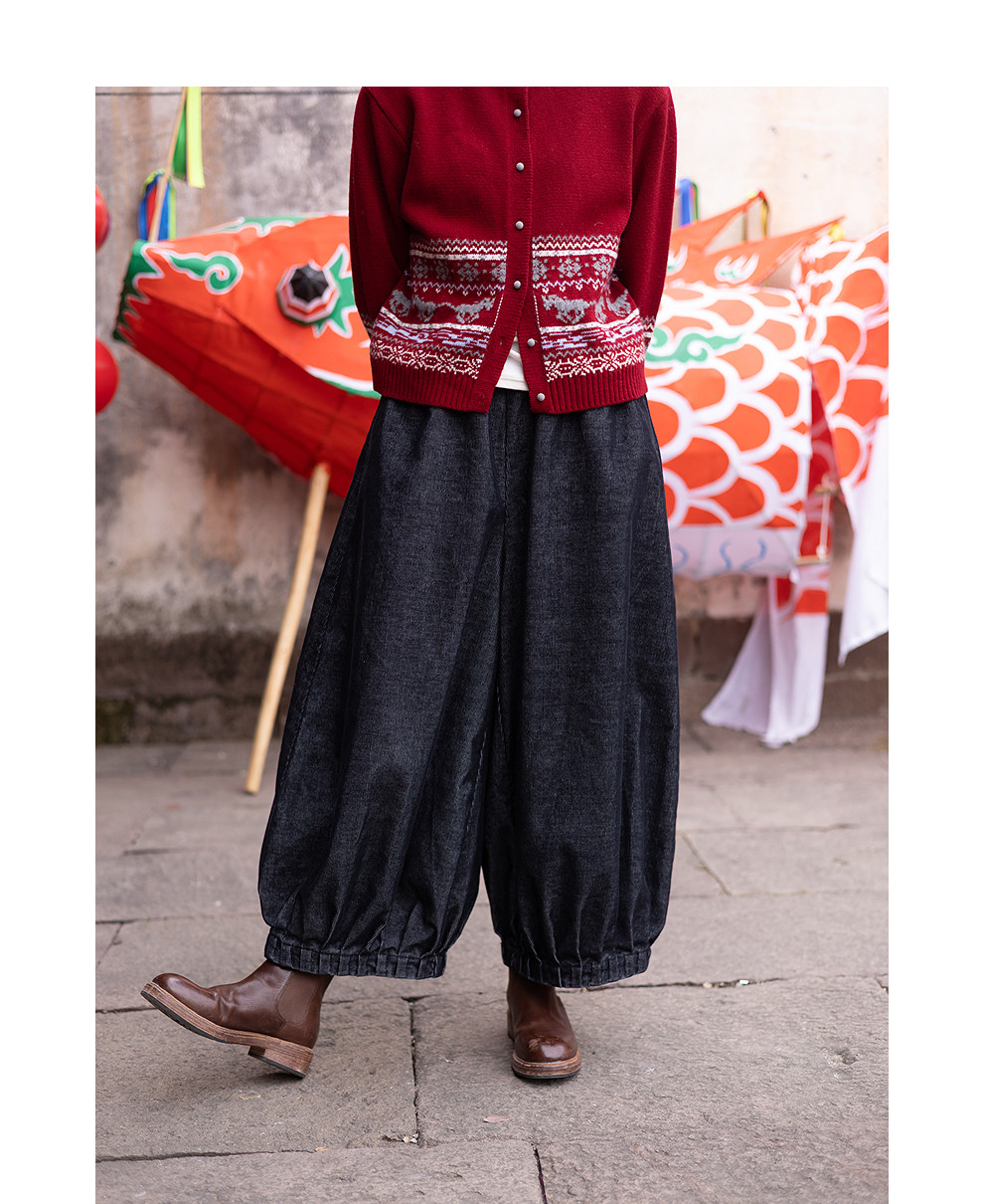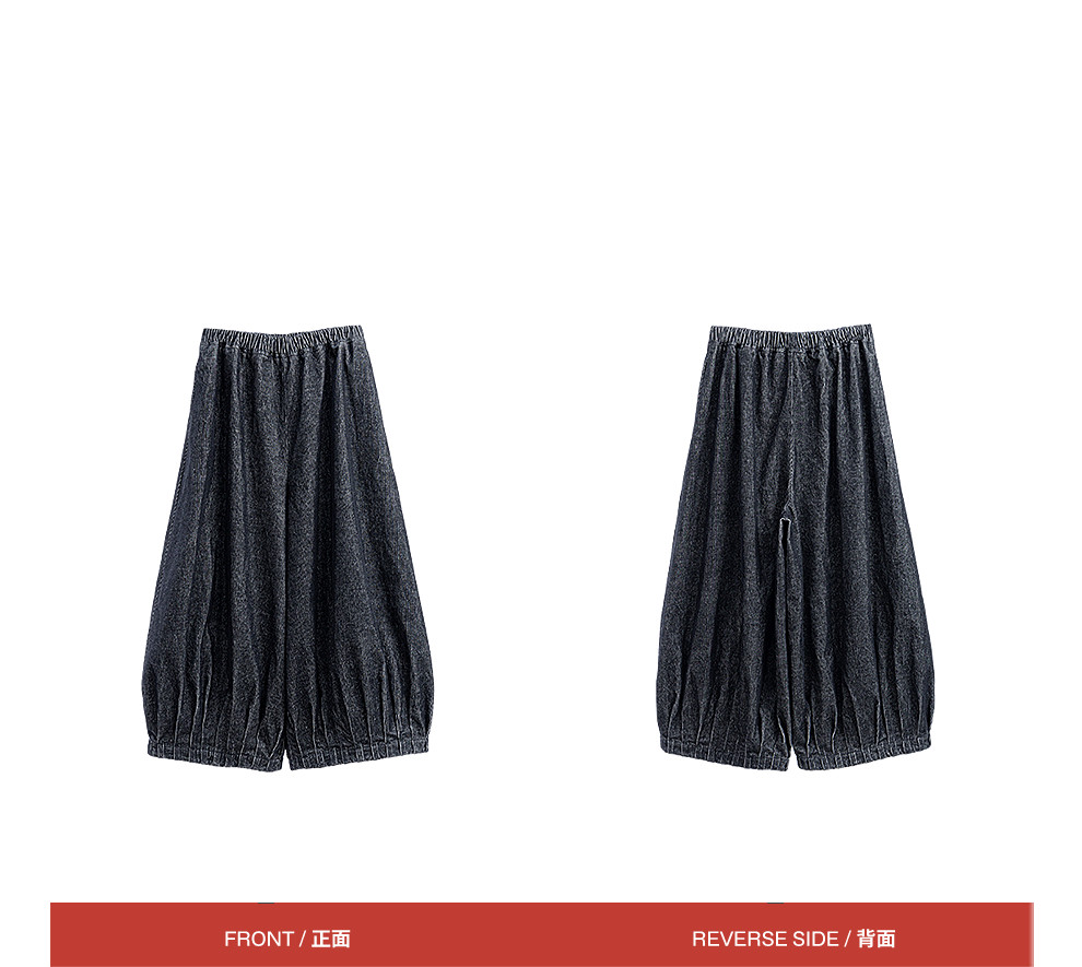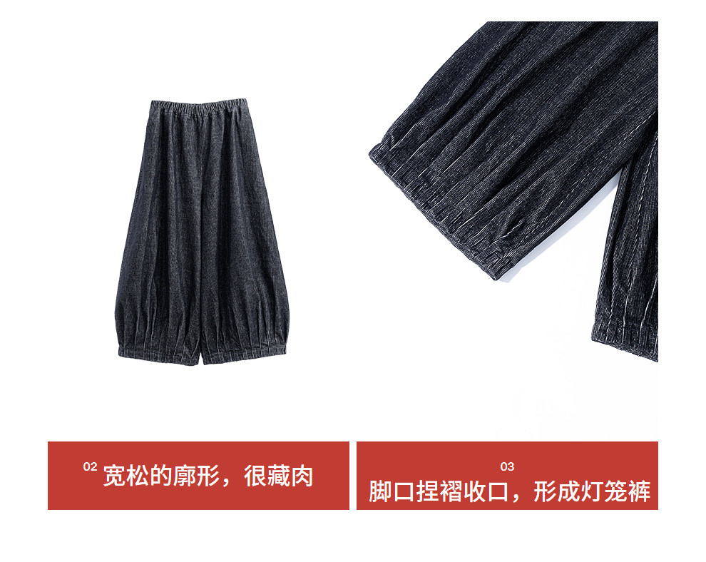 绽放042朵/牛仔灯芯绒全腰松紧脚口捏褶收口阔腿裤新款百搭休闲裤