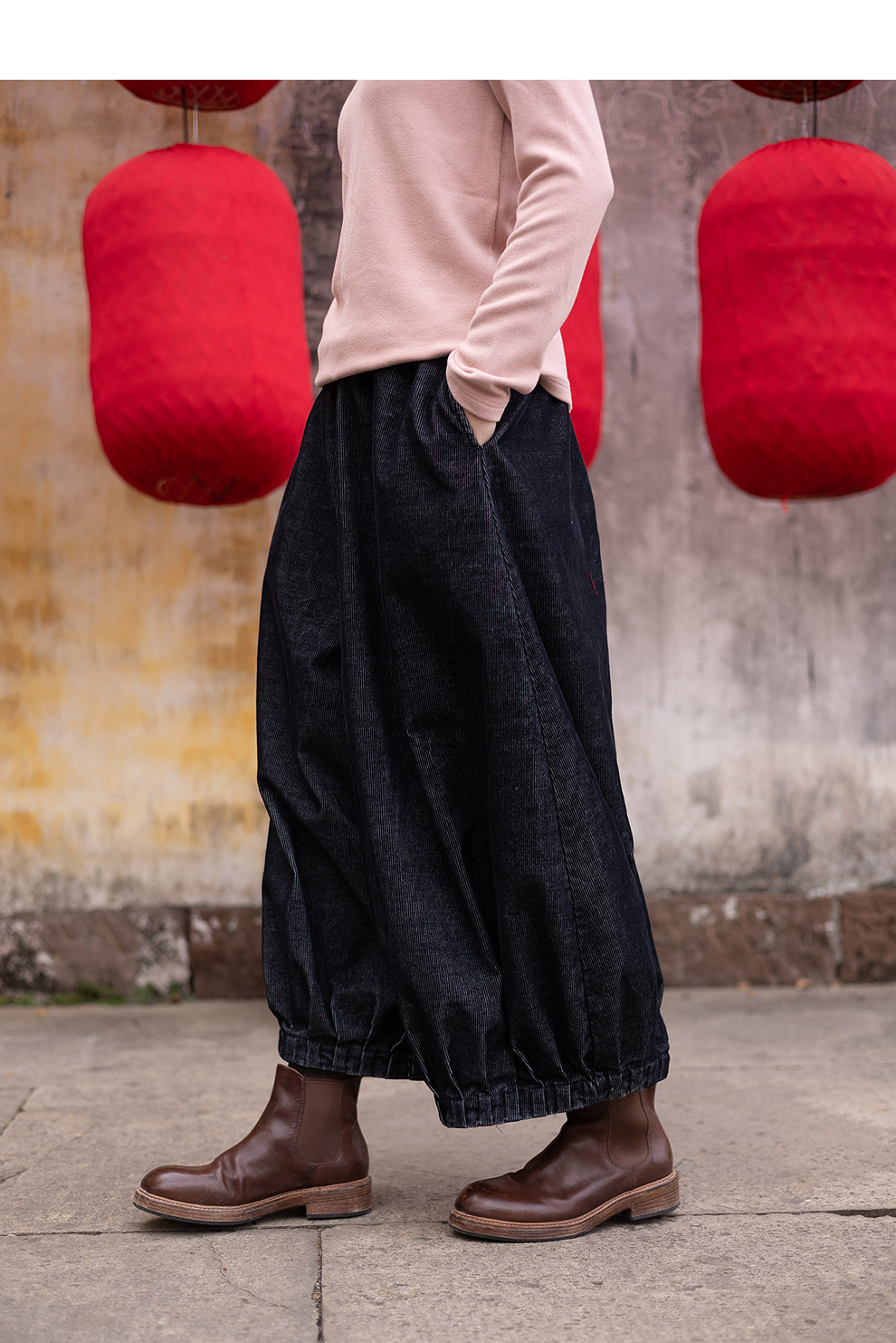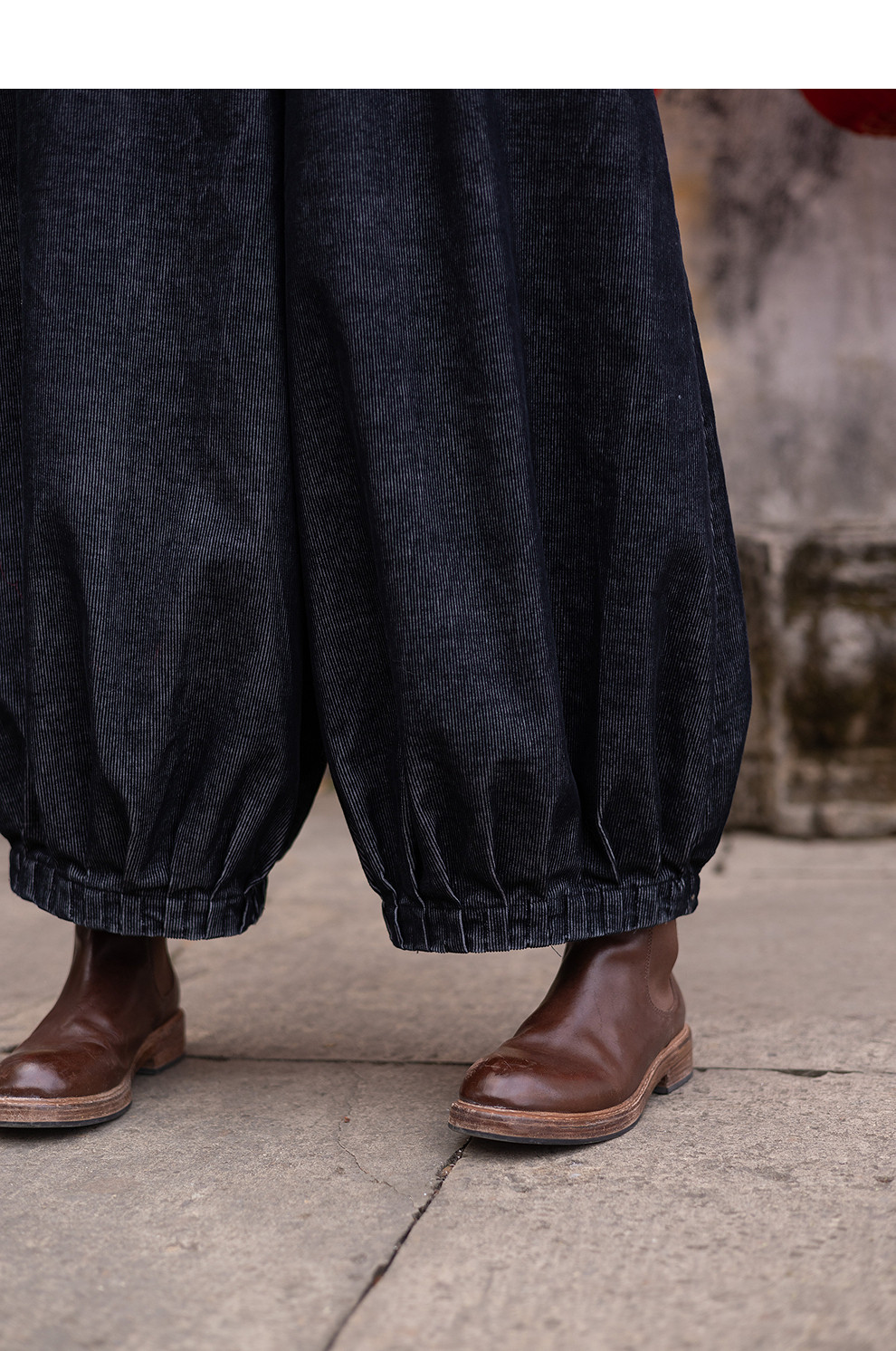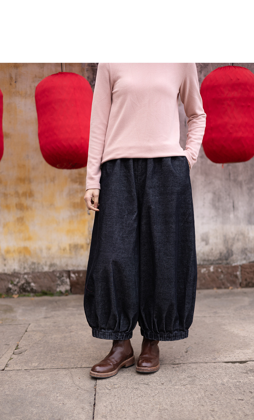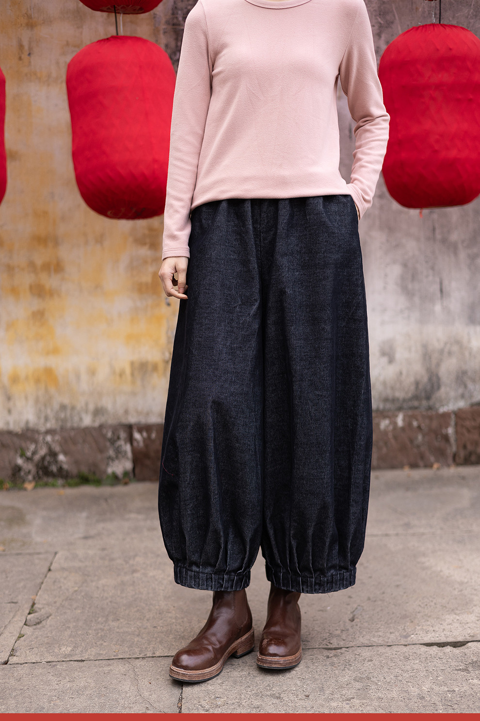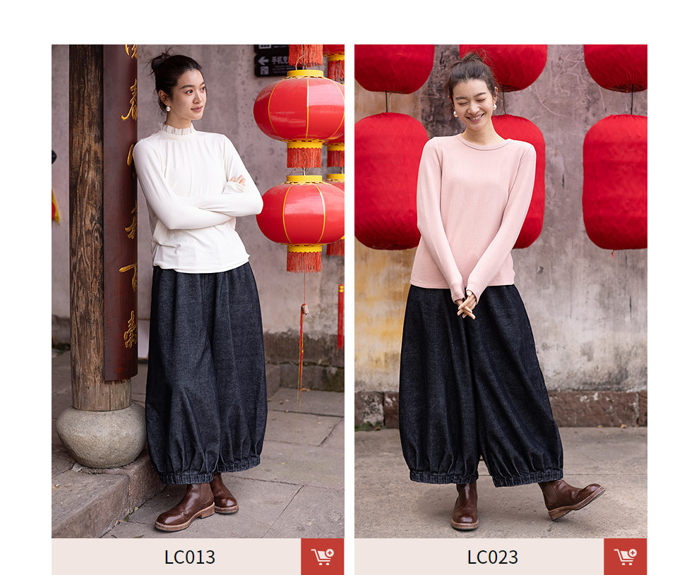 绽放042朵/牛仔灯芯绒全腰松紧脚口捏褶收口阔腿裤新款百搭休闲裤