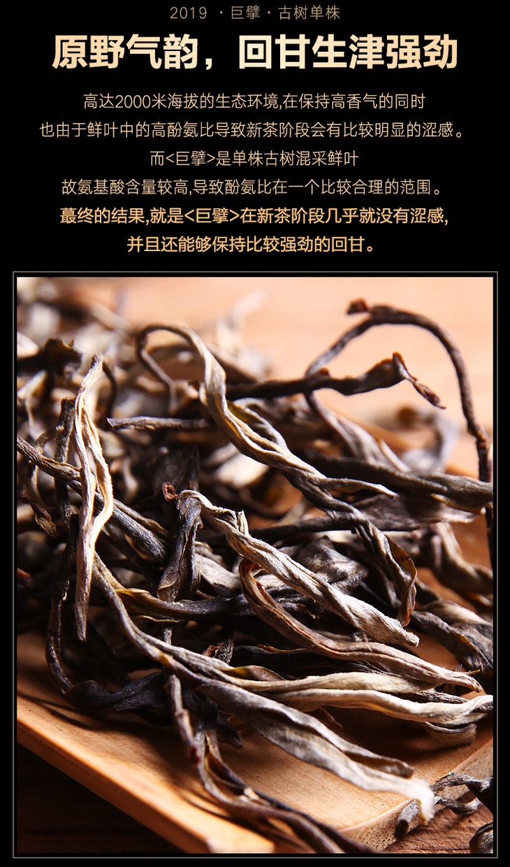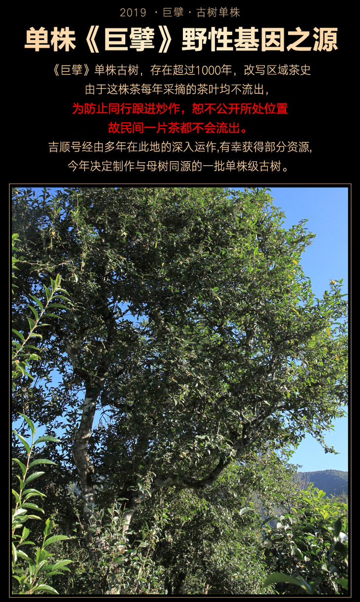 吉顺号2019头春茶单株古树《巨擘》古树普洱生茶200g