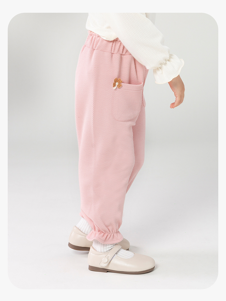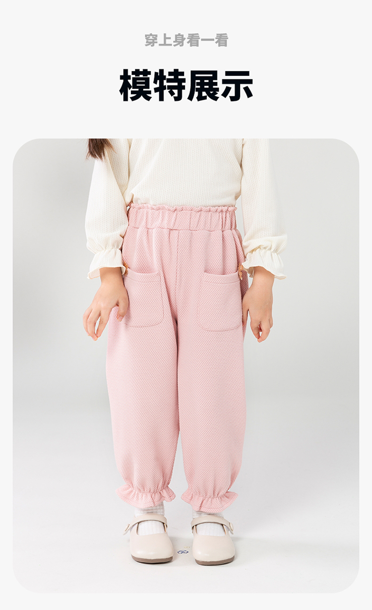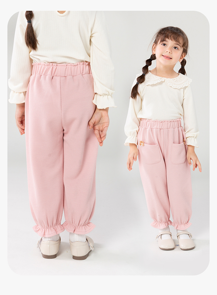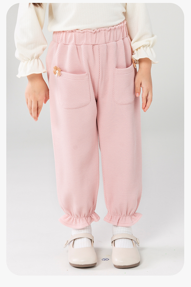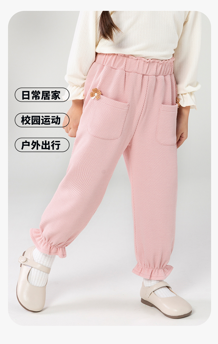 2024春秋新款女童束脚长裤中小童时尚华夫格休闲裤舒适透气裤ZB1DK028