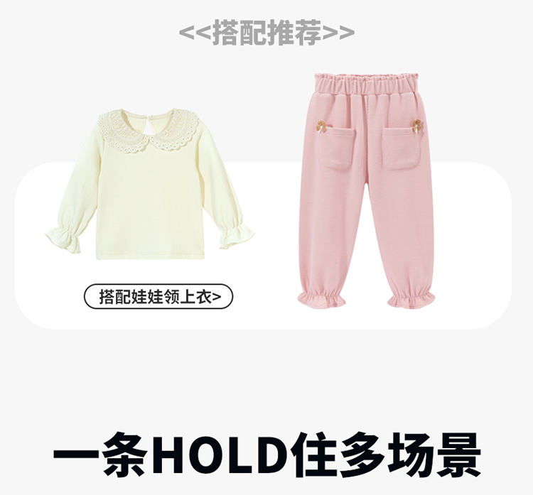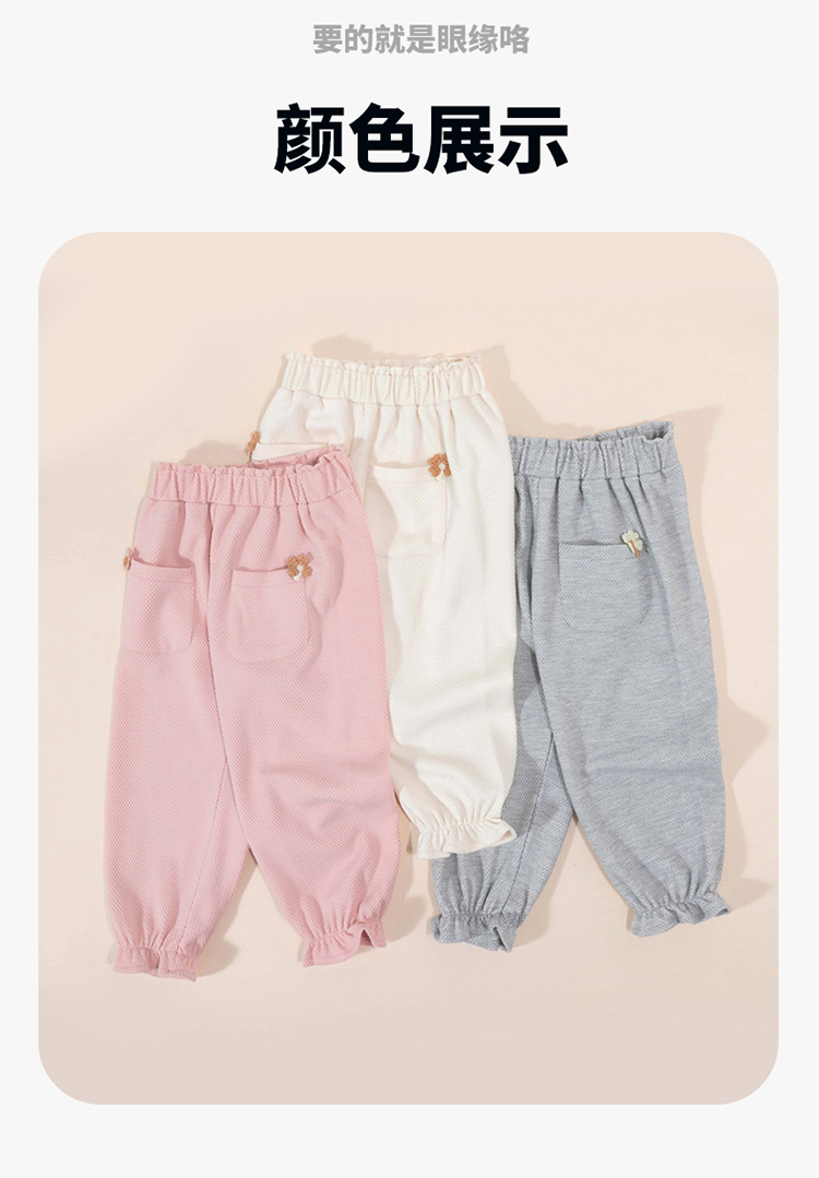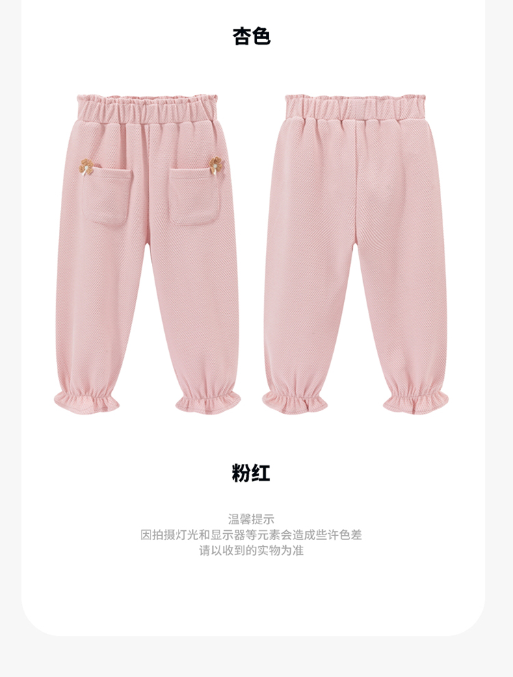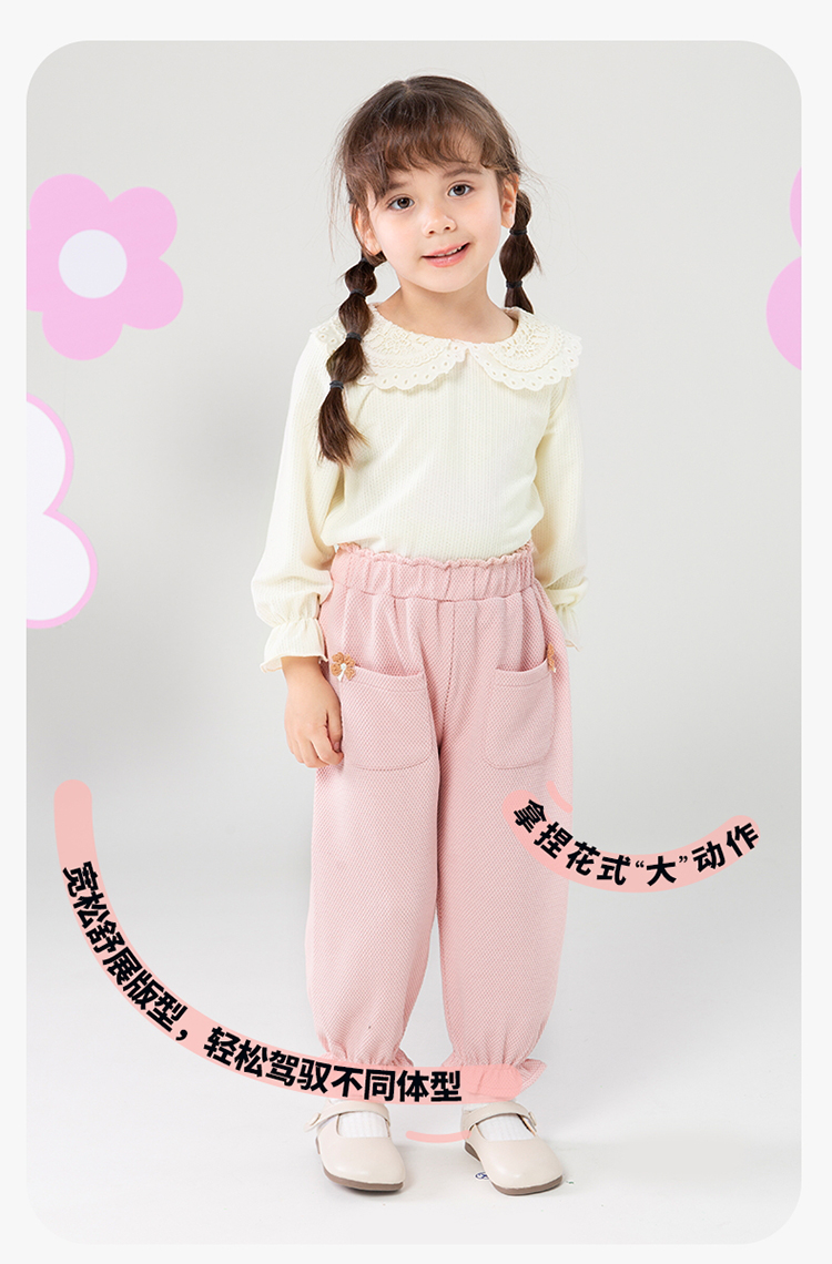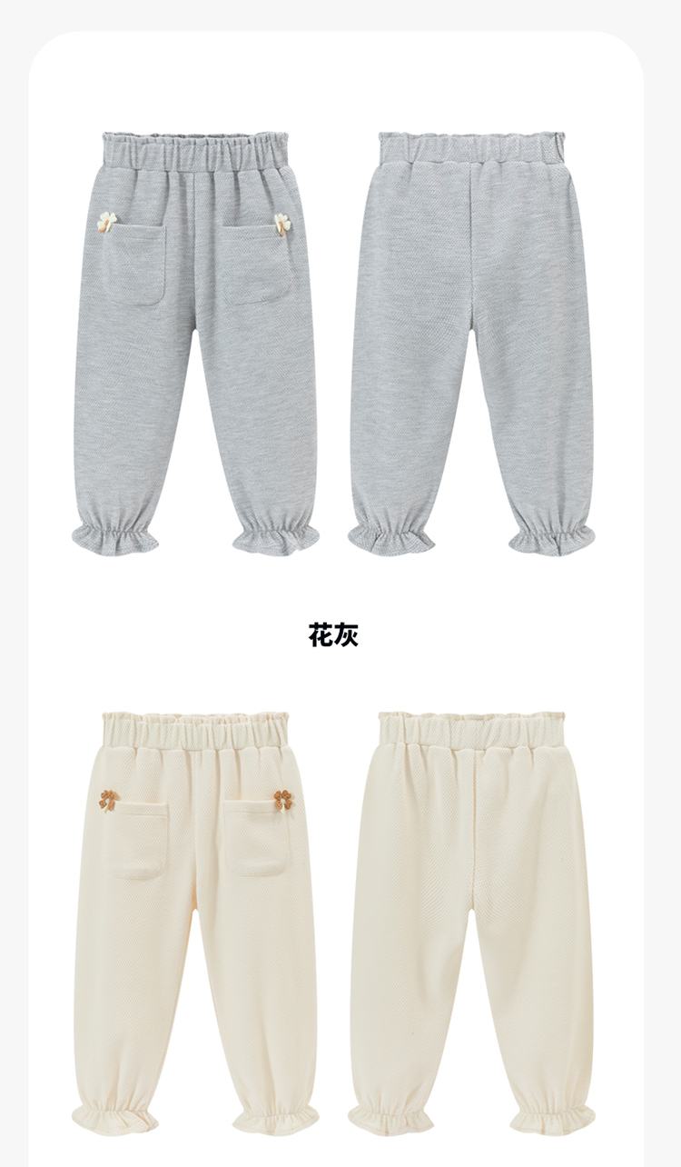 2024春秋新款女童束脚长裤中小童时尚华夫格休闲裤舒适透气裤ZB1DK028