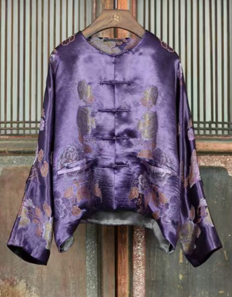 盛唐牡丹盛奢系列 | 民国真丝老面料对襟外套-紫色
