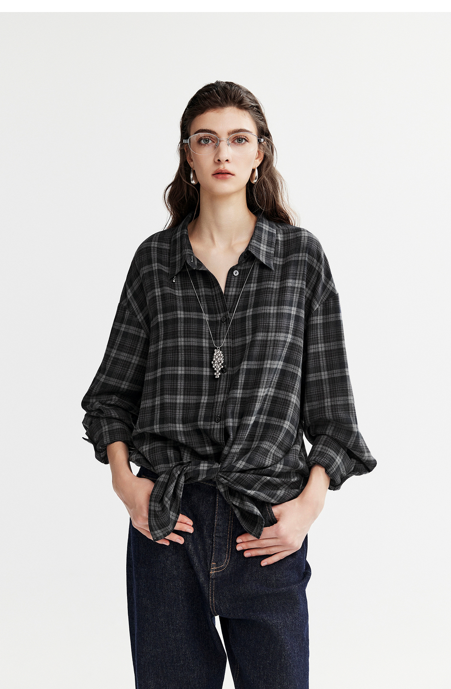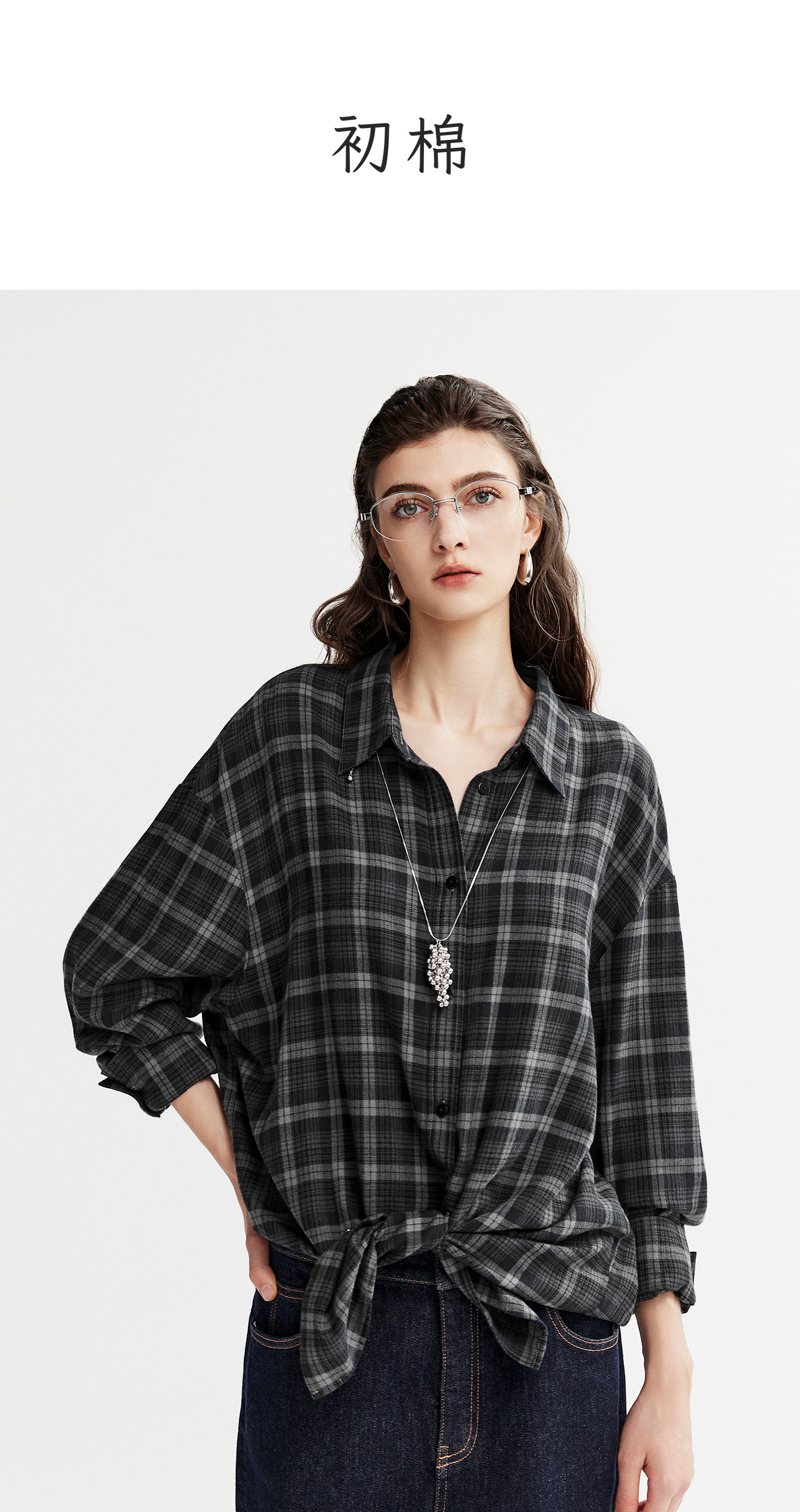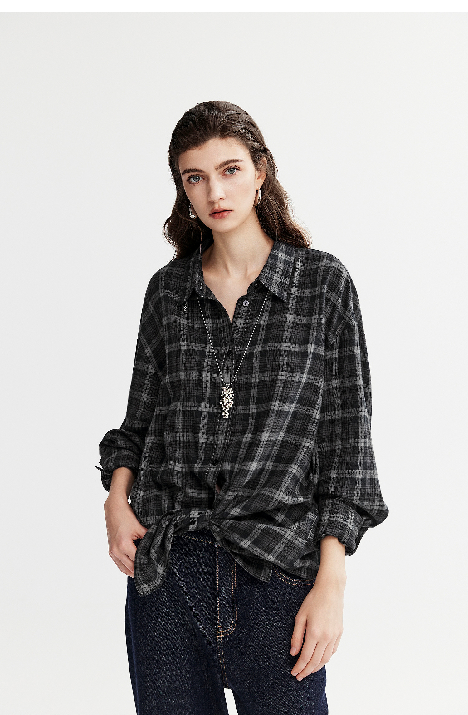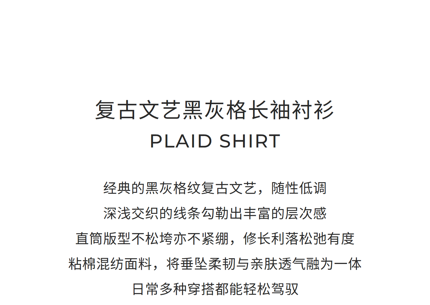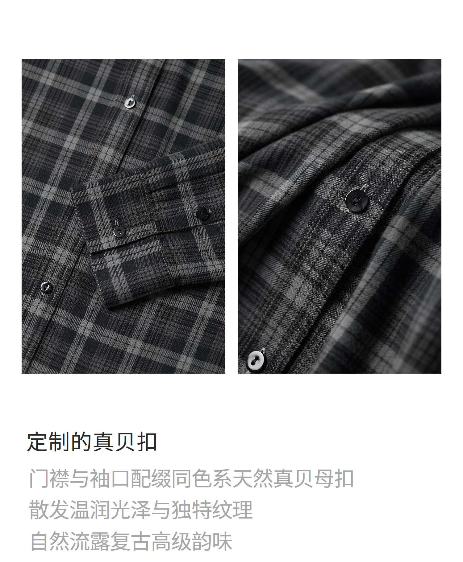 棉仓366604022-复古文艺黑灰格长袖衬衫