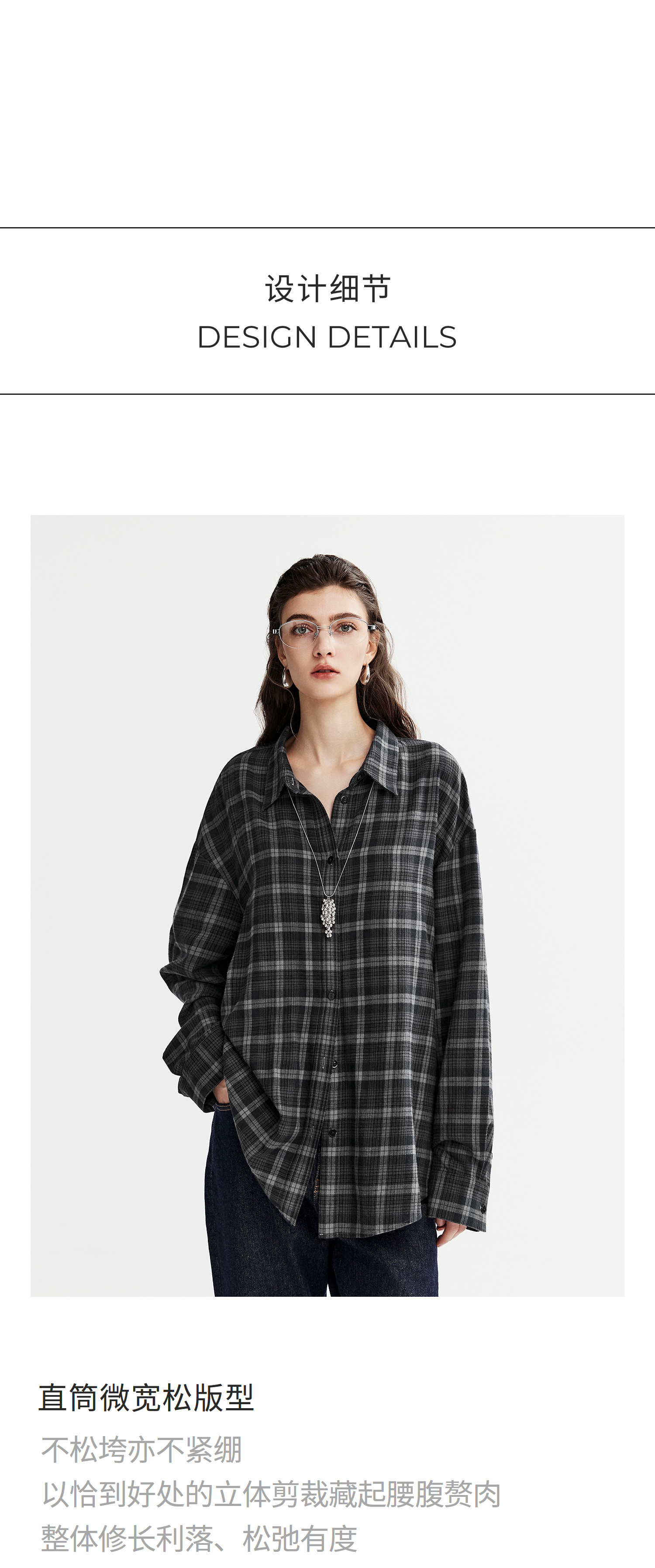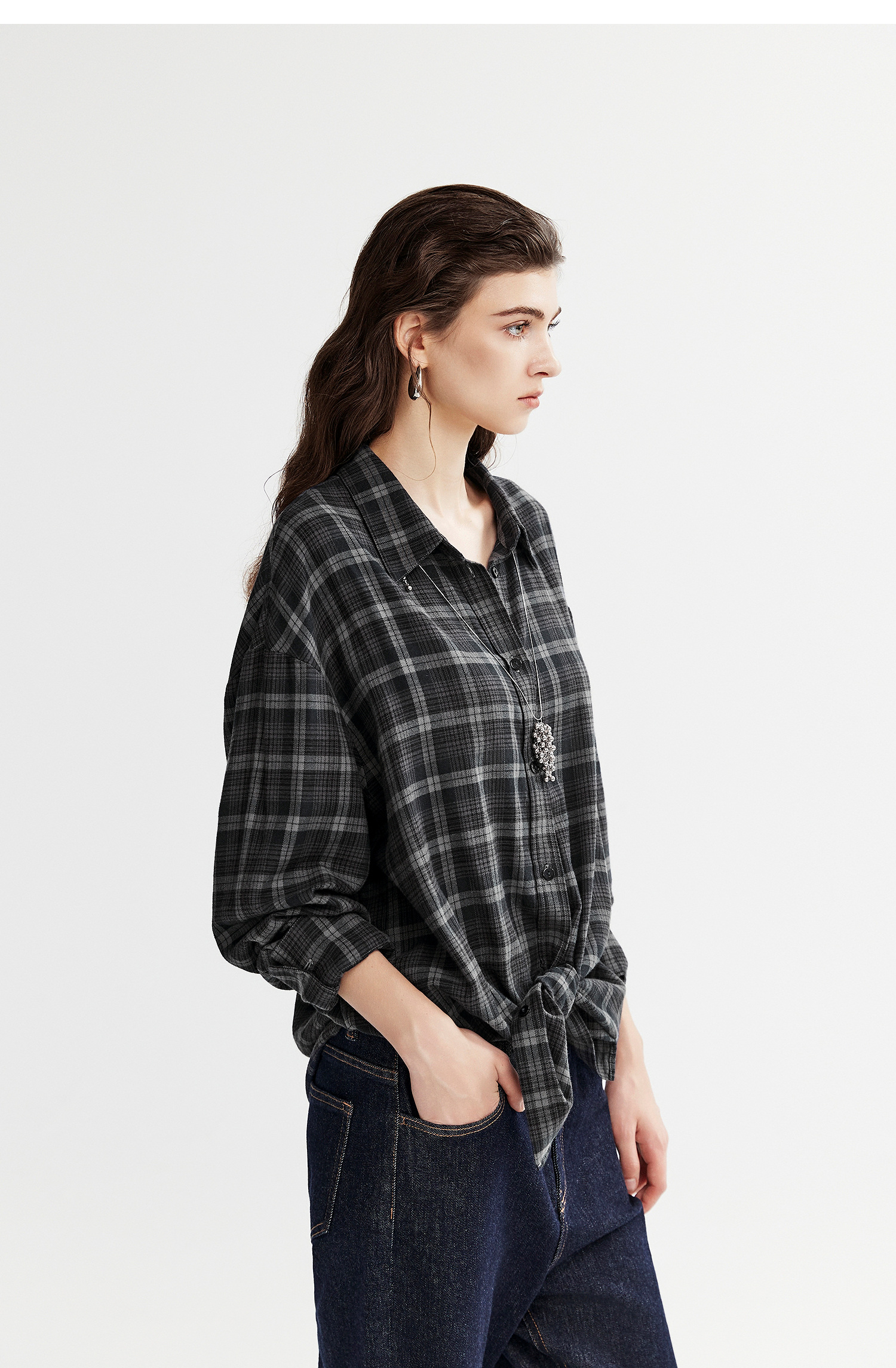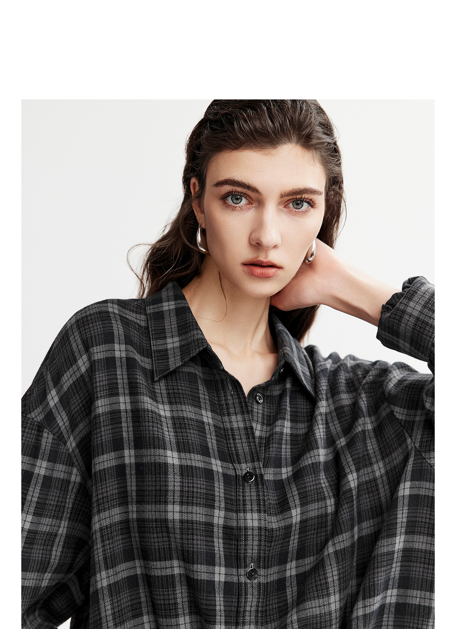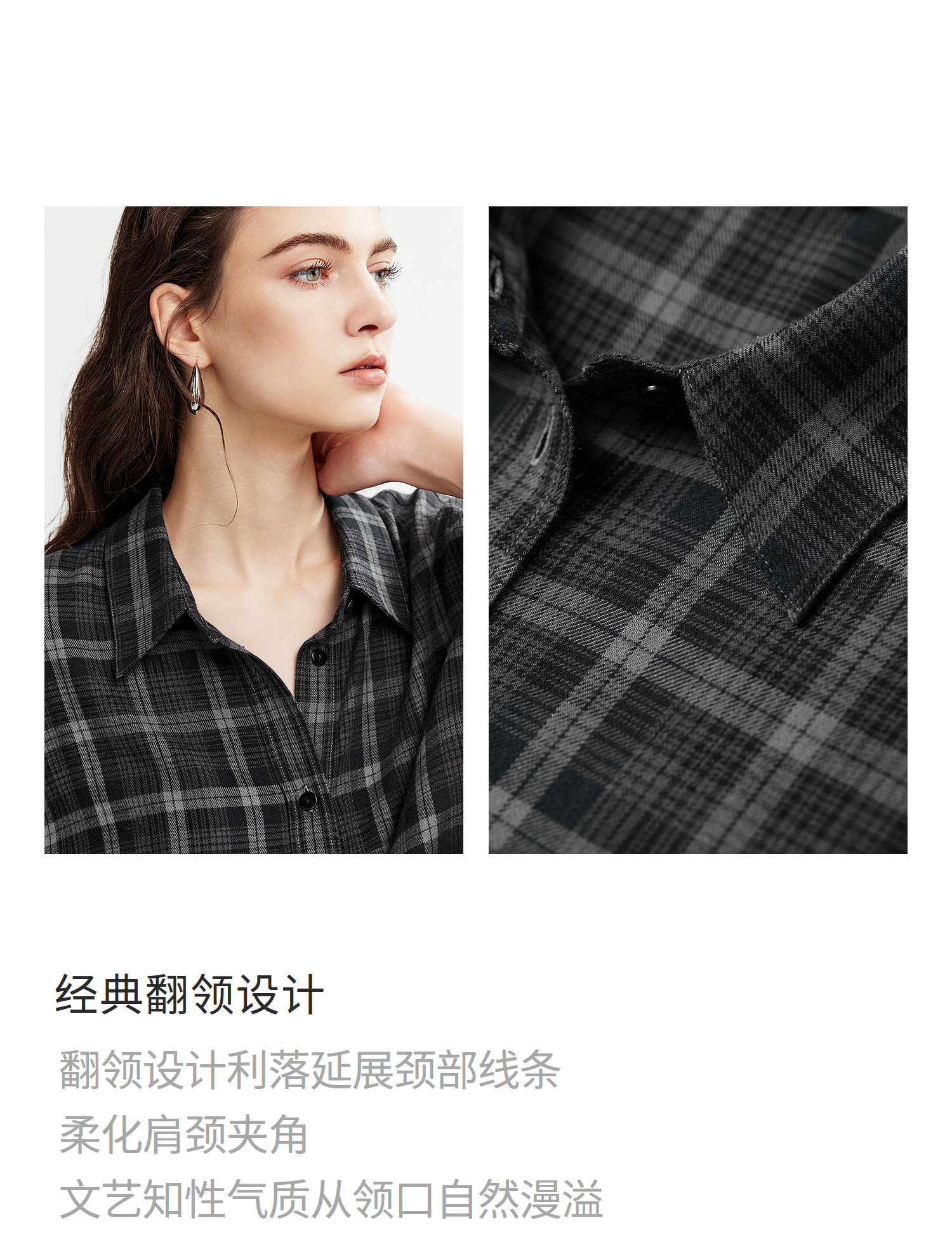 棉仓366604022-复古文艺黑灰格长袖衬衫