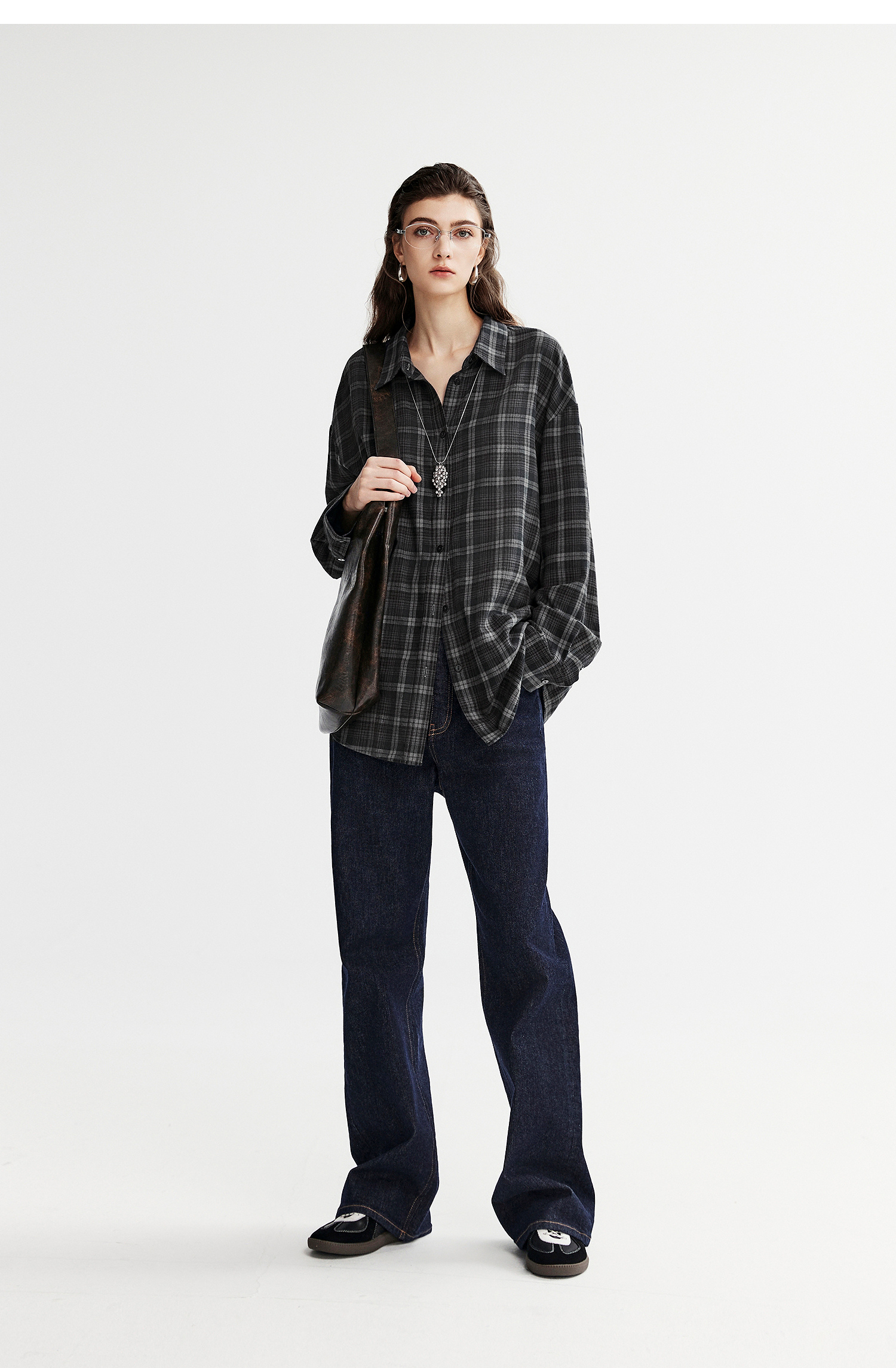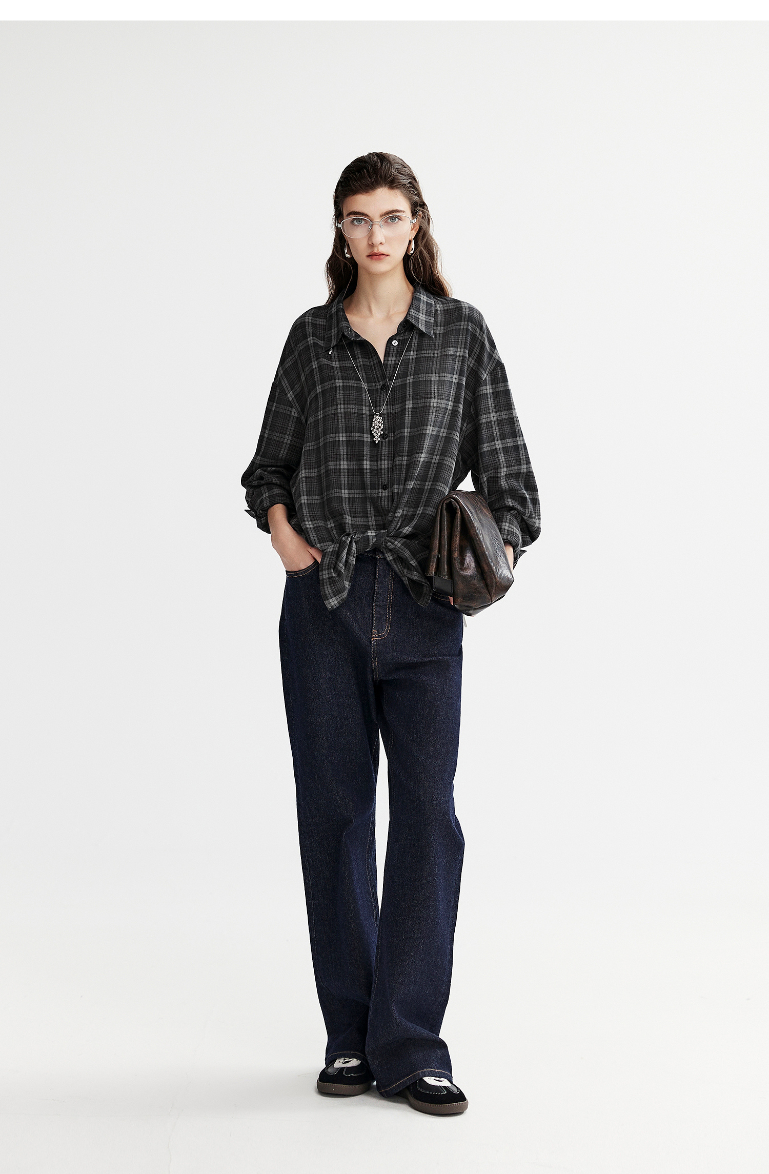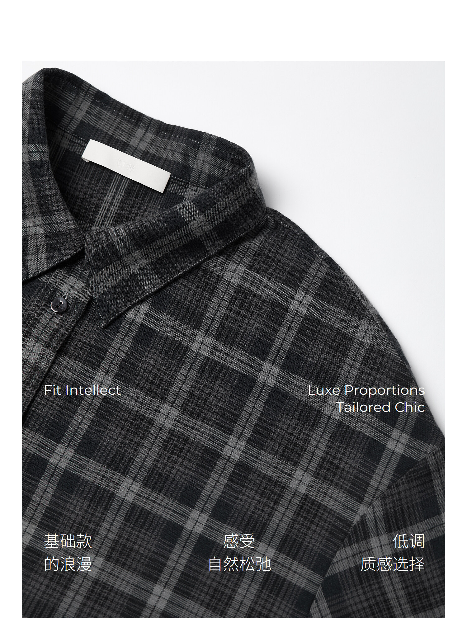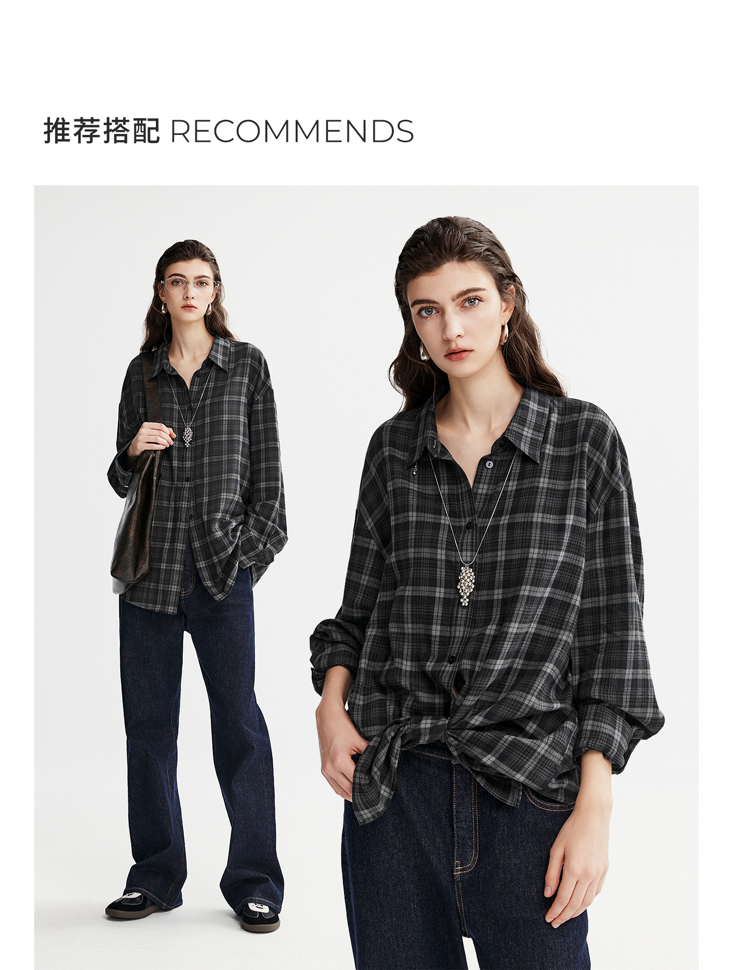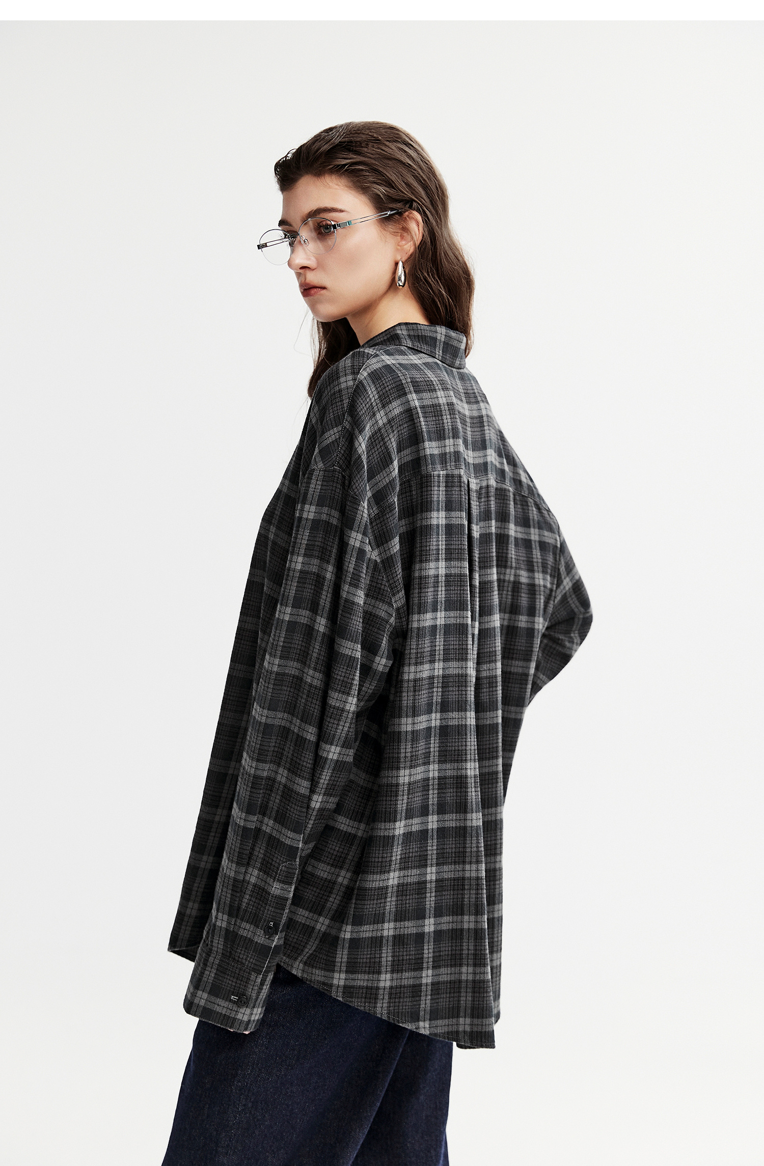 棉仓366604022-复古文艺黑灰格长袖衬衫