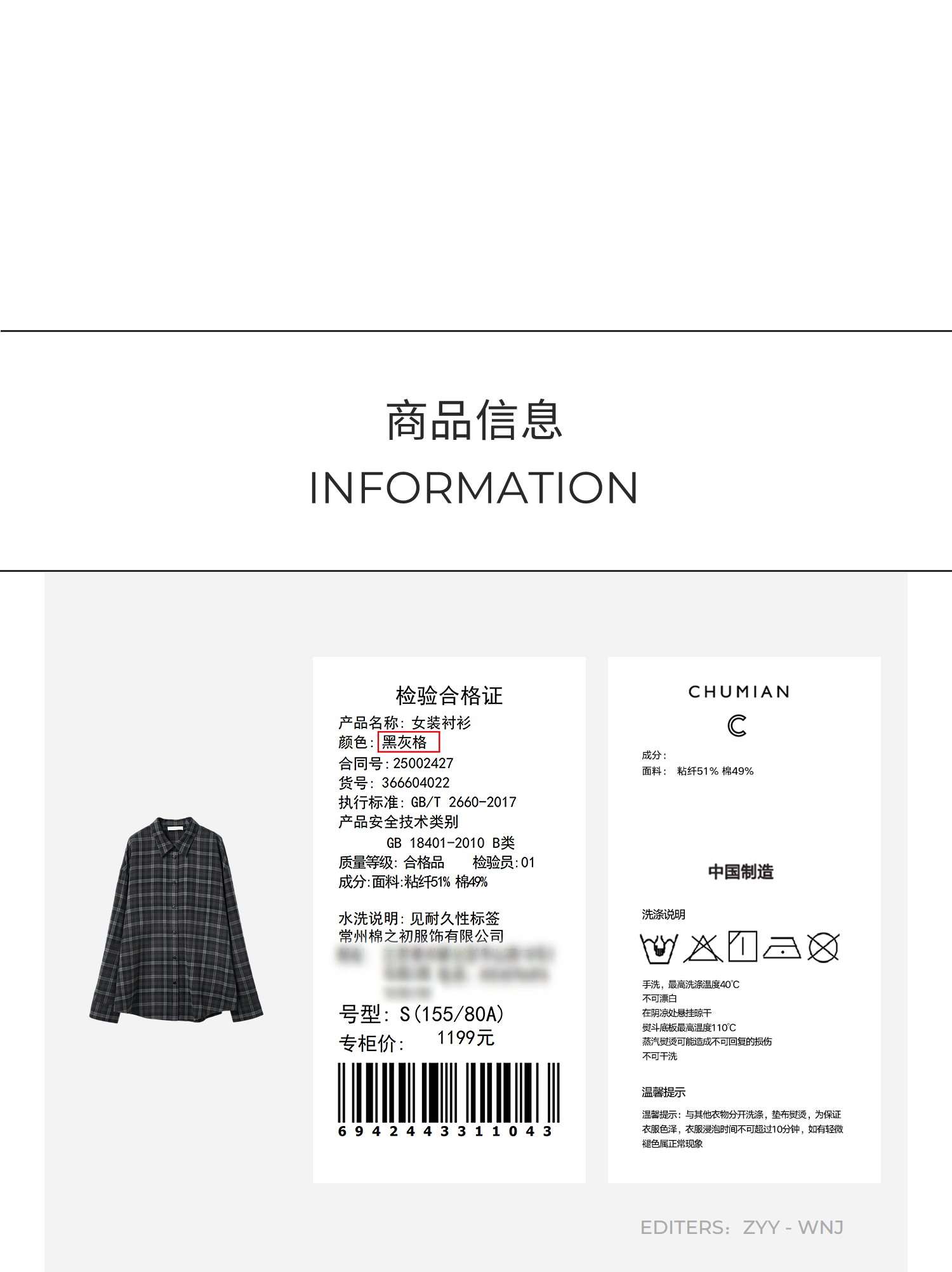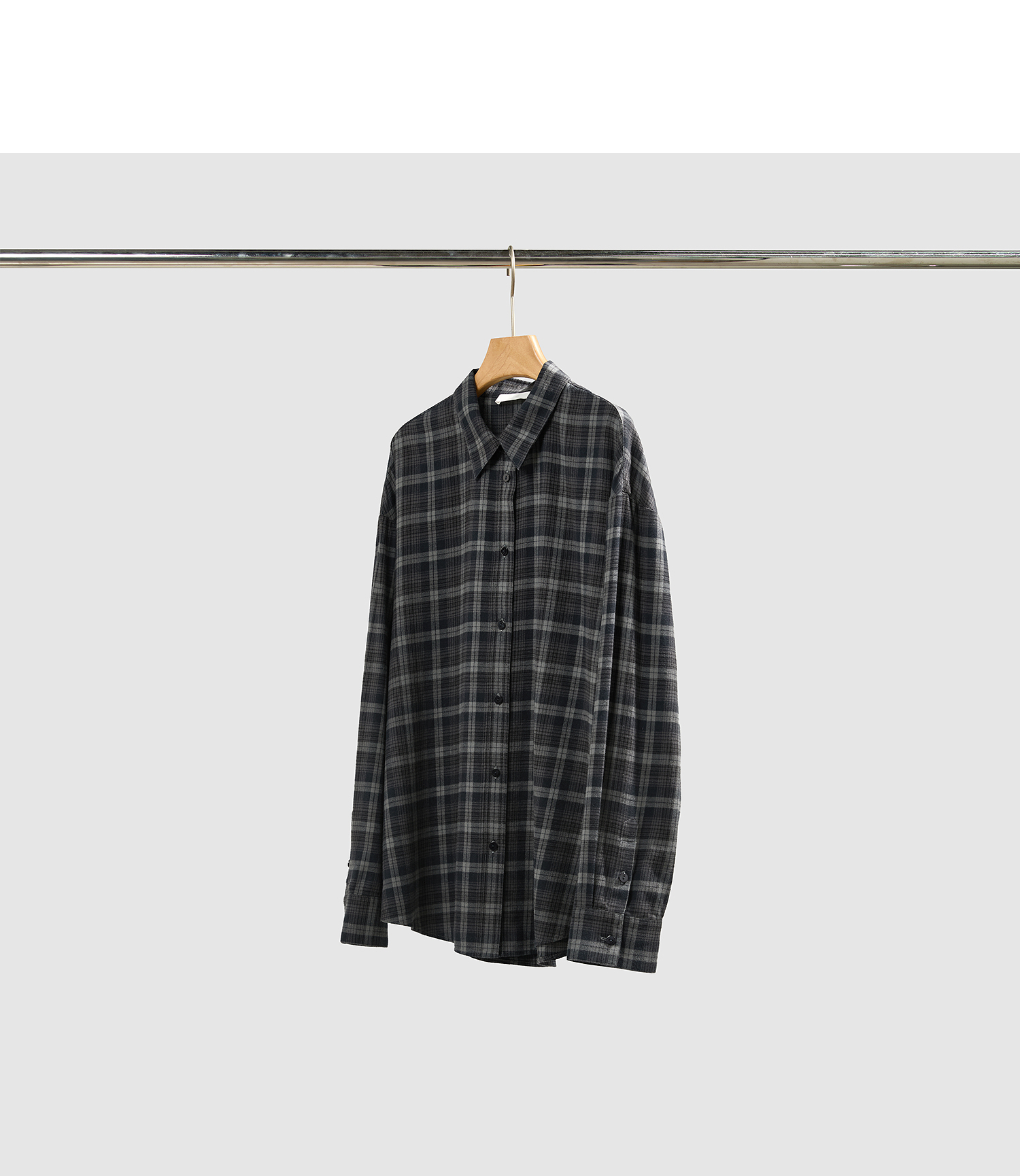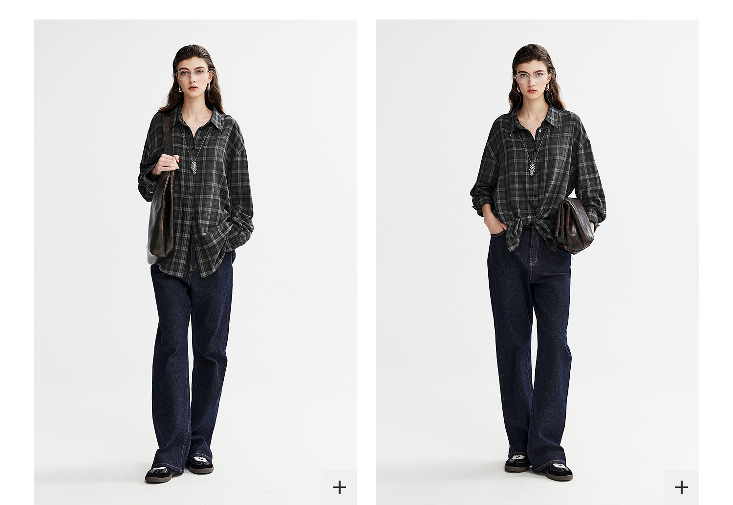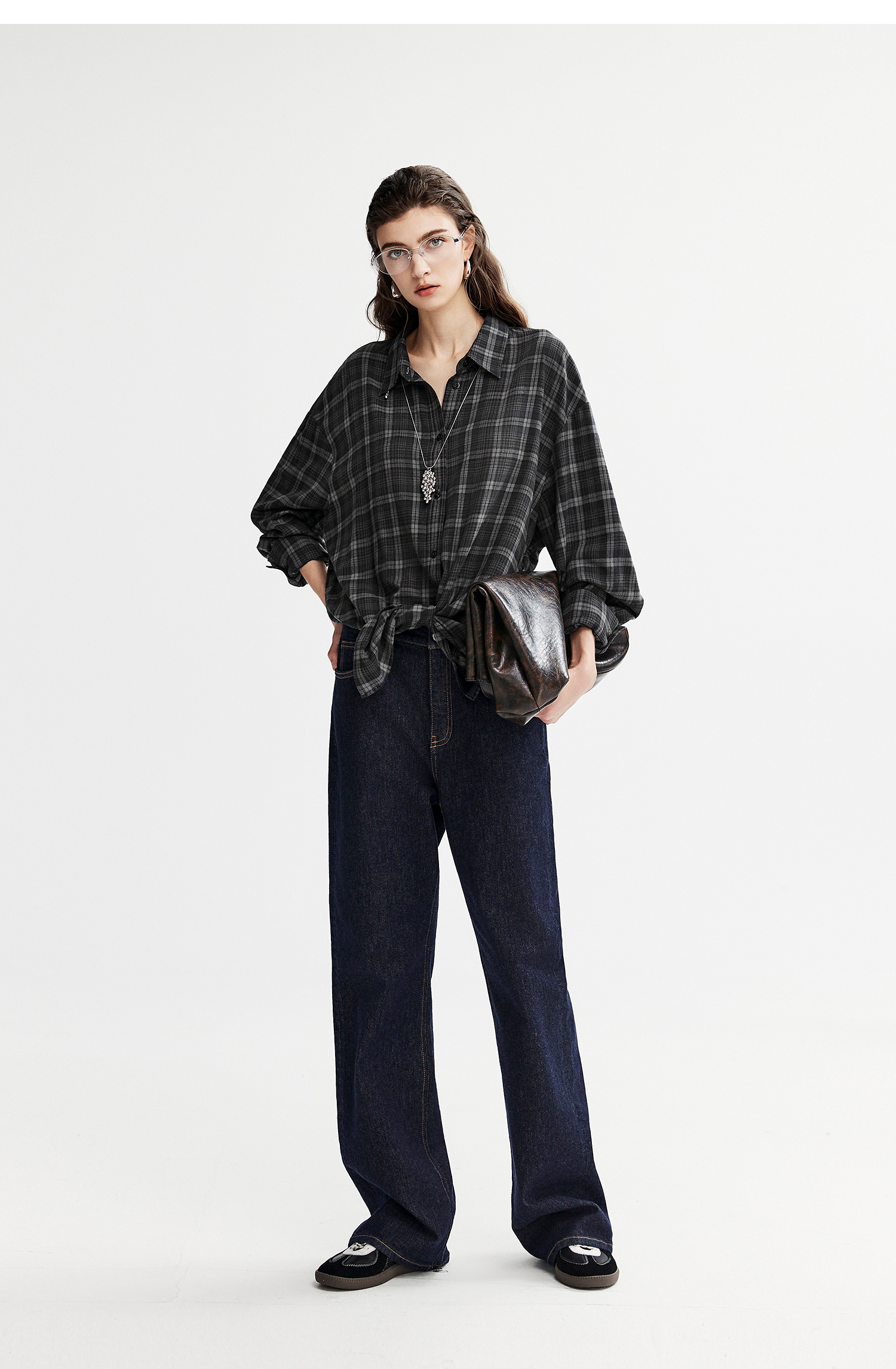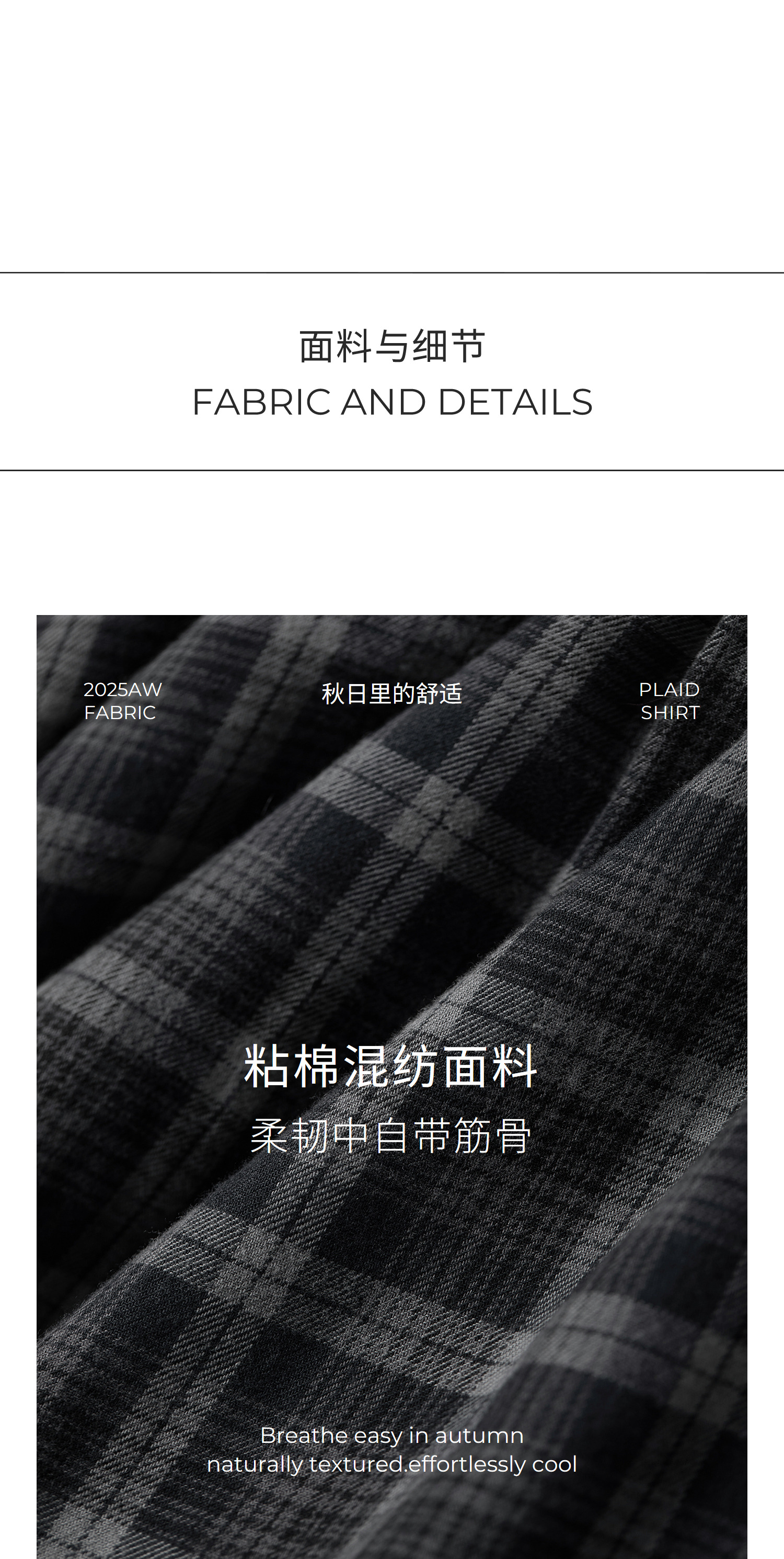 棉仓366604022-复古文艺黑灰格长袖衬衫