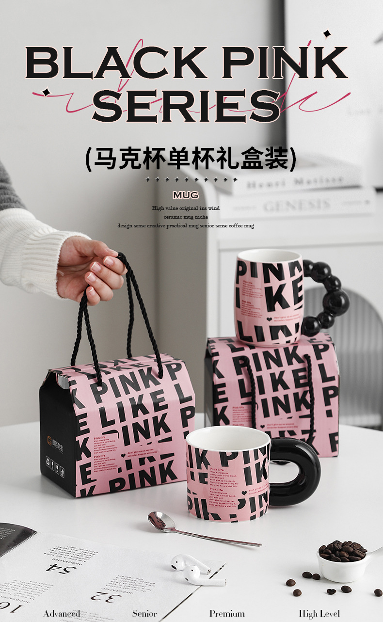 【BlackPink马克杯】好看家用精致漂亮陶瓷杯子ins风黑色