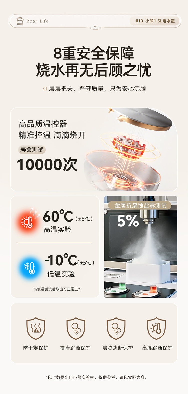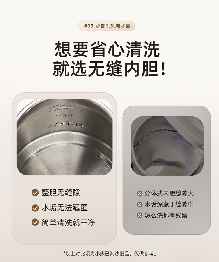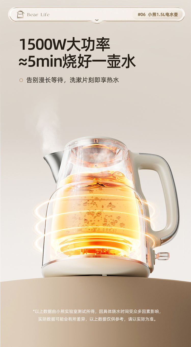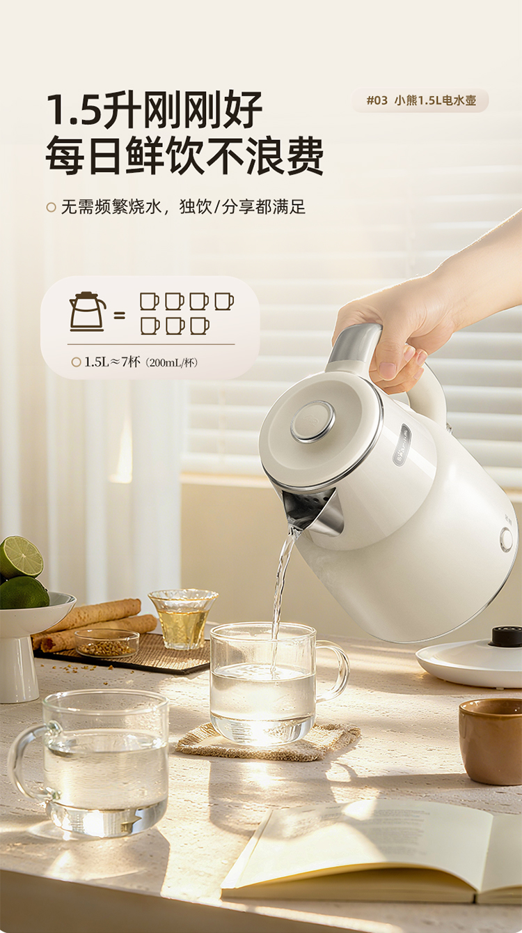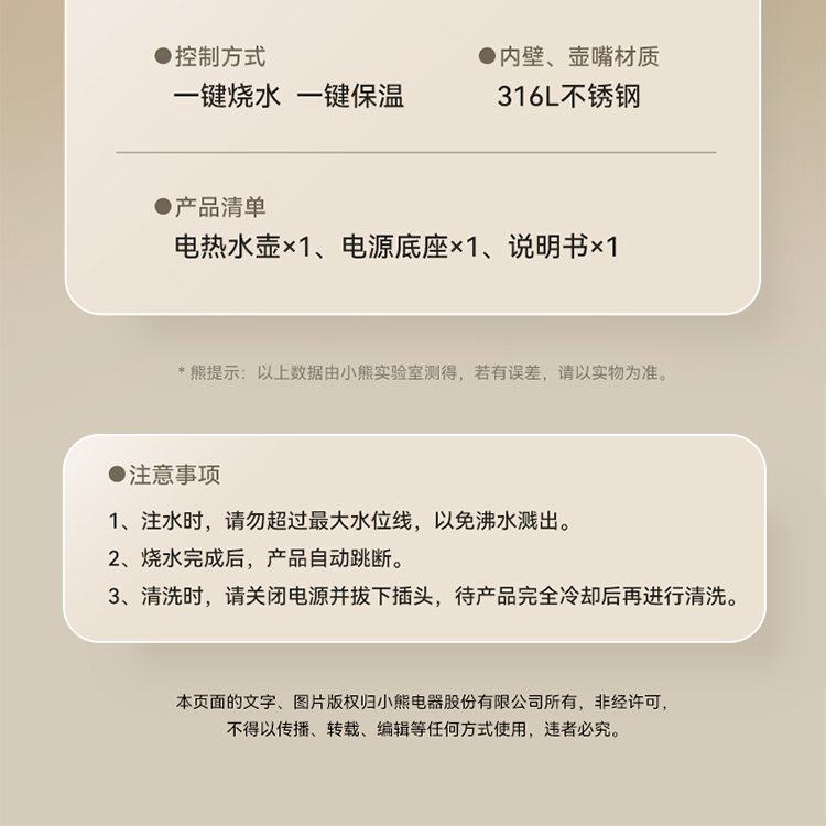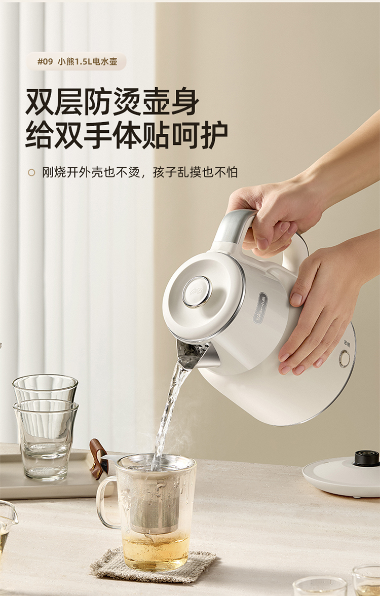 小熊(Bear)电热水壶恒温烧水壶316L不锈钢无缝一体内胆自动断电 1.5L大容量家用保温壶 ZDH-F15E7