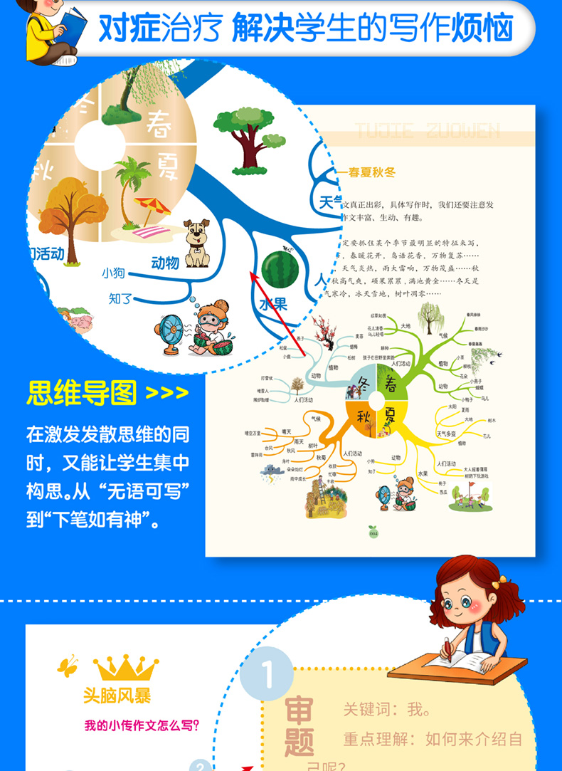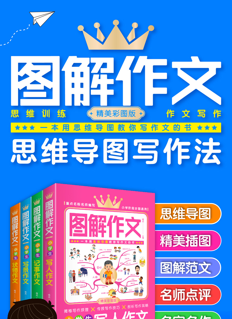 【适合6岁+】图解作文全4册 用思维导图教你写作 揭秘写作原理、传授写作技巧、剖析写作策略 在名师的讲解中触发灵感 掌握写作技巧