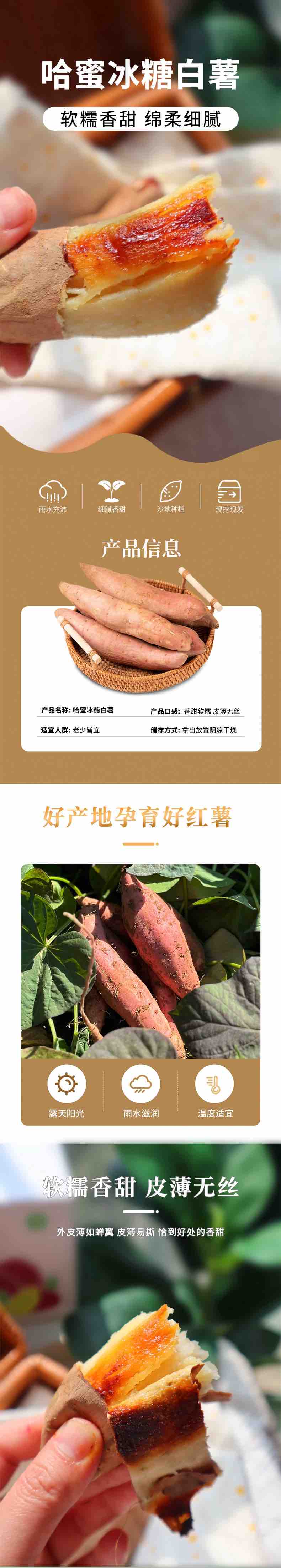 5:新鲜红薯比较脆,两头比较细小,在运输过程中容易折断,红薯的断面有时会有发黑的黑点,这是红薯淀粉溢出而产生的糖化效应,这种情况不属于产品质量问题,不在售后范围内。