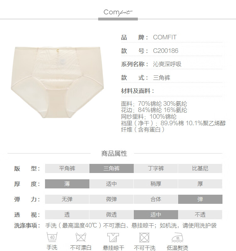 【3F】Comfit夏季薄款内裤女薄款高腰蕾丝透气大码包臀三角内裤C200186