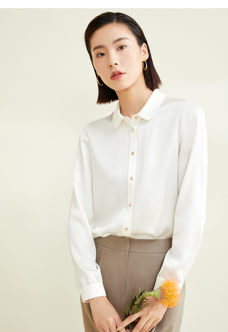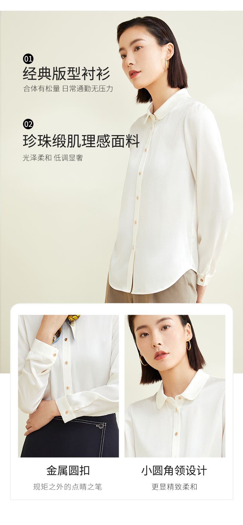 玳莎19MM真丝弹力珍珠缎真丝衬衫新款优雅通勤高级感桑蚕丝长袖衬衣女 CC31317