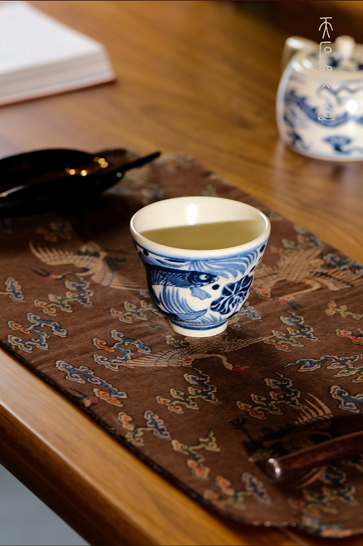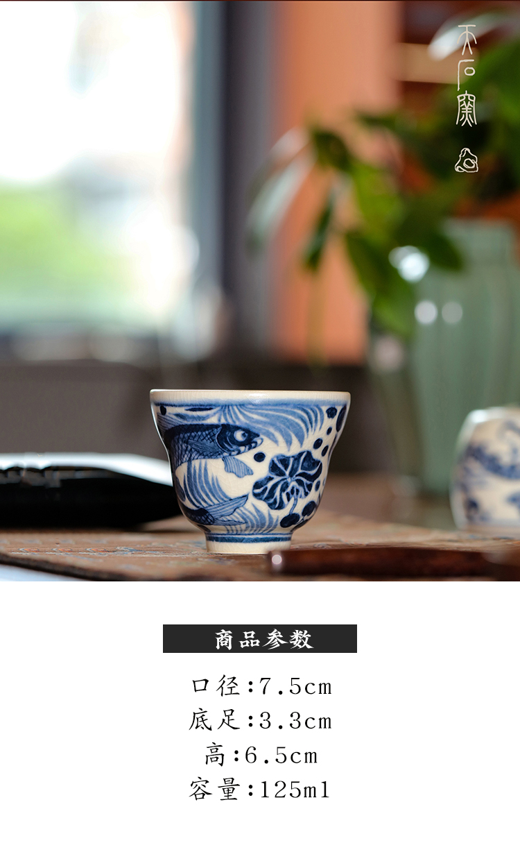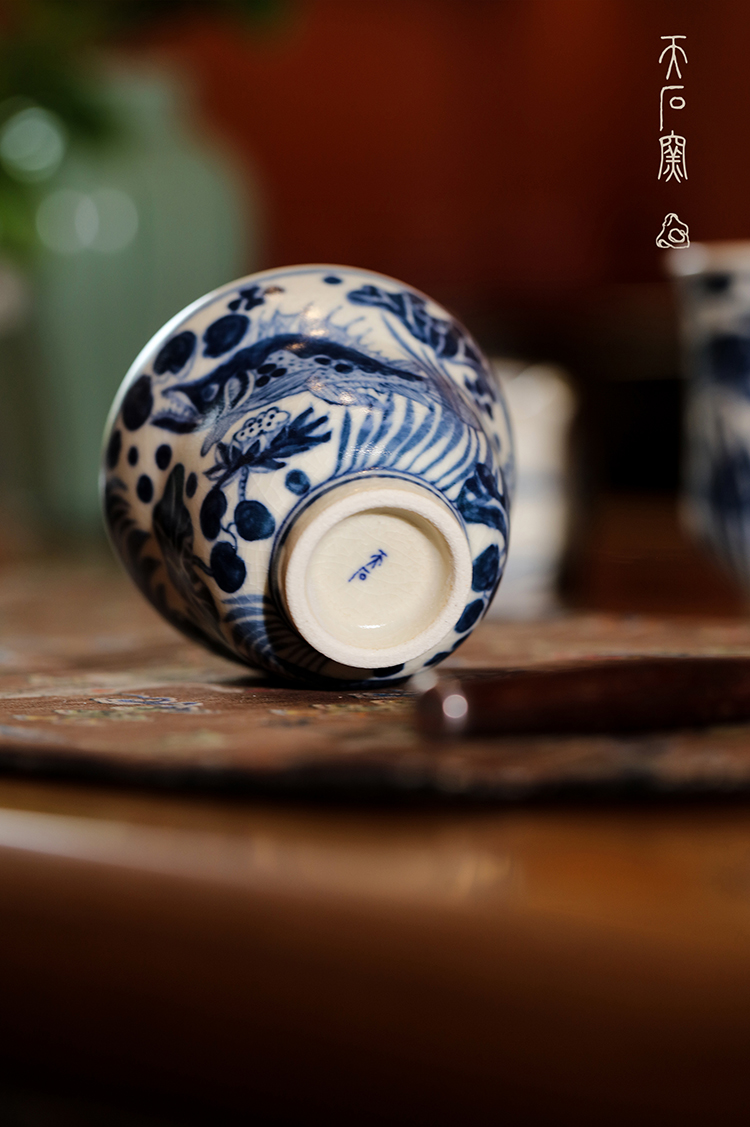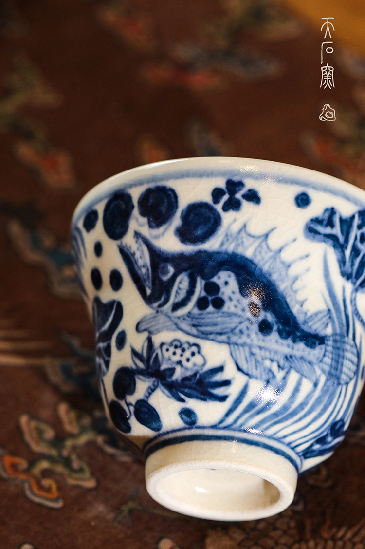 问鼎天石窑白陶泥元青花福禄杯(鱼藻纹)