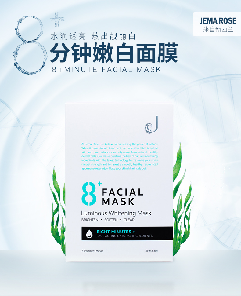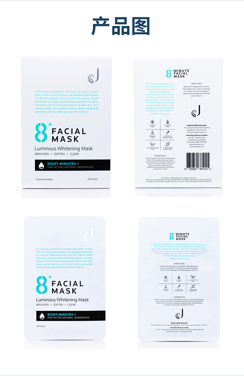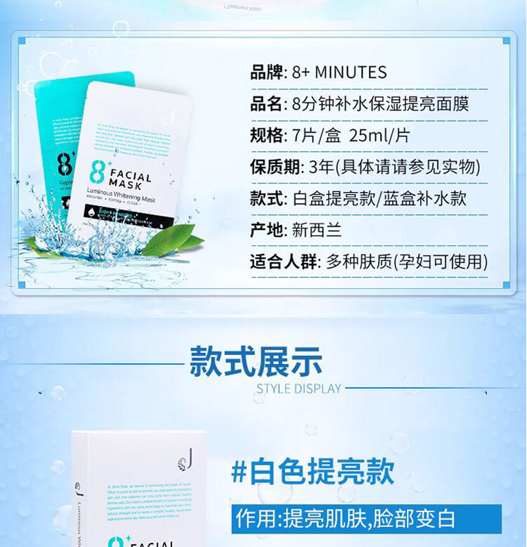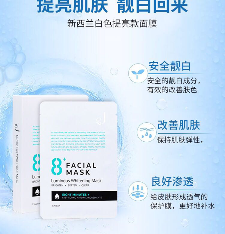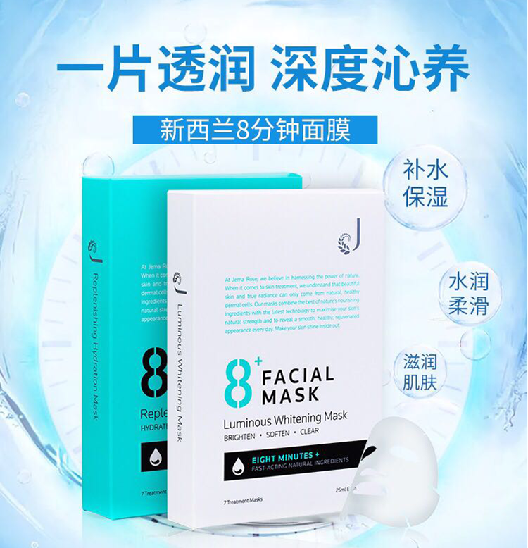 【8分钟焕肤神器】新西兰 8+minute 8分钟面膜山羊奶修复滋养面膜10片/盒(粉)亮白去黄提亮面膜7片/盒(白)急速补水保湿面膜7片/盒(蓝)8分钟热玛吉眼膜5对装