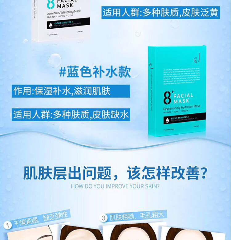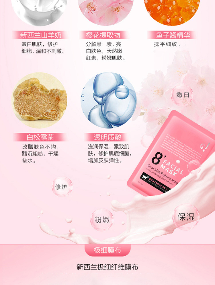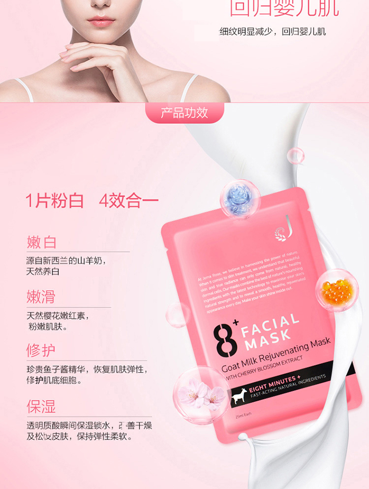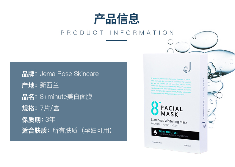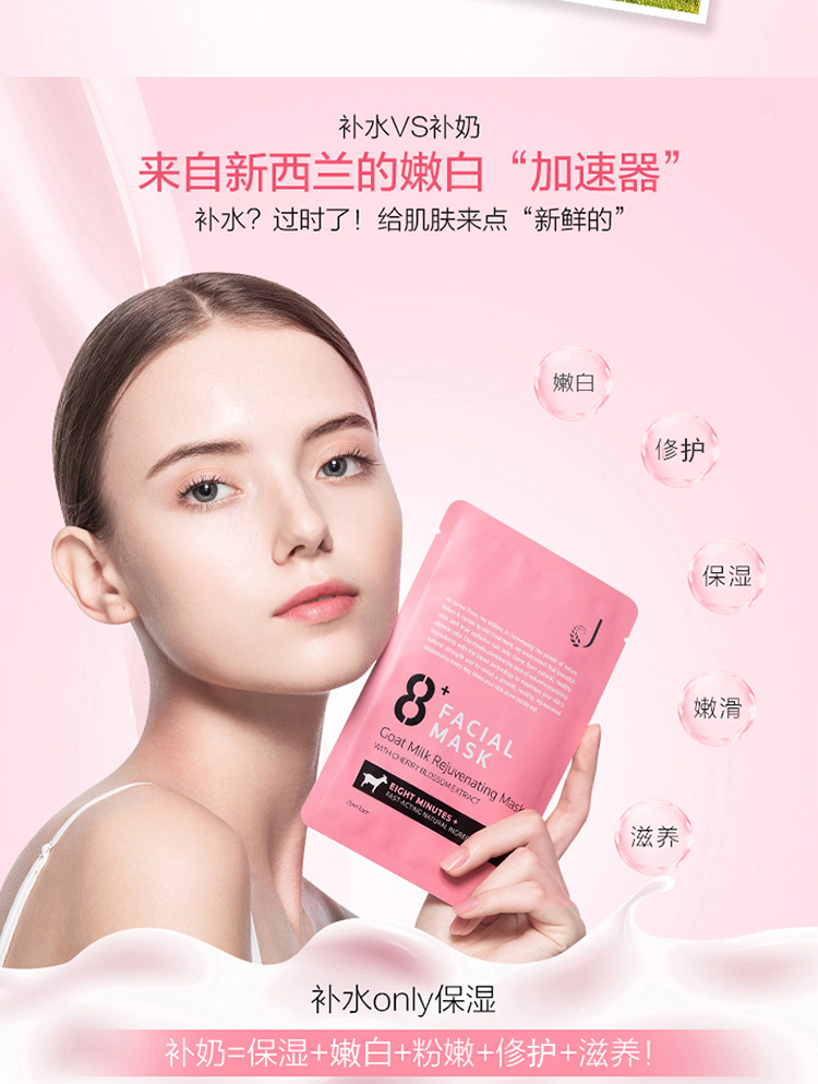 【8分钟焕肤神器】新西兰 8+minute 8分钟面膜山羊奶修复滋养面膜10片/盒(粉)亮白去黄提亮面膜7片/盒(白)急速补水保湿面膜7片/盒(蓝)8分钟热玛吉眼膜5对装