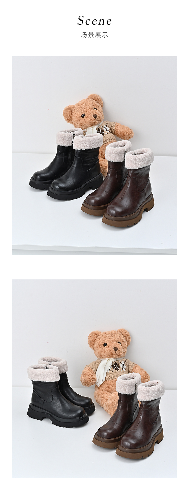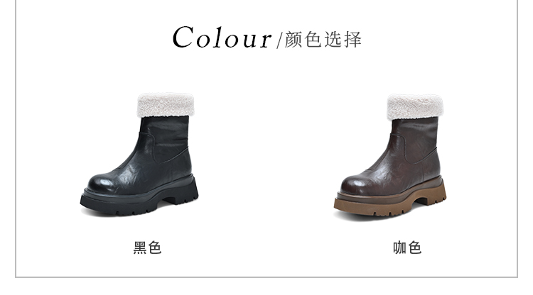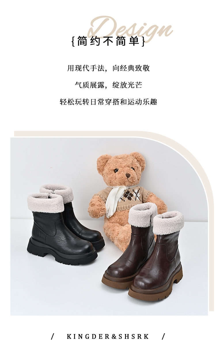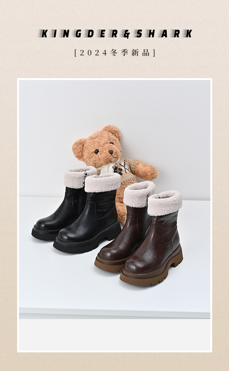 经典鲨2024年冬季新款百搭圆头加绒加厚侧拉链短筒马丁靴女KW89-D58201