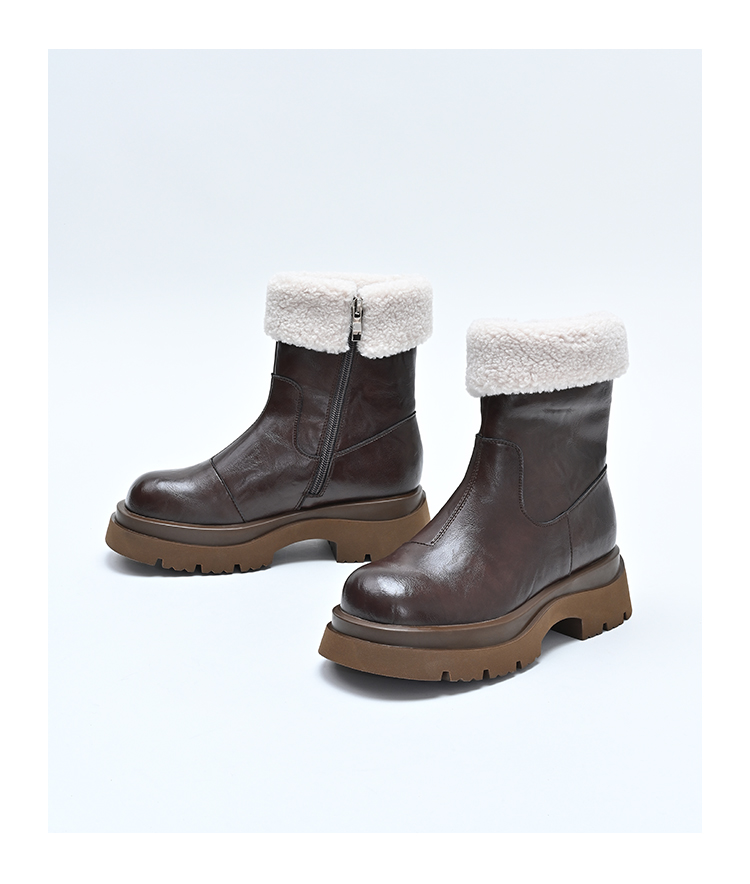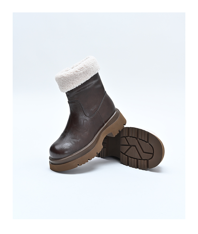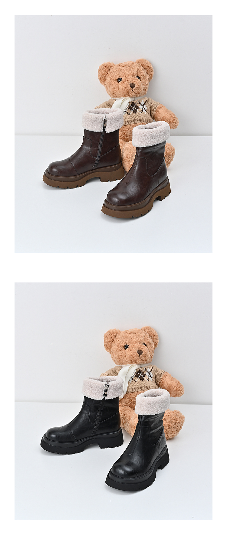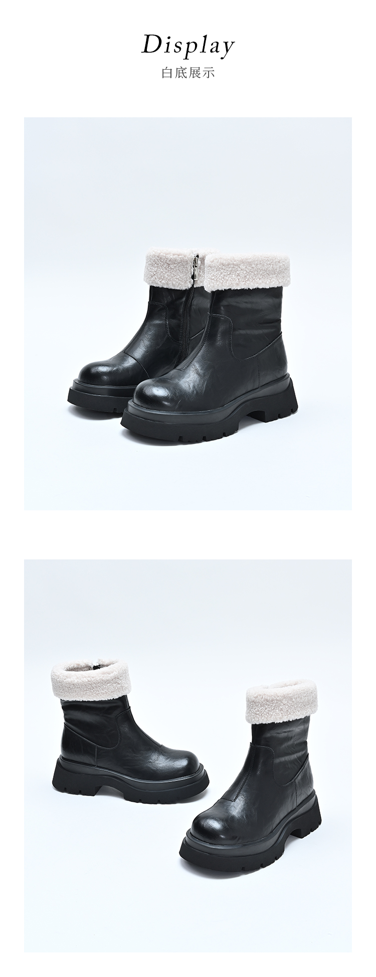 经典鲨2024年冬季新款百搭圆头加绒加厚侧拉链短筒马丁靴女KW89-D58201