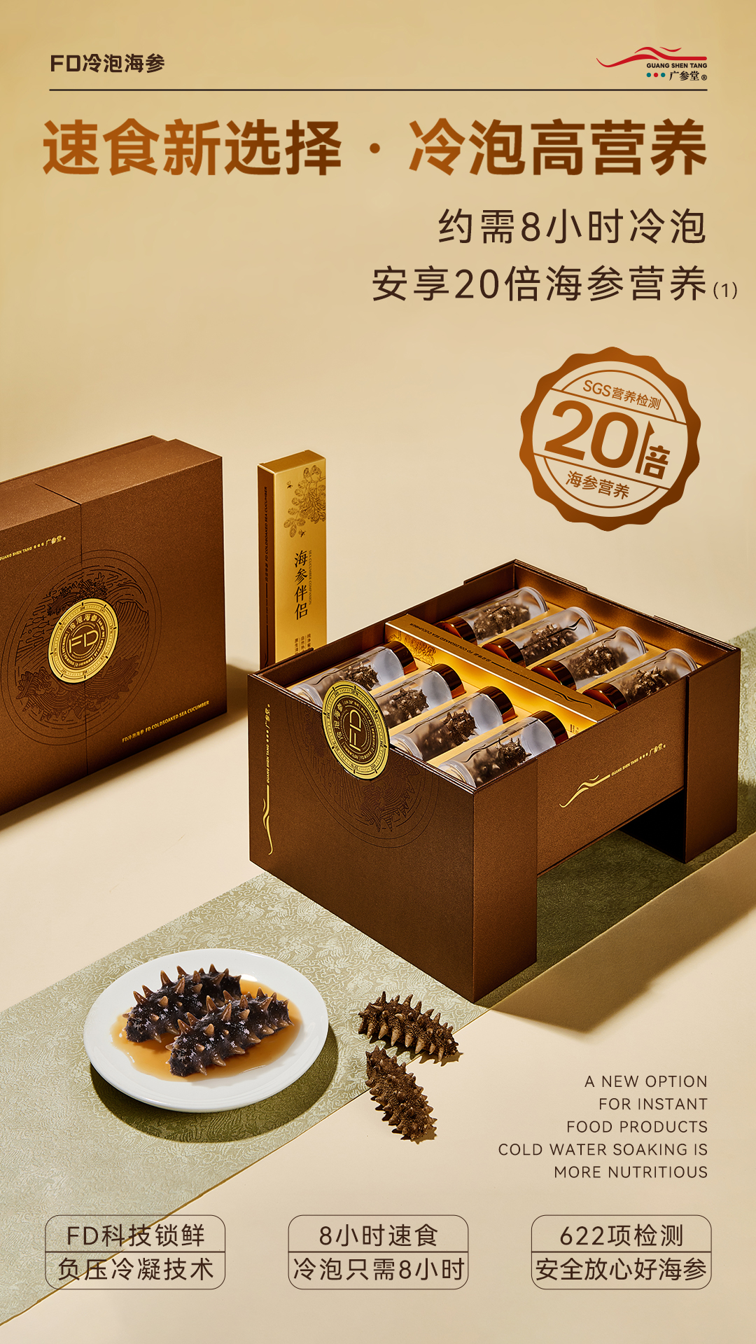 广参堂 FD冷泡海参轻奢礼盒装 常温水8小时冷泡即享 20倍高营养 622项安全检测