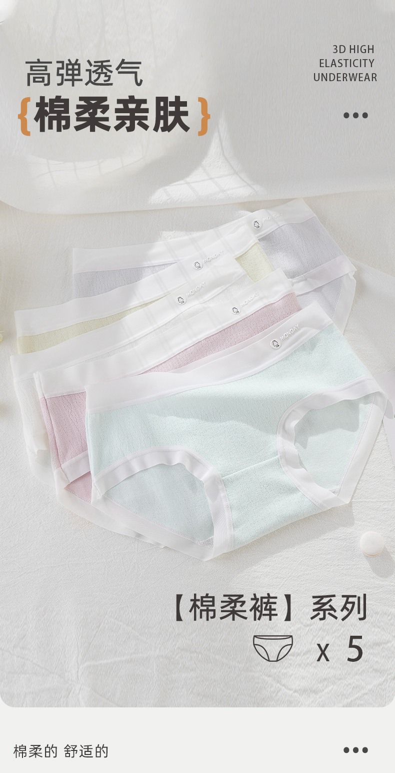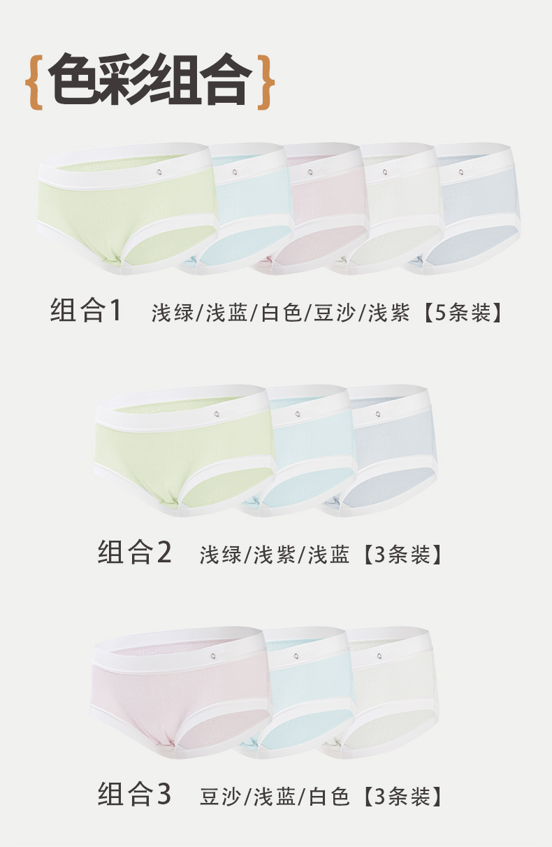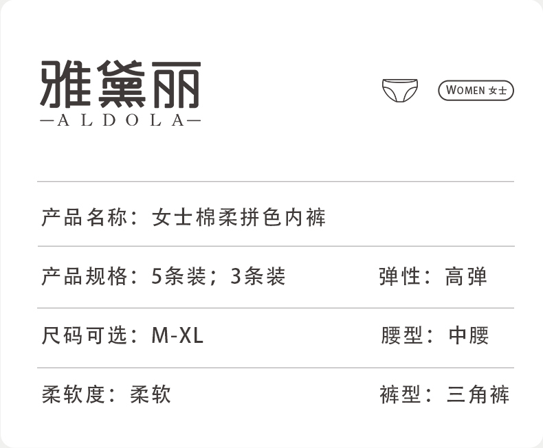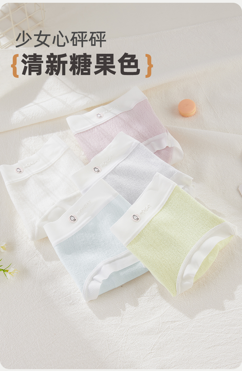 【5条装】雅黛俪女士内裤纯棉透气裆底甜美糖果色少女三角裤
