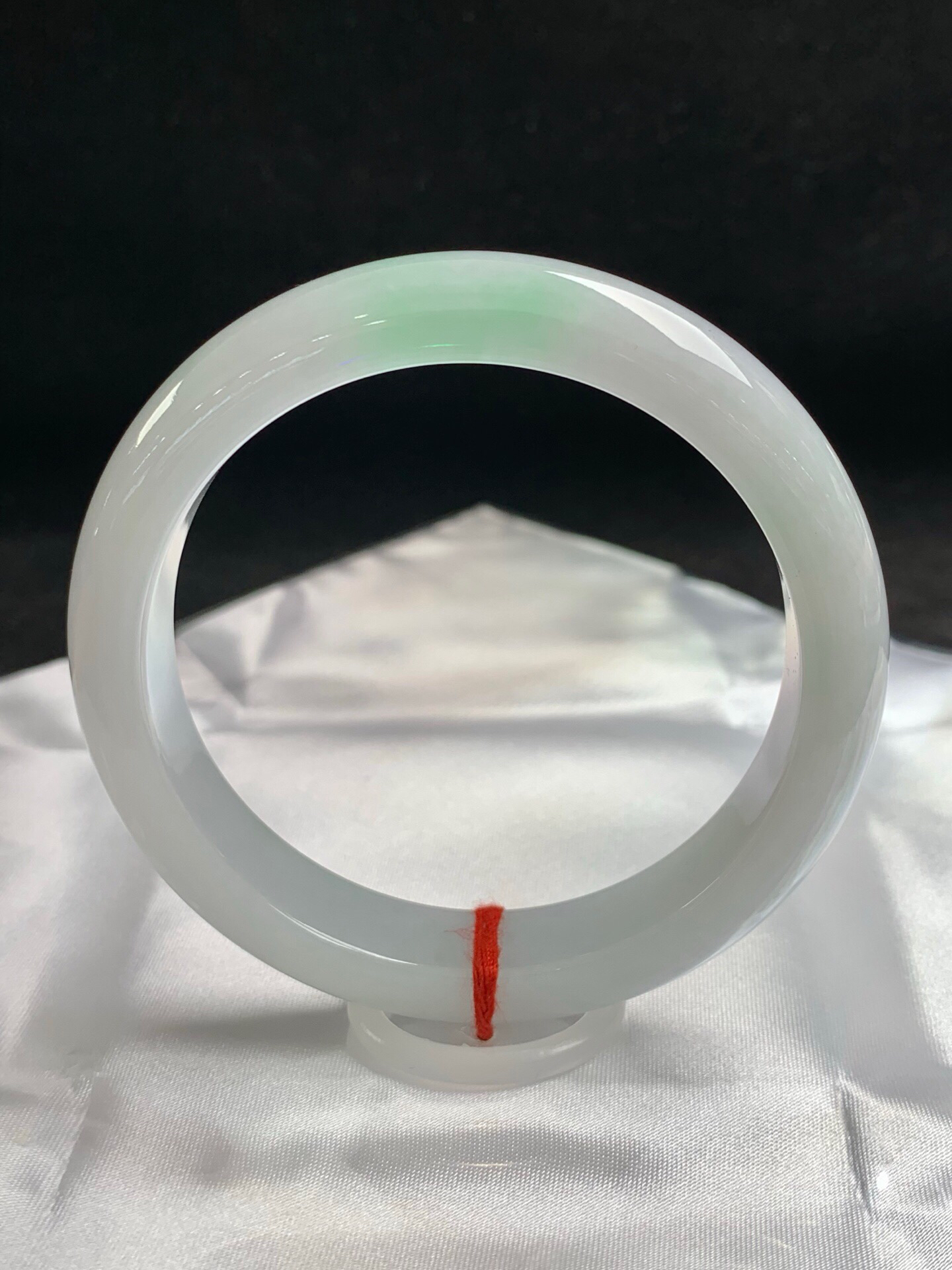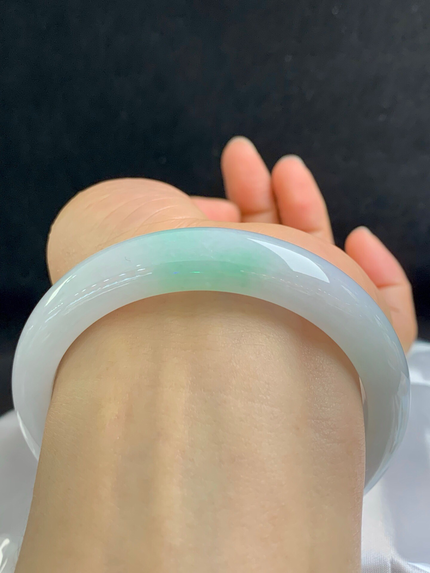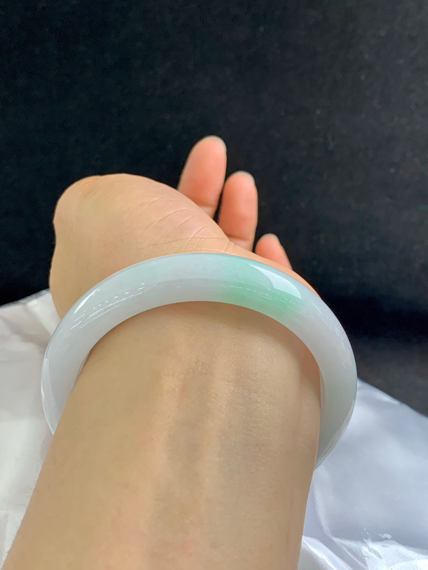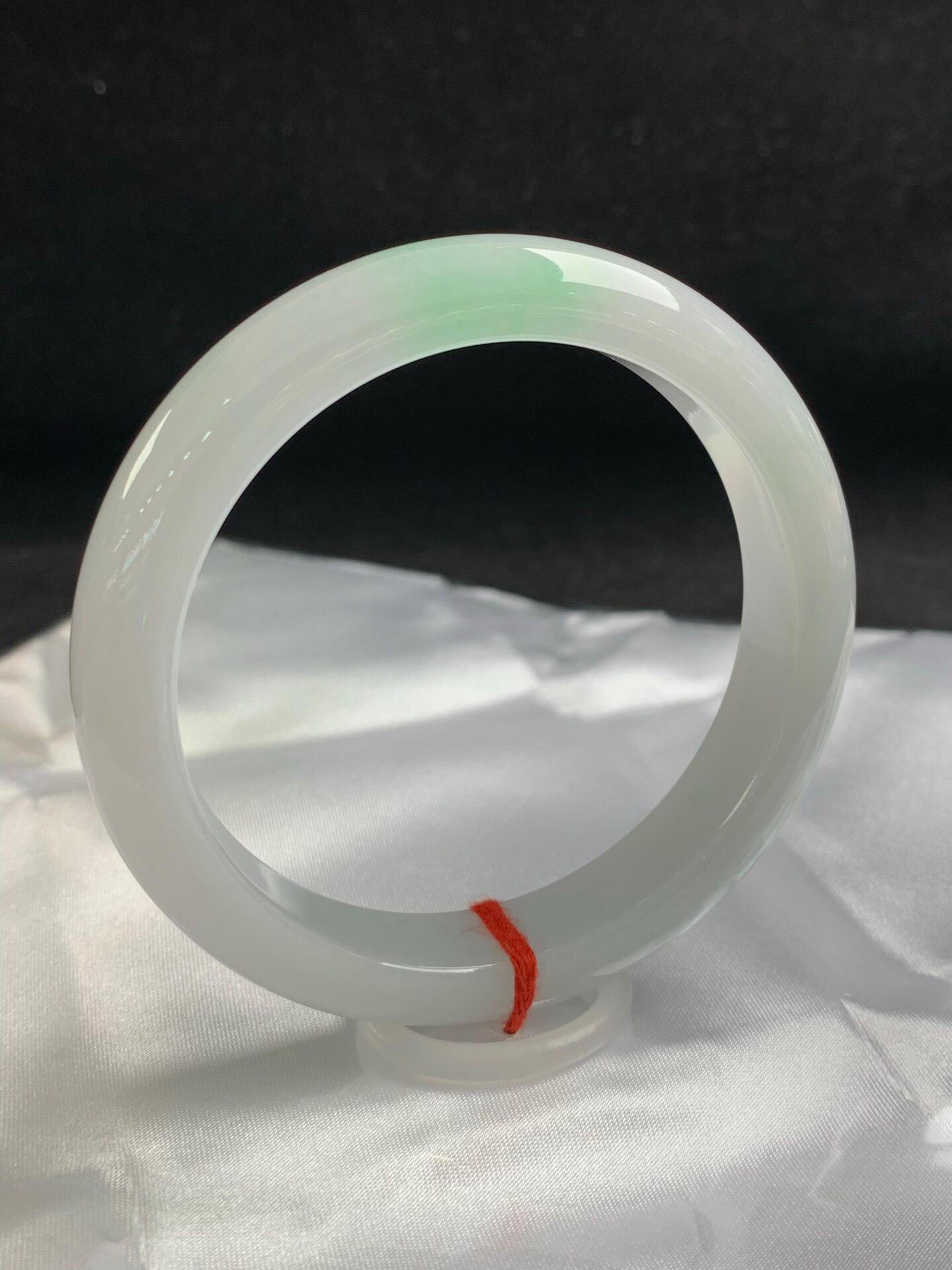 612762,59.8圈口,细糯化飘绿正圈平安镯,大圈口,细糯微化有水头,白底飘淡绿,干净完美,尺寸:59.8-12.4-8.6,超值价💰10500 #优石客珠宝#香玉荟萃