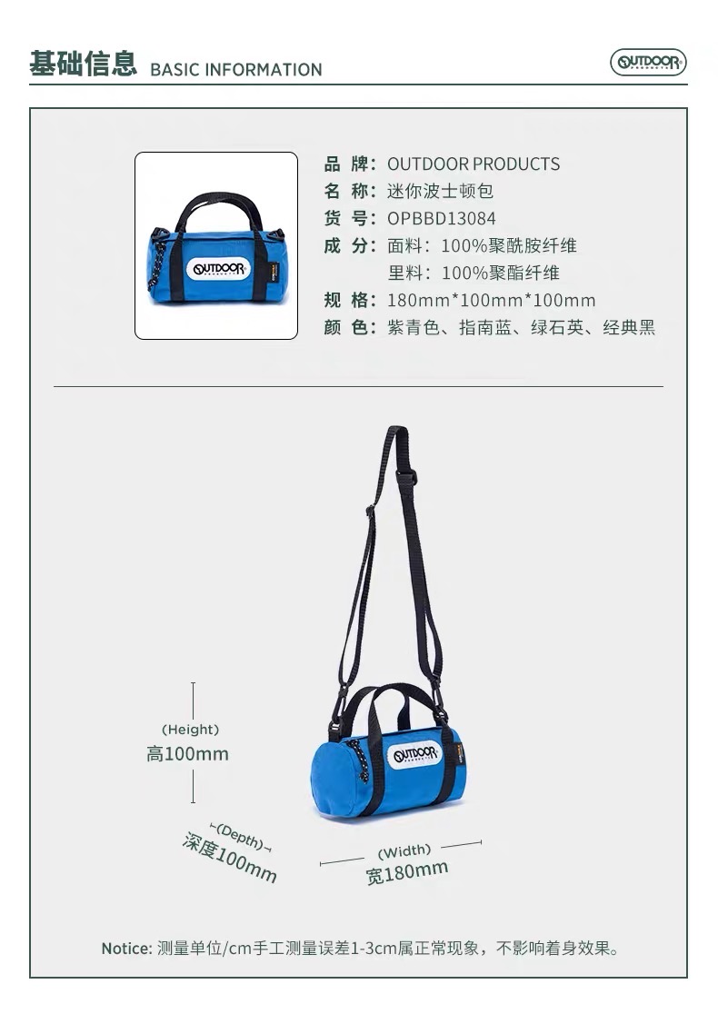 【云粉节】【6折】6楼OUTDOOR 迷你波士顿包行李袋防水耐磨抗撕裂实用手提包斜挎包吊牌价259惊喜价155