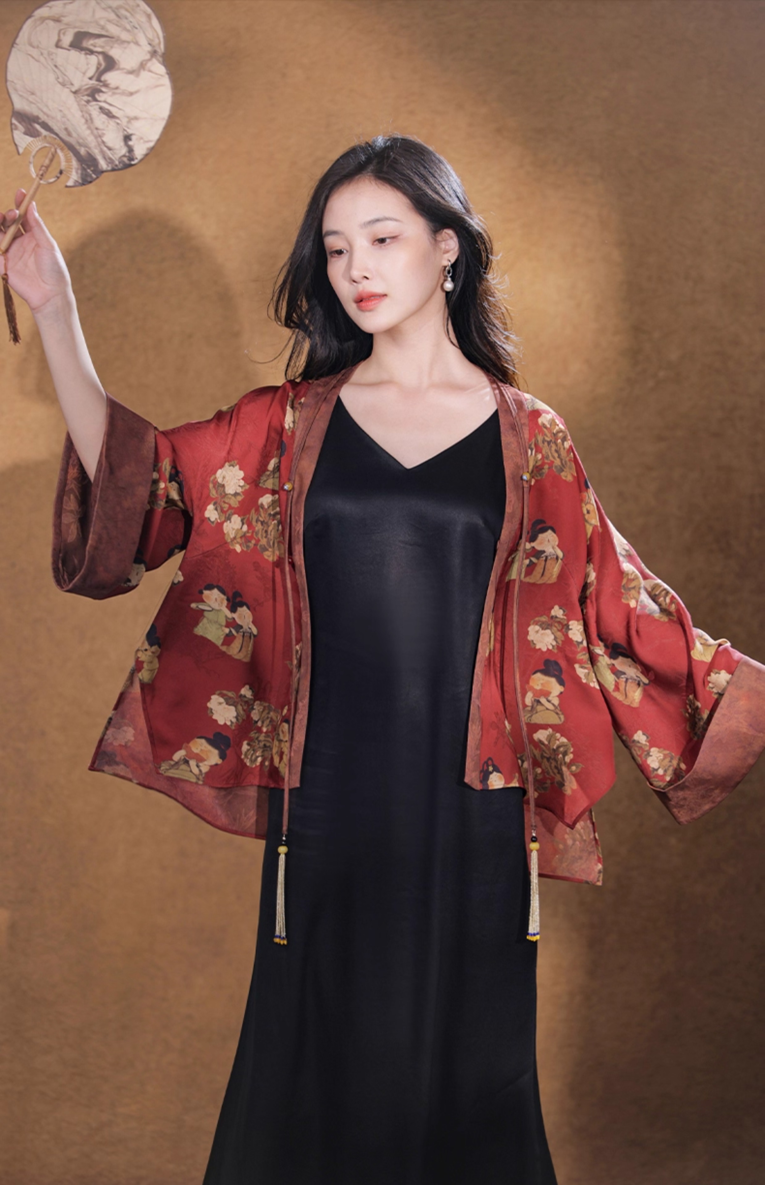 逸红颜珮玲2025早秋新款宋制褙子改良宽松簪花仕女图新中式外套女